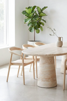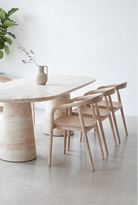 Crafted in a smooth natural wood finish, this dining chair features a beautifully curved backrest and arm frame that flows seamlessly into its slender legs, creating a clean sculptural silhouette inspired by minimalist Japanese design. The gently contoured wooden seat offers comfortable support, while the light organic tone highlights the natural grain and craftsmanship of the wood. With its airy profile and refined simplicity, it complements modern, Scandinavian, and Japandi interiors, bringing warmth, balance, and everyday functionality to any dining setting.