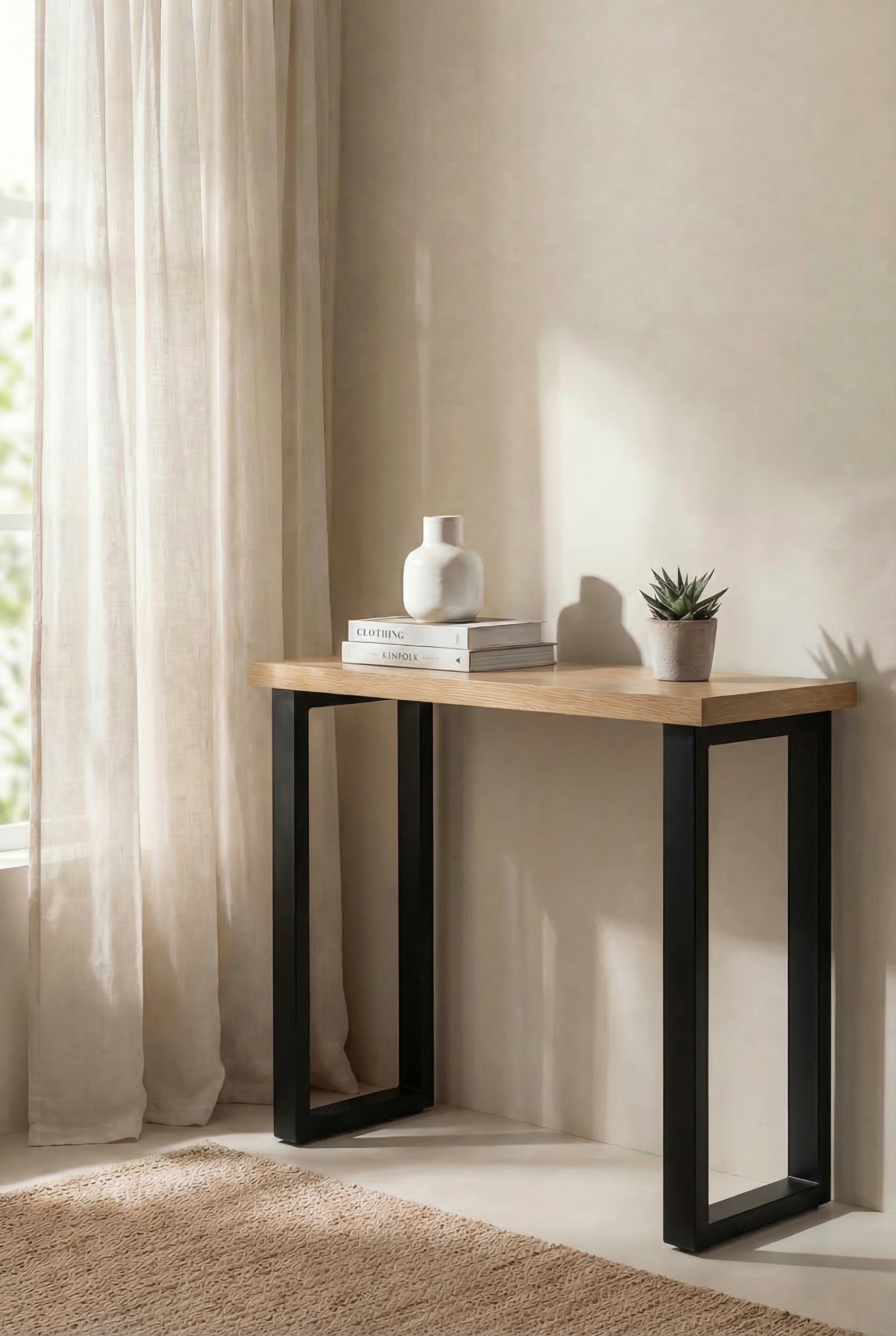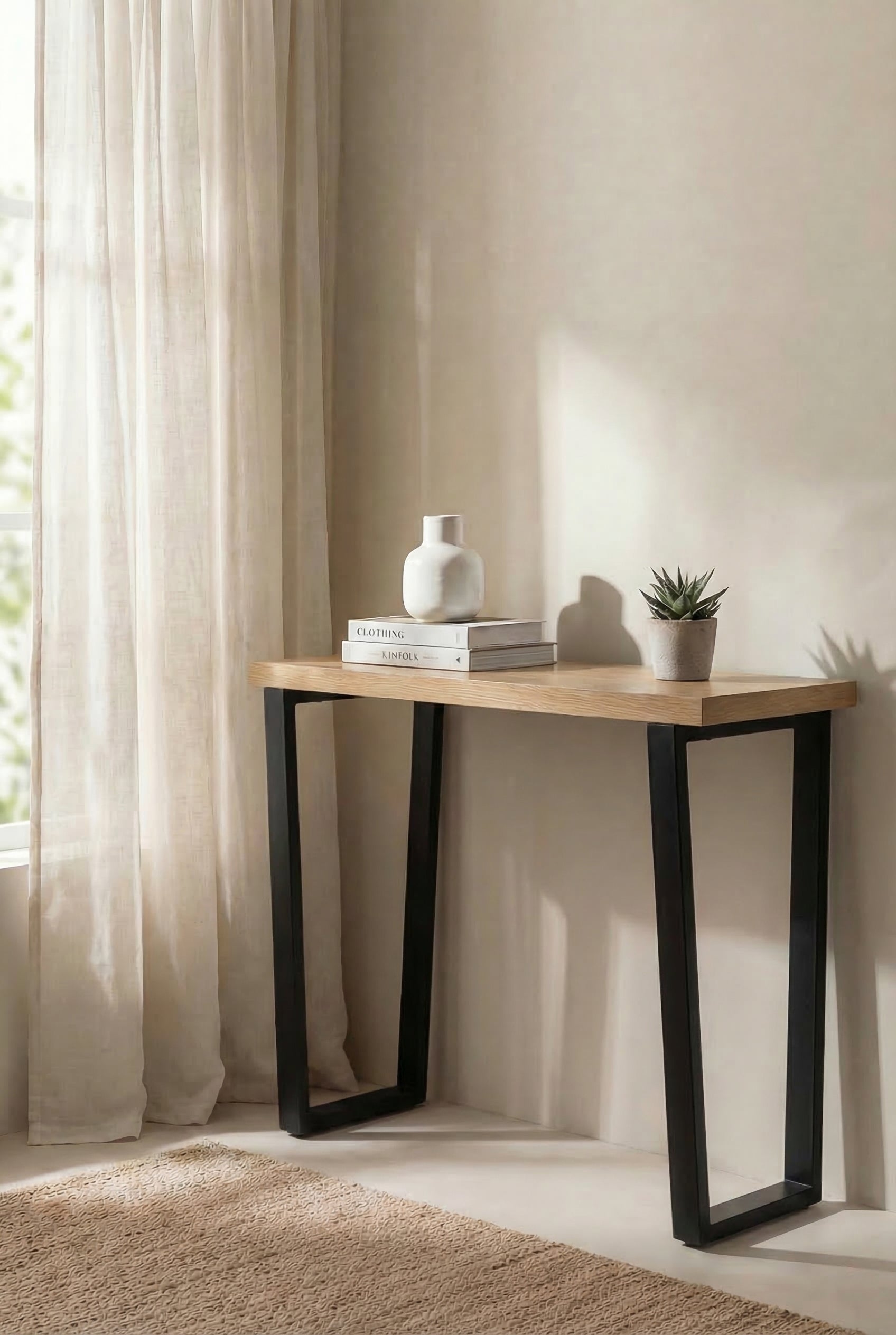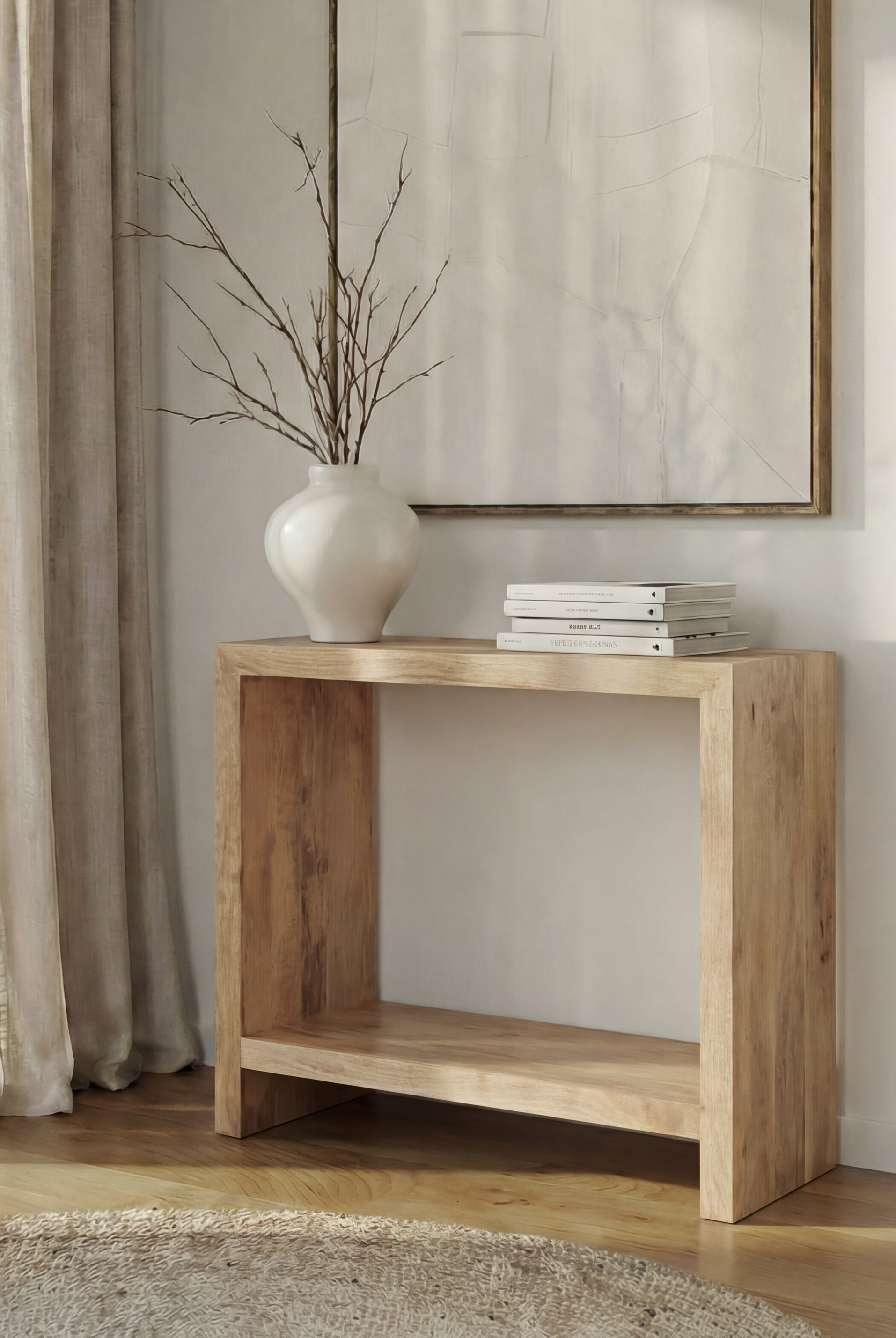 Make the most of your hallway space with Home Kode’s range of wooden hallway tables, designed to bring form and function to even the most compact areas. These slim, thoughtfully designed pieces offer a convenient spot for daily essentials while enhancing the entry point of your home. Choose from a variety of wood tones and styles from modern Scandinavian-inspired designs to rustic, lived-in finishes. Whether you're displaying artwork, adding a mirror above, or simply keeping your space organised, our wooden hallway tables help create a warm, inviting feel. Each table is crafted with quality wood and built for durability, making them a smart and stylish choice for Dubai homes.