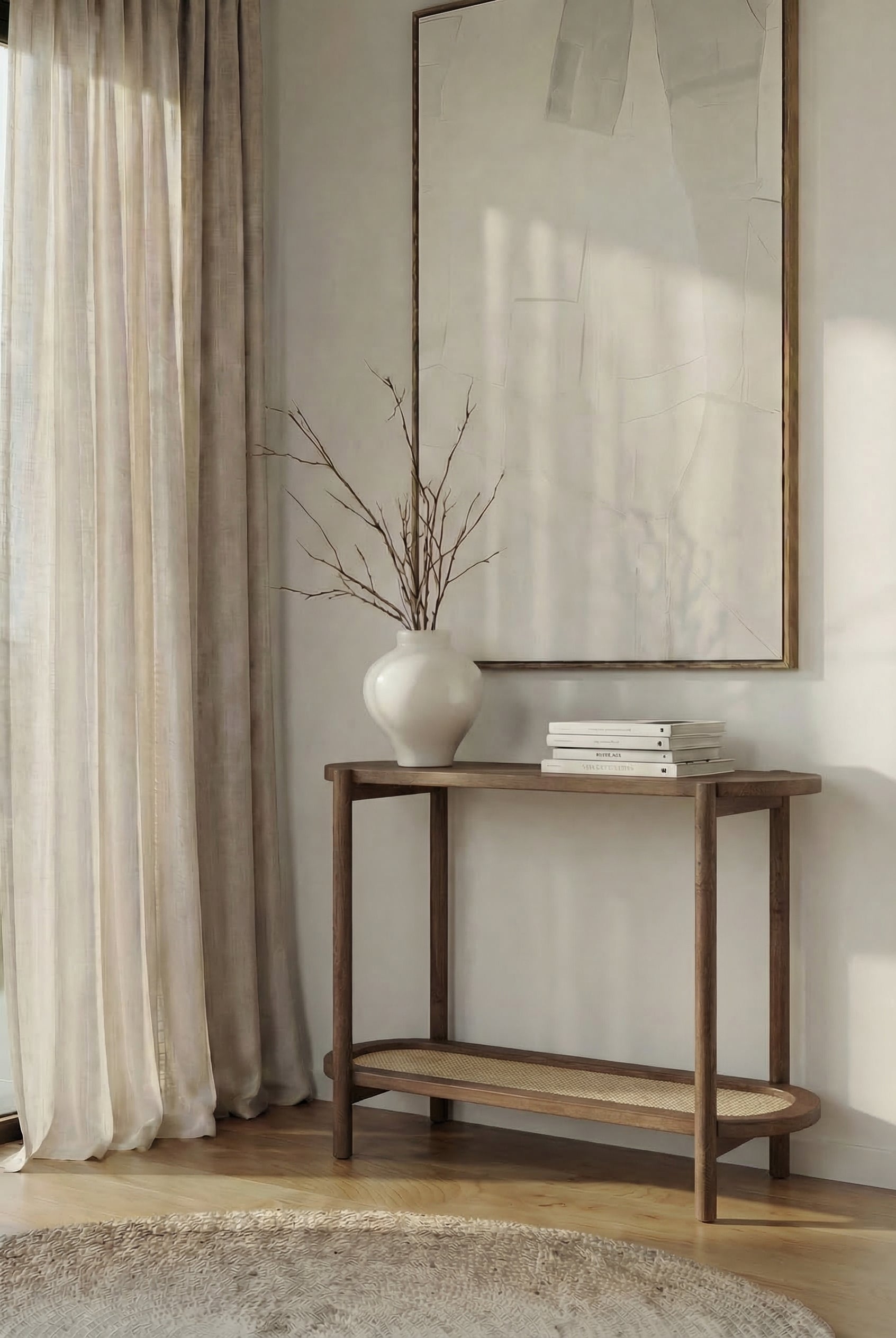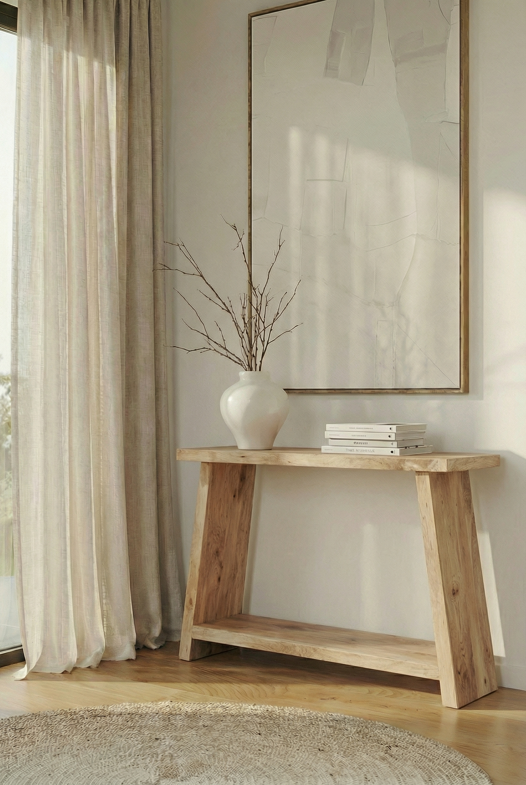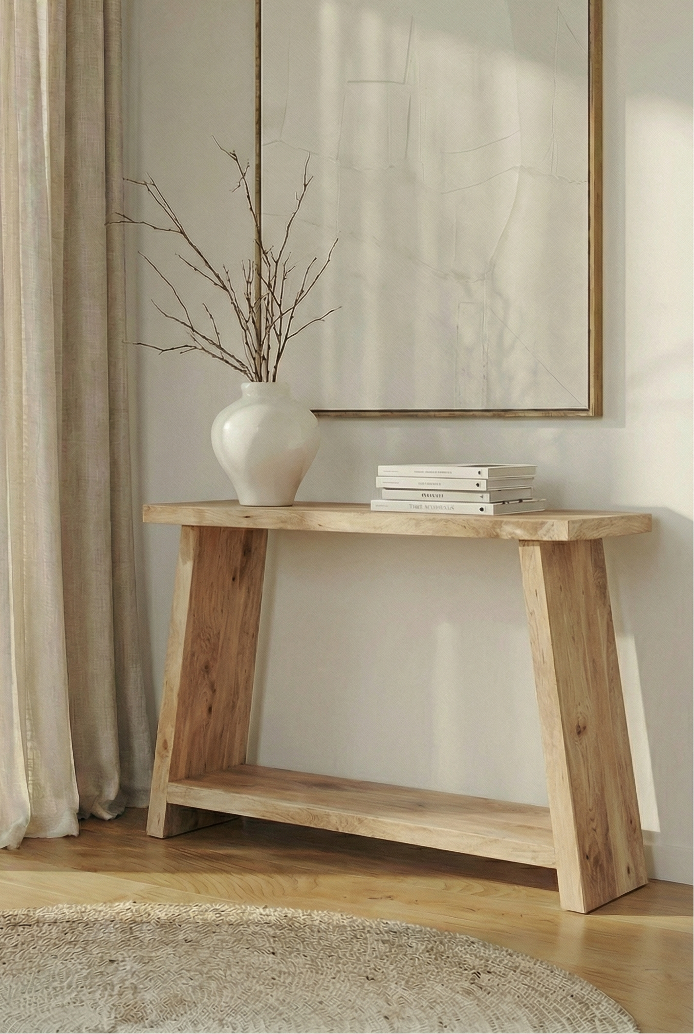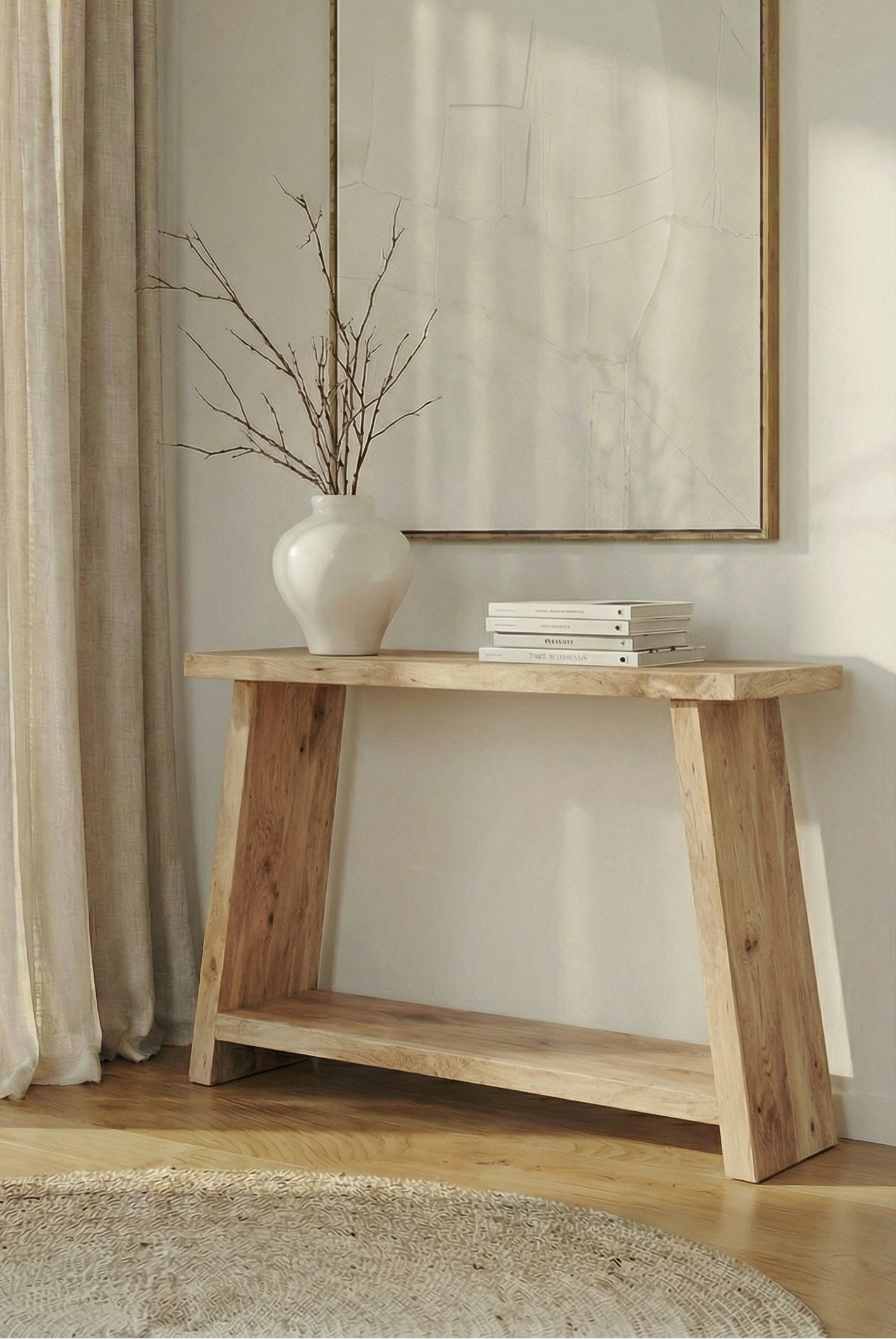 Bring natural warmth and texture into your home with Home Kode’s collection of wooden console tables in Dubai. Whether you're furnishing a hallway, entryway, or living room, these pieces offer a perfect balance of function and style. Crafted from high-quality wood with rich grain patterns, each console table adds character to your space while offering practical surface space for keys, décor, or storage baskets. Choose from modern minimalist designs, rustic finishes, or mid-century inspired silhouettes to match your interior style. Built for everyday use and designed to last, our wooden console tables are available for fast delivery across Dubai and the UAE. Perfect for homes that value simplicity, warmth, and a connection to natural materials.