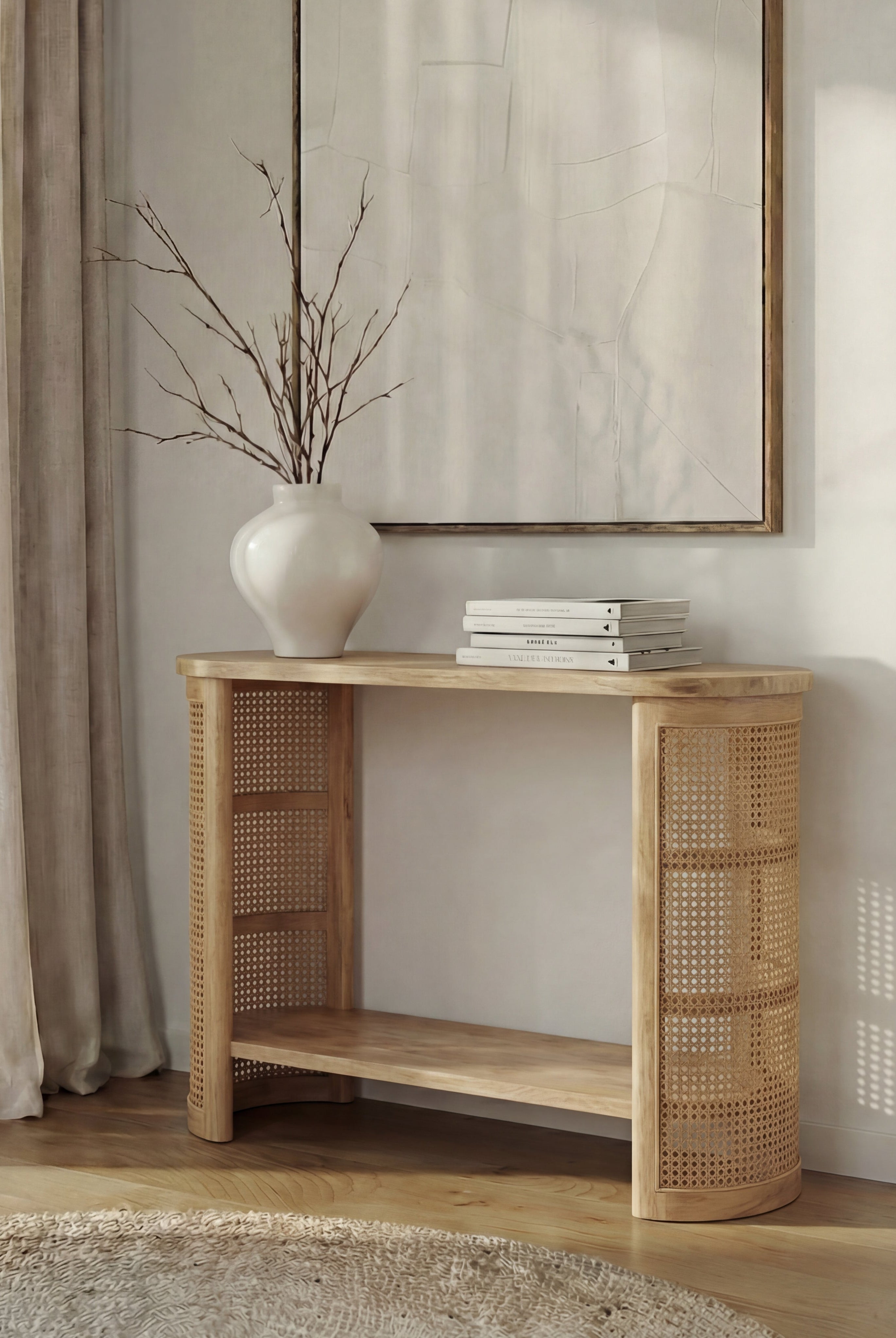 Discover a seamless blend of nature's finest with our collection of acacia, mango wood, and rattan console tables. For the discerning homeowner, this range offers an authentic touch, rich textures, and a testament to unparalleled craftsmanship.
