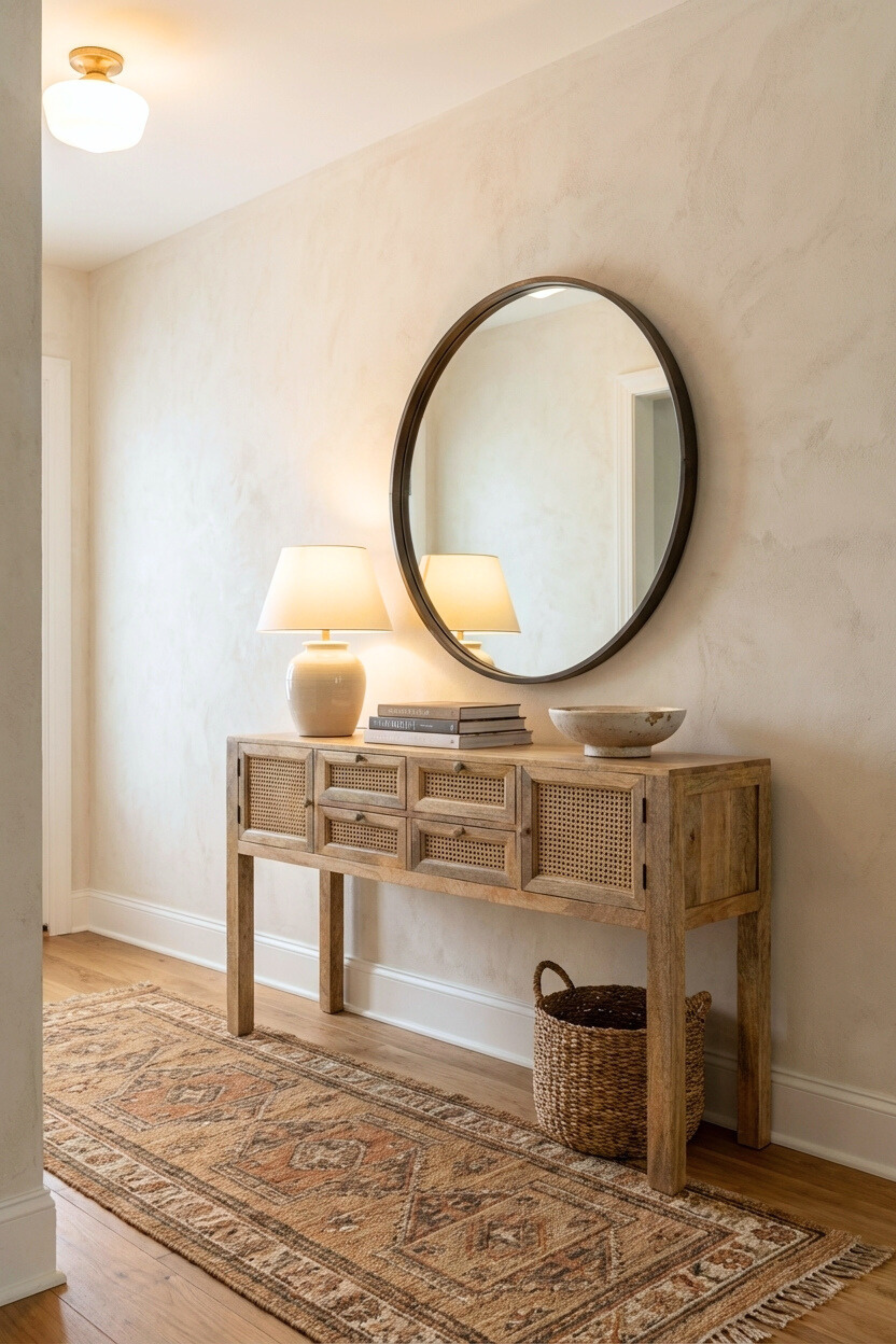 Perfectly suited for both contemporary and traditional interiors, these console tables effortlessly transform spaces into warm, inviting, and timelessly elegant sanctuaries. Whether gracing an entryway, nestling behind a sofa, or standing proud in a hallway, the harmonious blend of wood and rattan never ceases to enchant.