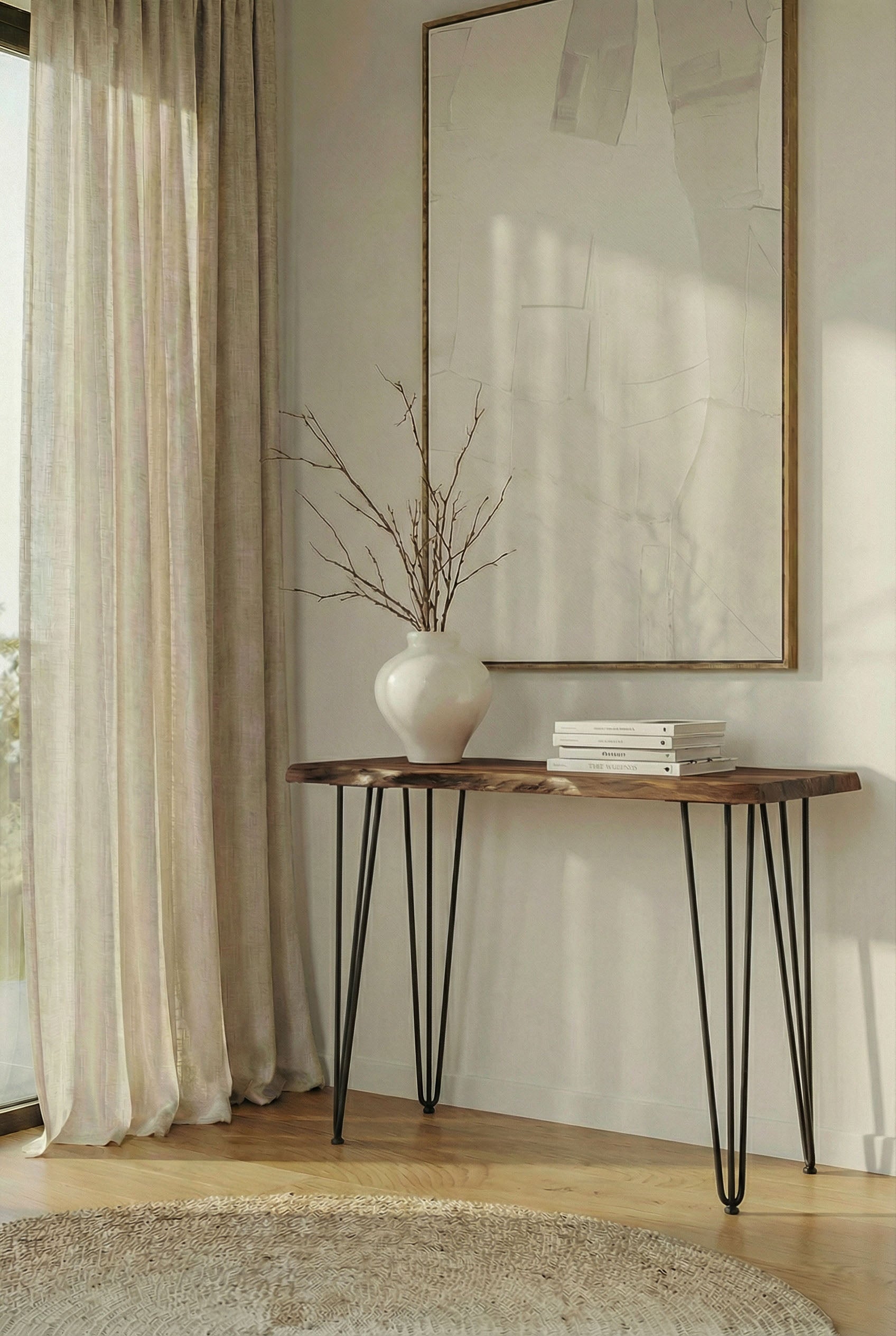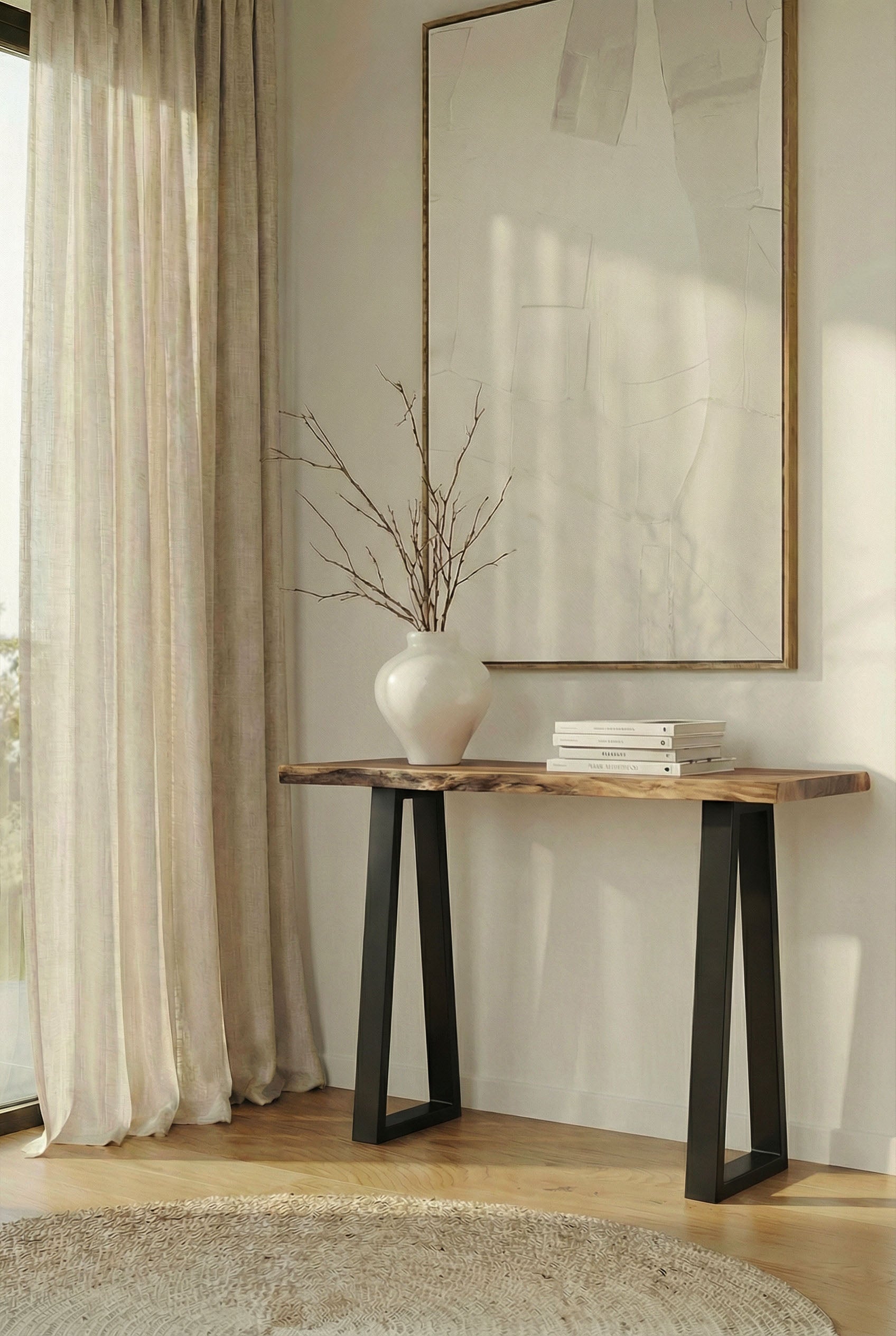 Elevate your dining experience with this stunning dark acacia dining table, featuring natural live edges that highlight the unique grain patterns and rich tones of the wood. This table brings a touch of nature into your home, creating a warm and inviting atmosphere. The live edges ensure each piece is one-of-a-kind, adding a rustic yet refined touch to your dining area. Whether hosting a dinner party or enjoying a family meal, this table is designed to impress.