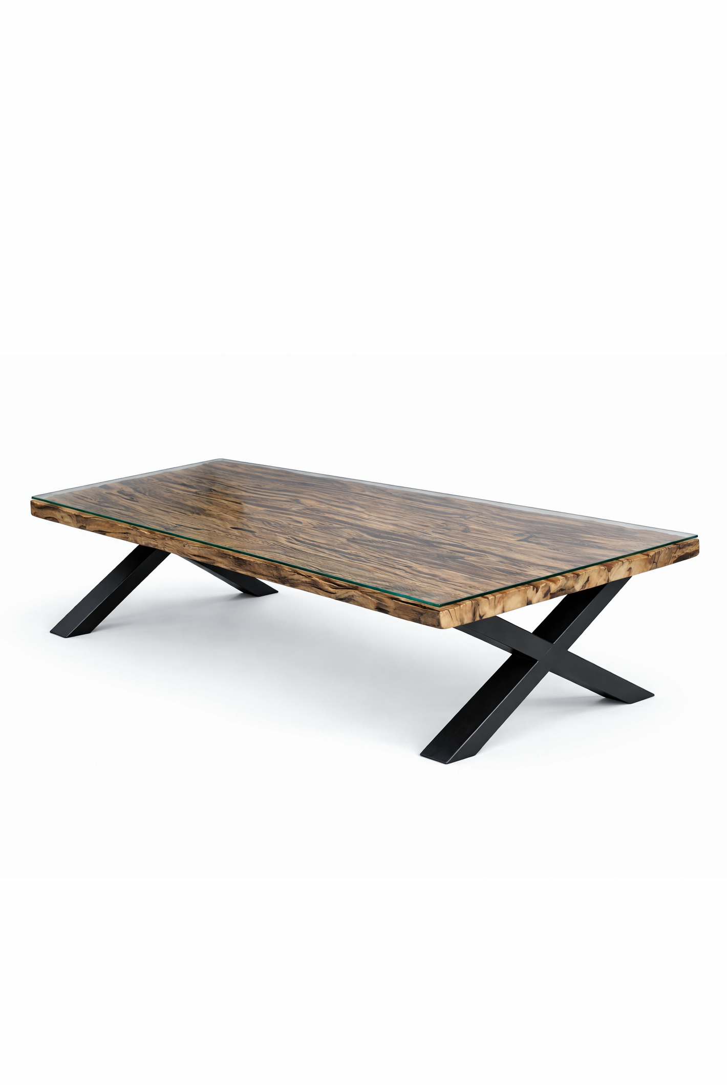 Designed with reclaimed railway wood showcasing deep natural textures and authentic character, this dining table stands on a striking X shaped metal base that adds sculptural impact to your interior. The intersecting steel form enhances stability and visual interest, allowing you to elevate your dining space with a refined industrial mood that feels bold, balanced, and effortlessly modern.