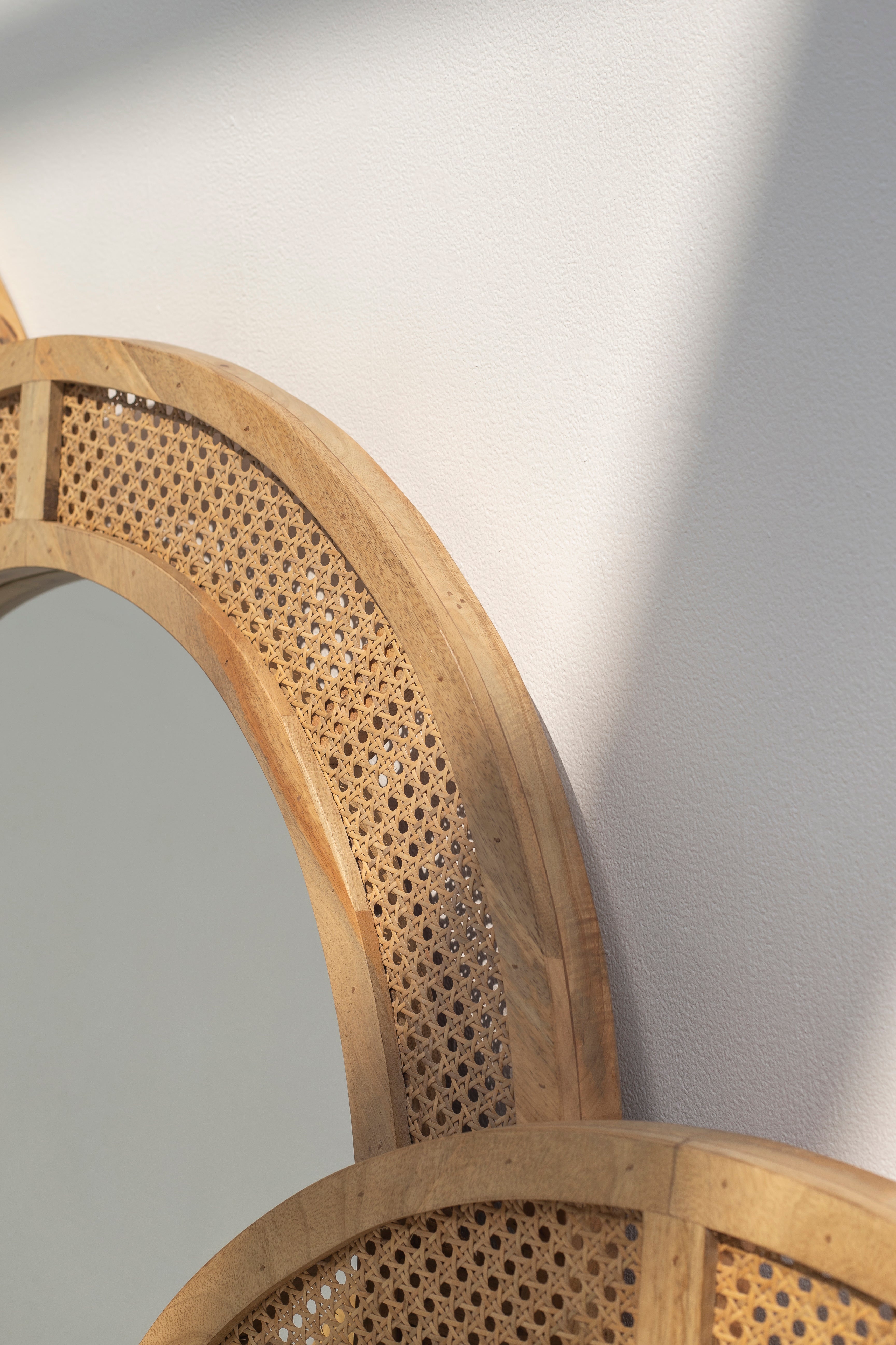 Natural Wood Round Mirror: A timeless circular design that enhances light and visual flow, bringing harmony and balance to walls in living rooms and bedrooms.