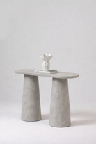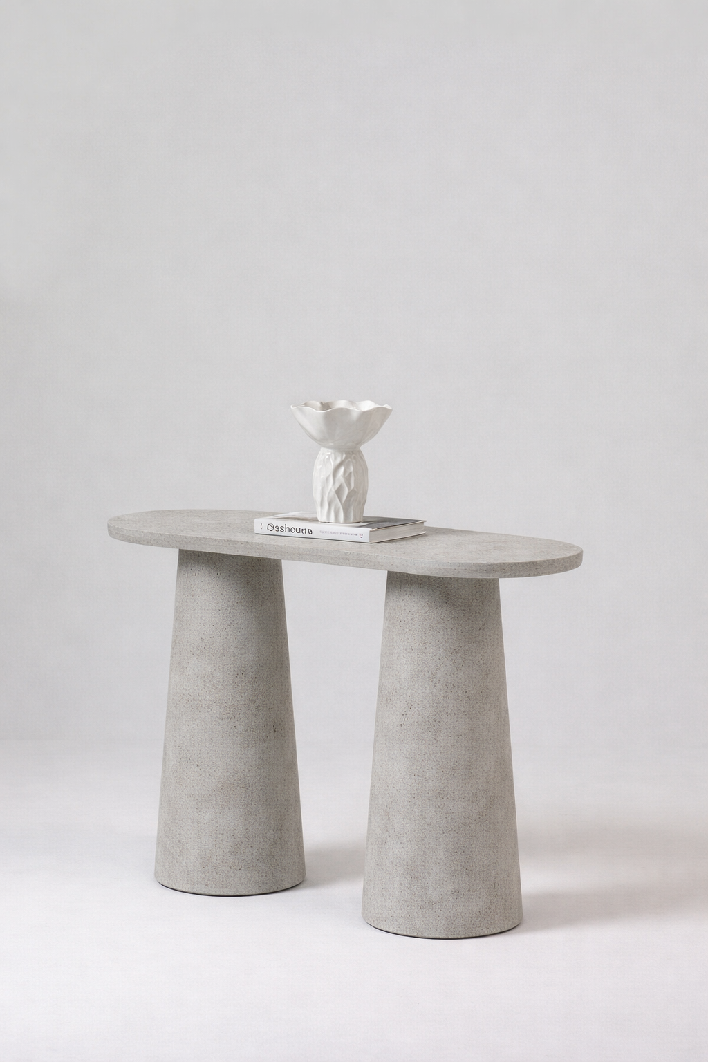 A soft natural tone and refined matte microconcrete texture come together in a sculptural silhouette that brings warmth and understated elegance to your entryway or living space, while the elongated oval top and tapered architectural legs create a harmonious balance of strength and softness, allowing you to style your favorite decor pieces with ease and elevate your interior with calm modern luxury and organic sophistication.