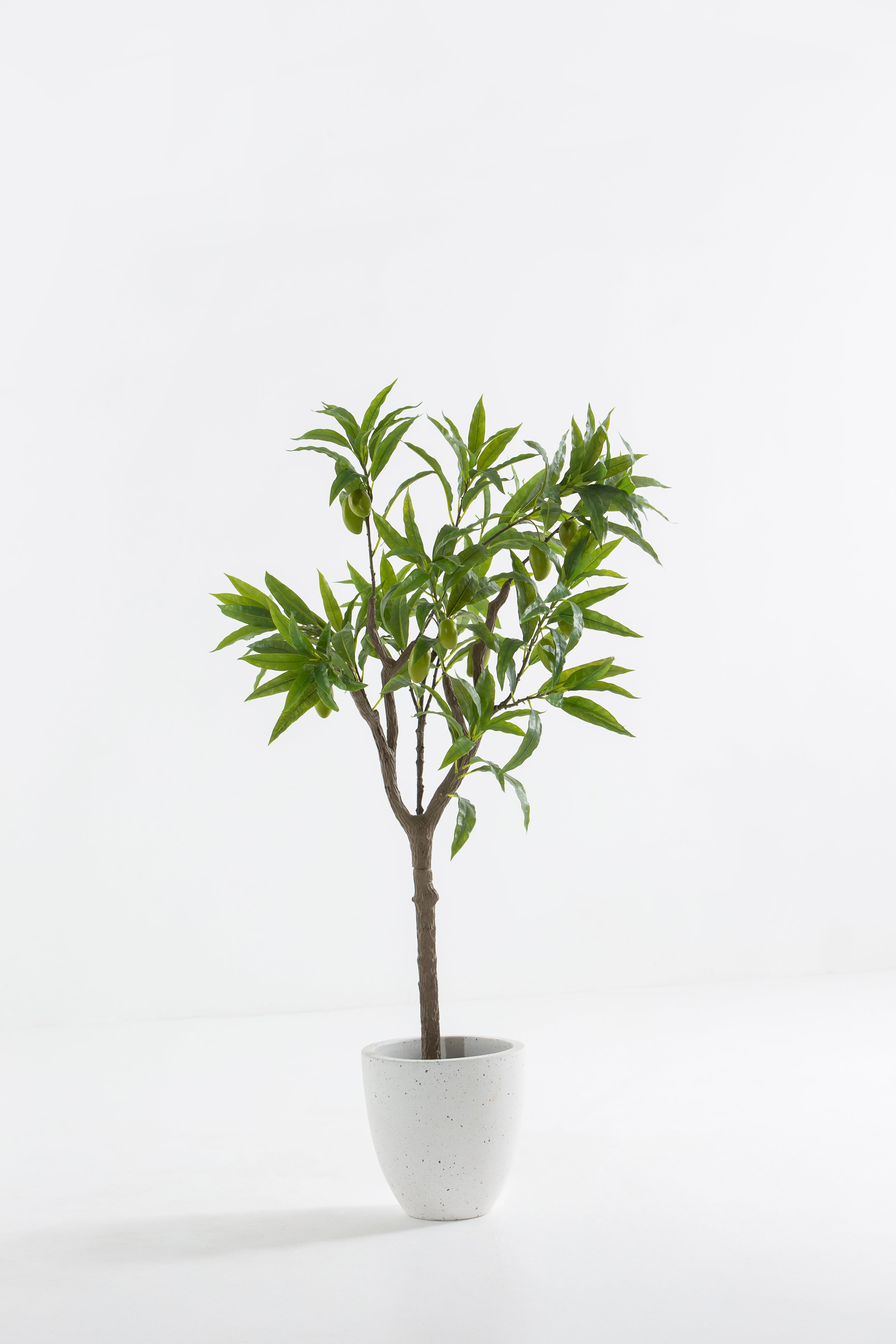 This artificial mango tree captures the tropical charm of a real Mangifera indica with its vibrant green foliage and realistically sculpted hanging fruit. Featuring elongated, glossy leaves and a sturdy, textured trunk, it offers a lively presence without the need for light or care. Ideal for tropical-themed interiors, patios, or retail displays, it brings warmth, color, and organic character to any styled setting—making it a statement piece in both modern and rustic decor.