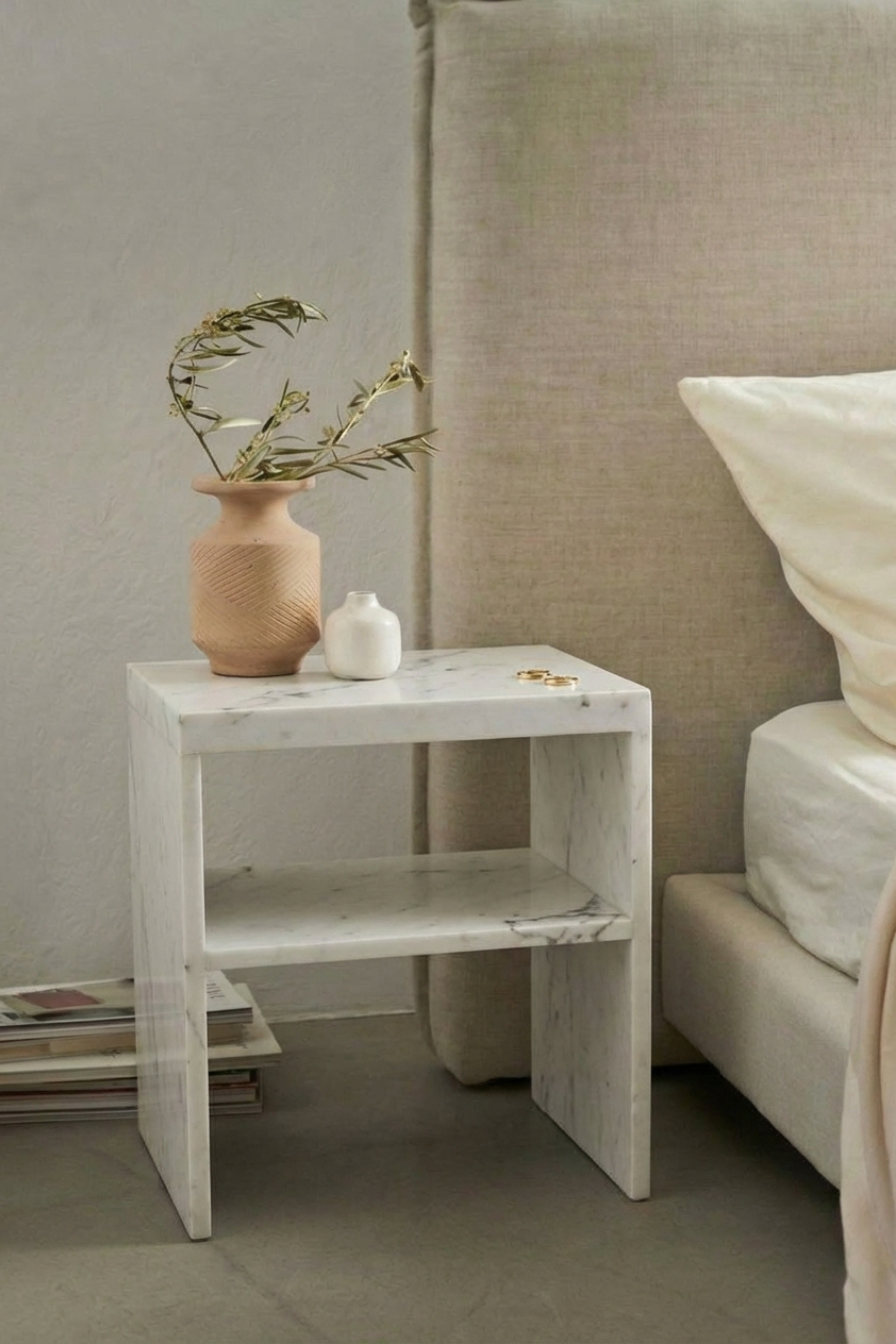 Transform your bedroom with the elegance of a White Statuario Marble bedside table, where luxury meets functionality. The smooth, polished surface highlights natural veining, adding a touch of sophistication to any setting. Its sturdy base ensures durability, while the refined design seamlessly blends with modern, minimalist, or classic interiors. Whether placed beside your bed or as an accent table, this exquisite piece enhances your décor with timeless charm.