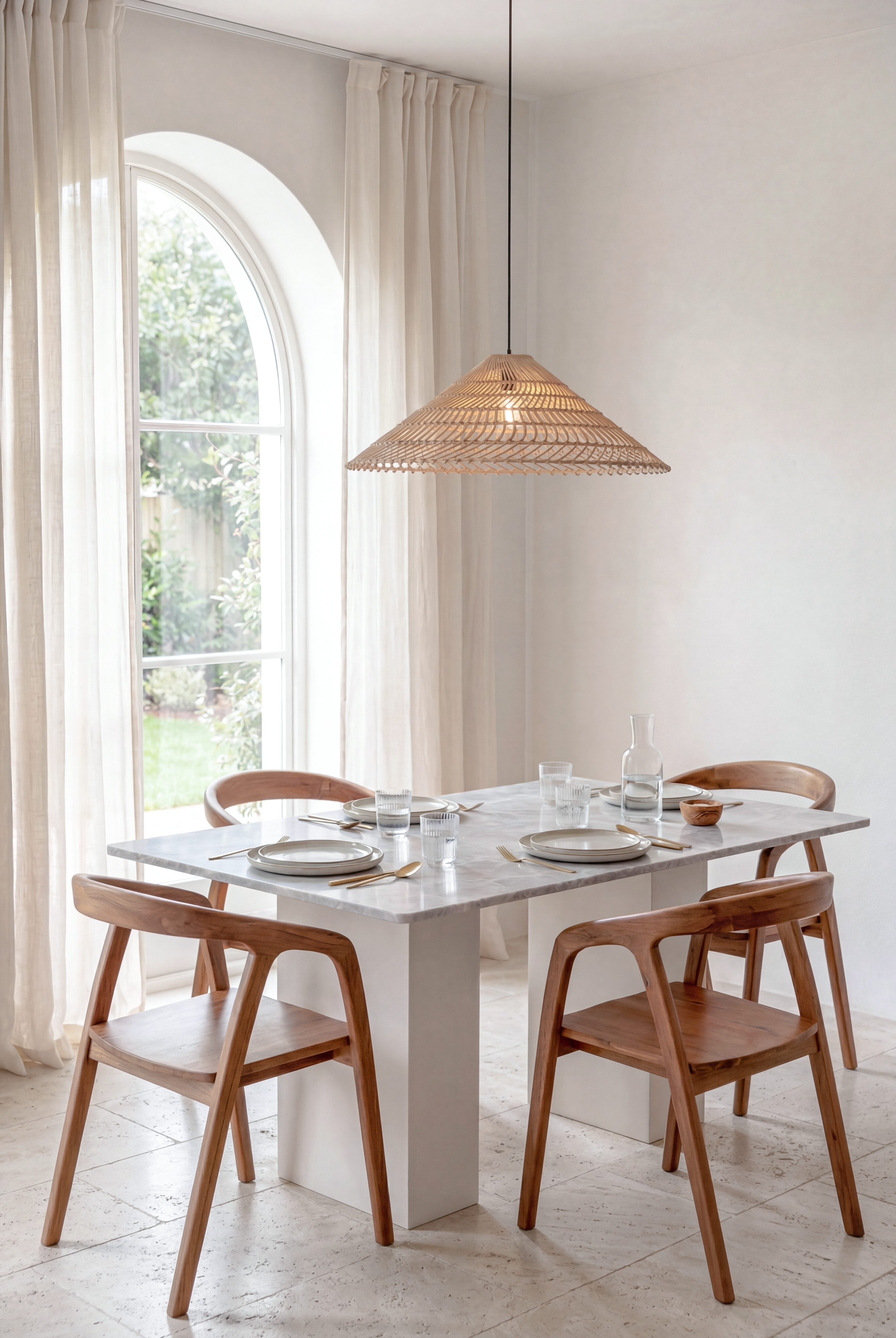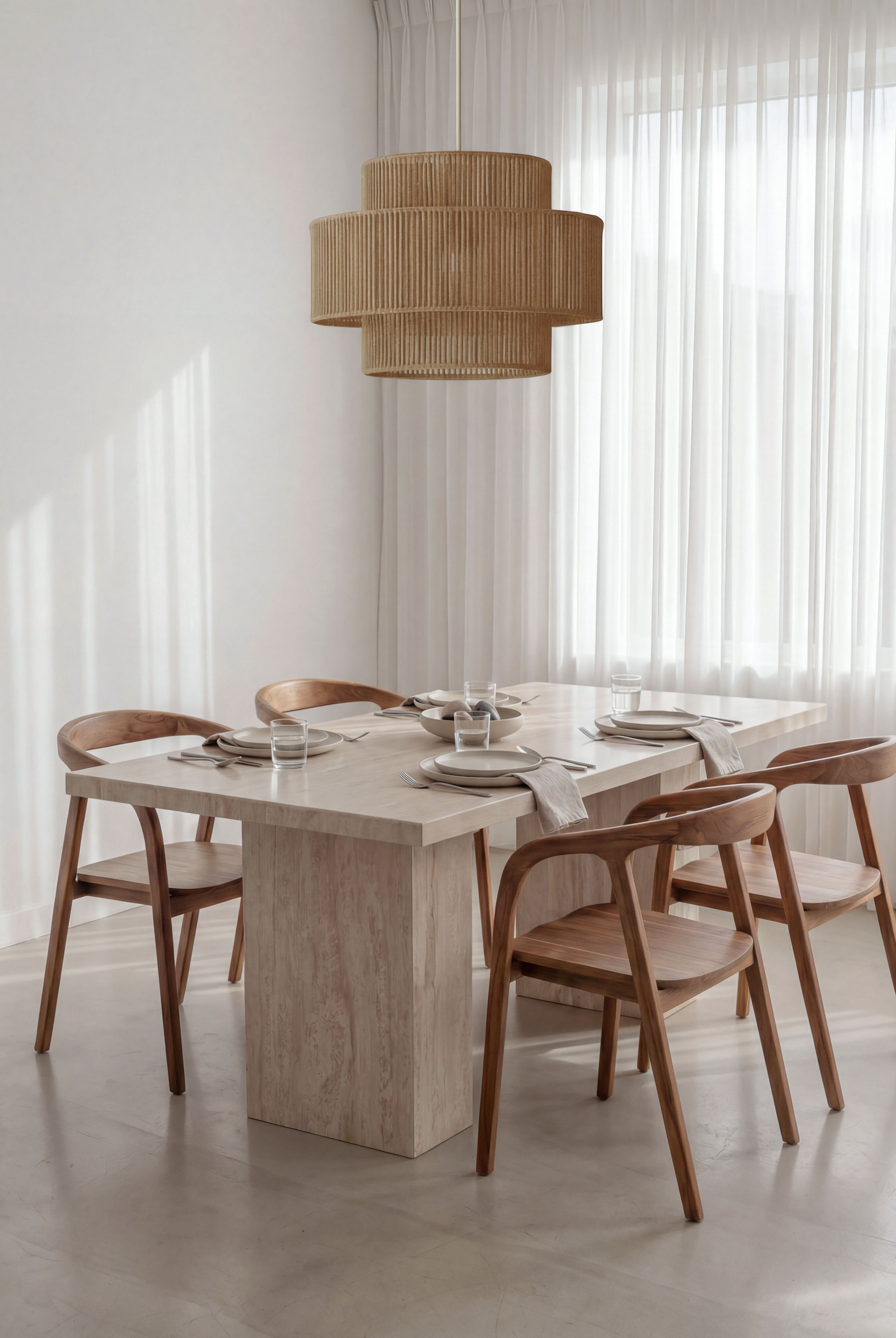 Crafted from premium travertine, this dining table showcases a sleek rectangular top supported by two sturdy block legs, offering a striking balance of minimalism and grandeur. The natural stone surface features distinctive textures and organic patterns, enhancing its timeless appeal. Designed to elevate modern, contemporary, and minimalist interiors, this statement piece seamlessly complements dining spaces, creating a refined focal point. Perfect for hosting gatherings or everyday dining, its durable construction ensures lasting elegance.
