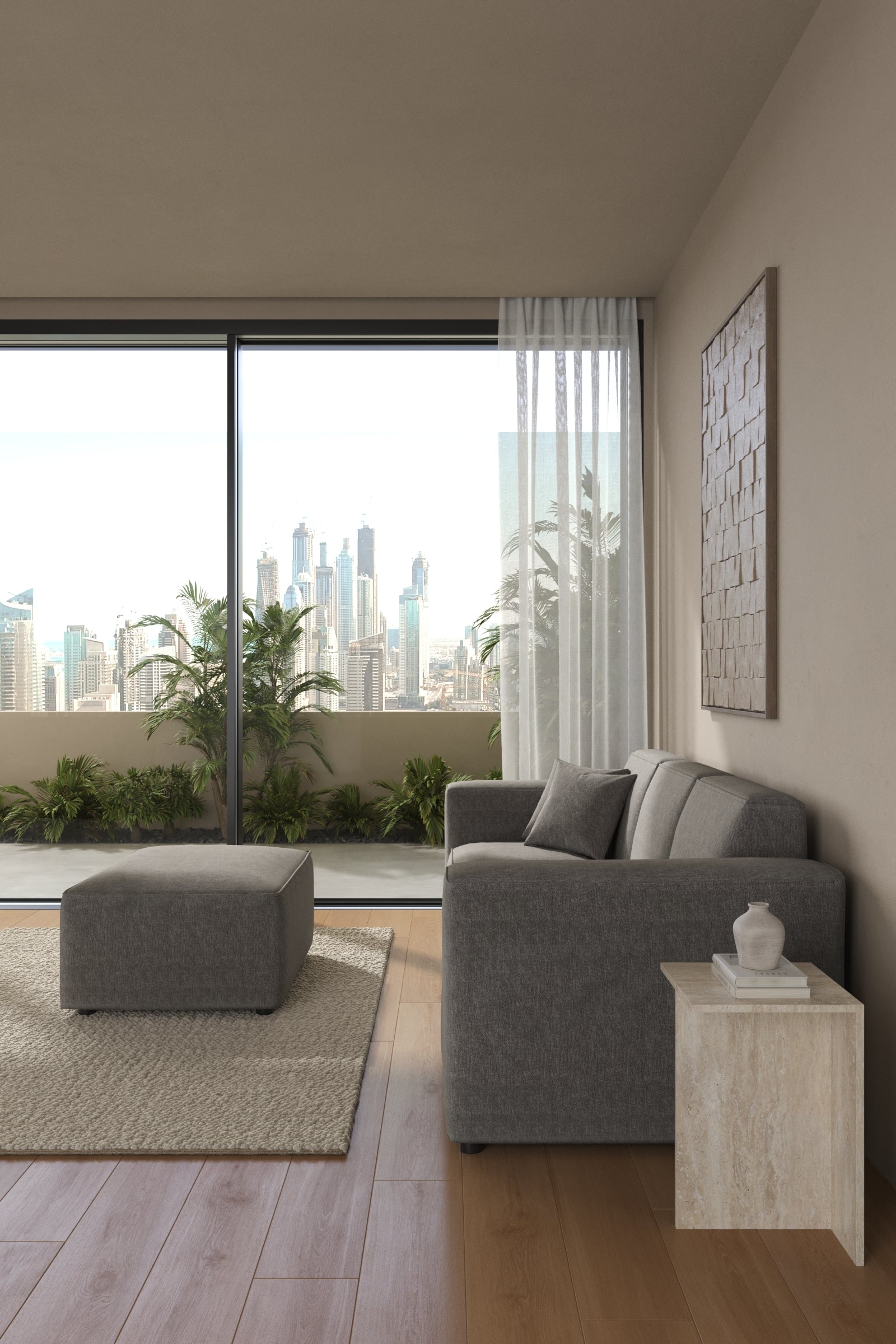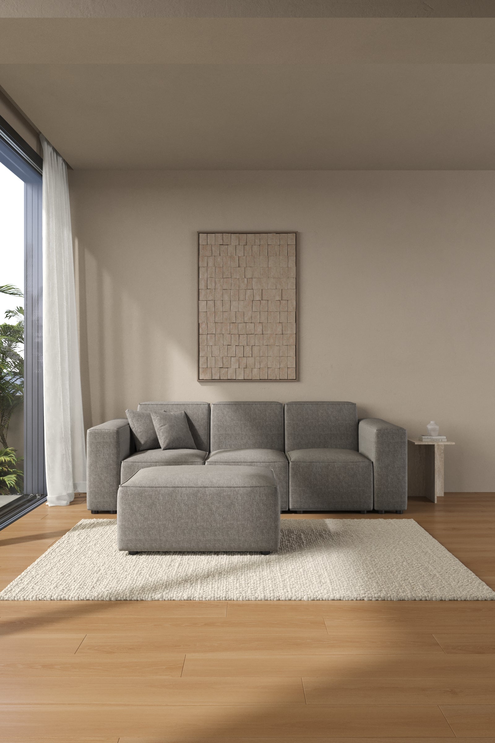 Bring neutral sophistication into your home with the understated ash taupe finish. The modular build adapts to your needs, while the ottoman provides flexible seating or lounging, perfectly balancing elegance and everyday comfort.