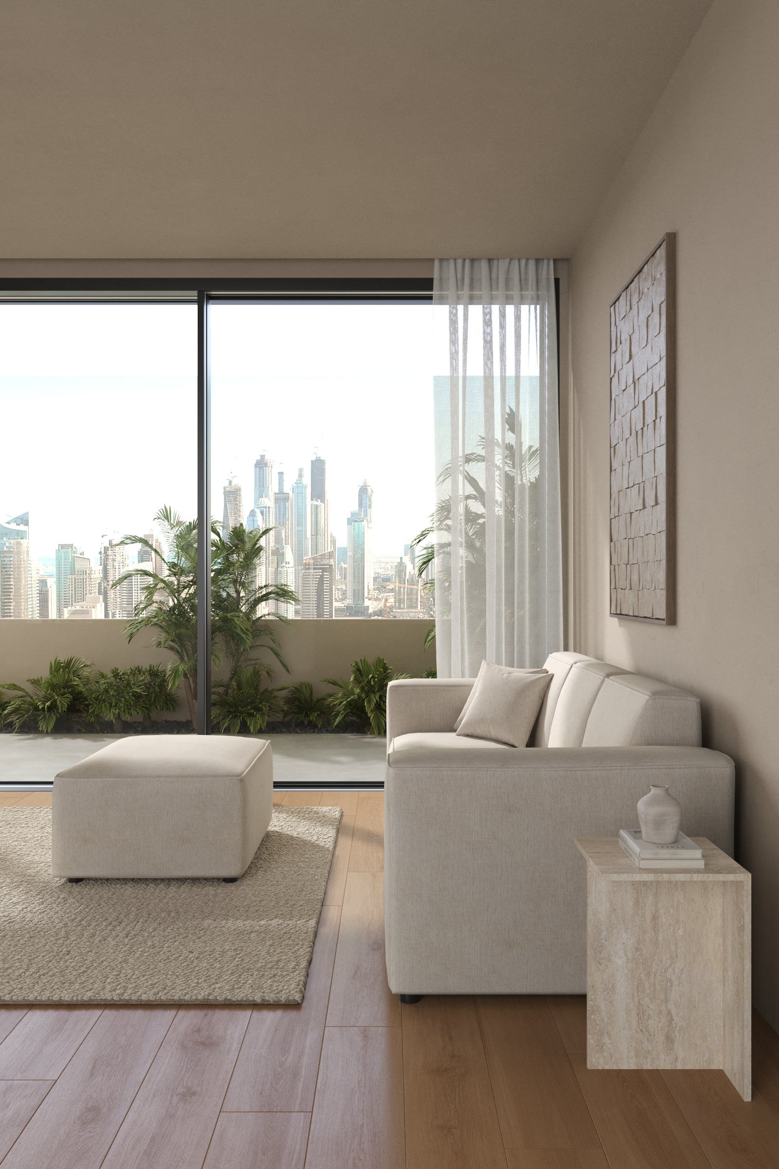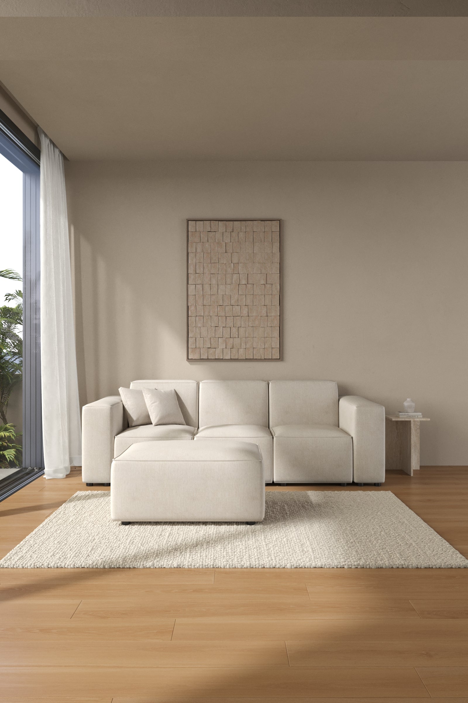 Create a cozy retreat with the earthy café veil shade that blends seamlessly into warm interiors. The modular design allows easy adaptability, while the ottoman and supportive cushions make every moment relaxing and stylish.