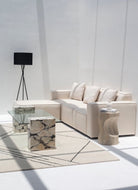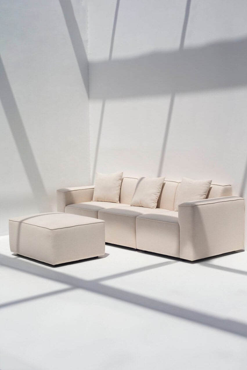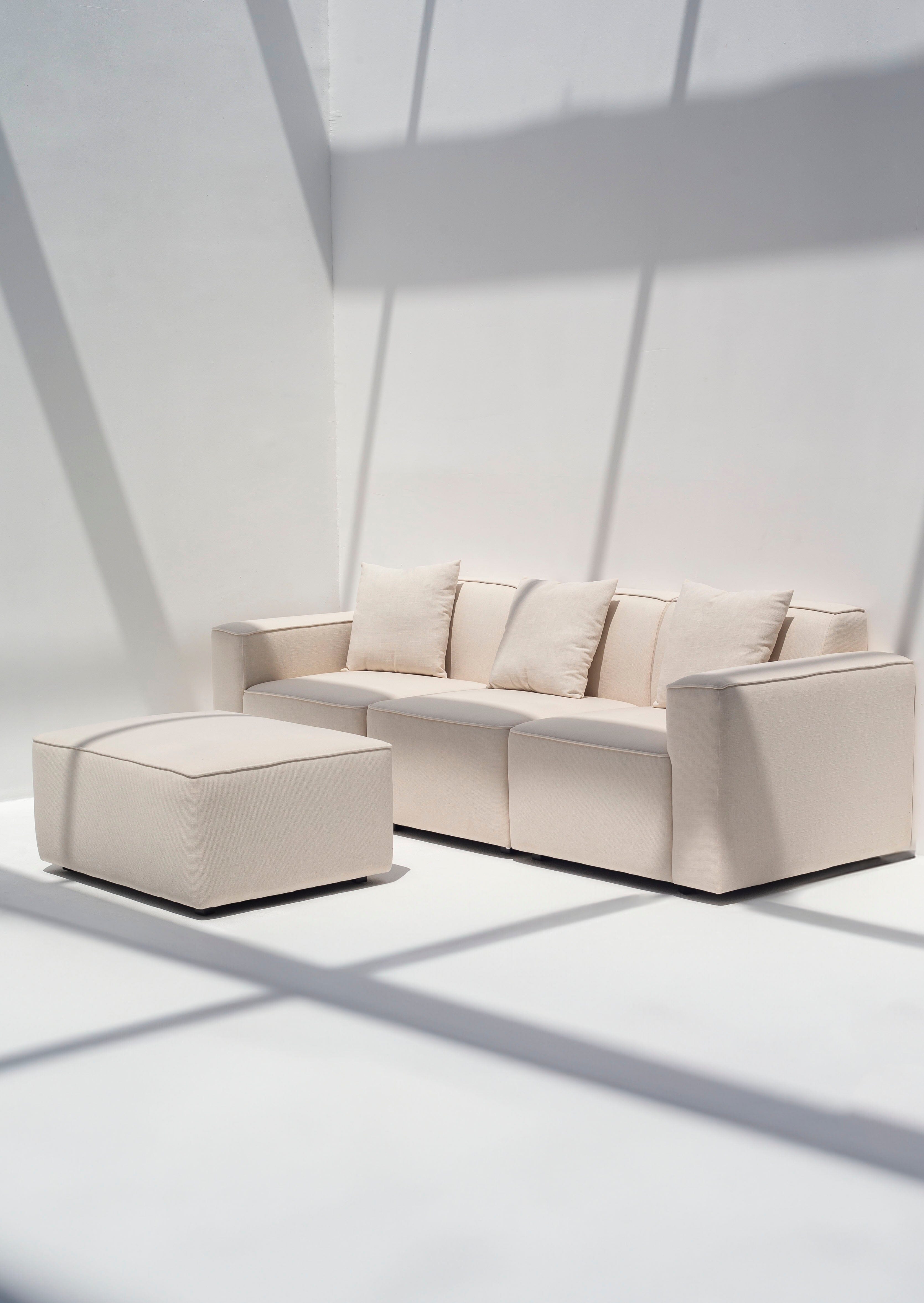 Step into your living space and feel instantly at home with a modular sofa that adapts to your lifestyle. Wrapped in soft cream linen, its smooth texture and clean silhouette bring modern elegance, while the deep seats and plush cushions invite you to sink in and unwind. The versatile ottoman extends your comfort, doubling as a footrest, extra seat, or coffee table alternative. Its neutral color blends seamlessly with any décor, reflecting light to brighten your space and creating a calm, airy atmosphere. Designed for both style and flexibility, it transforms your room into a personal haven of comfort.