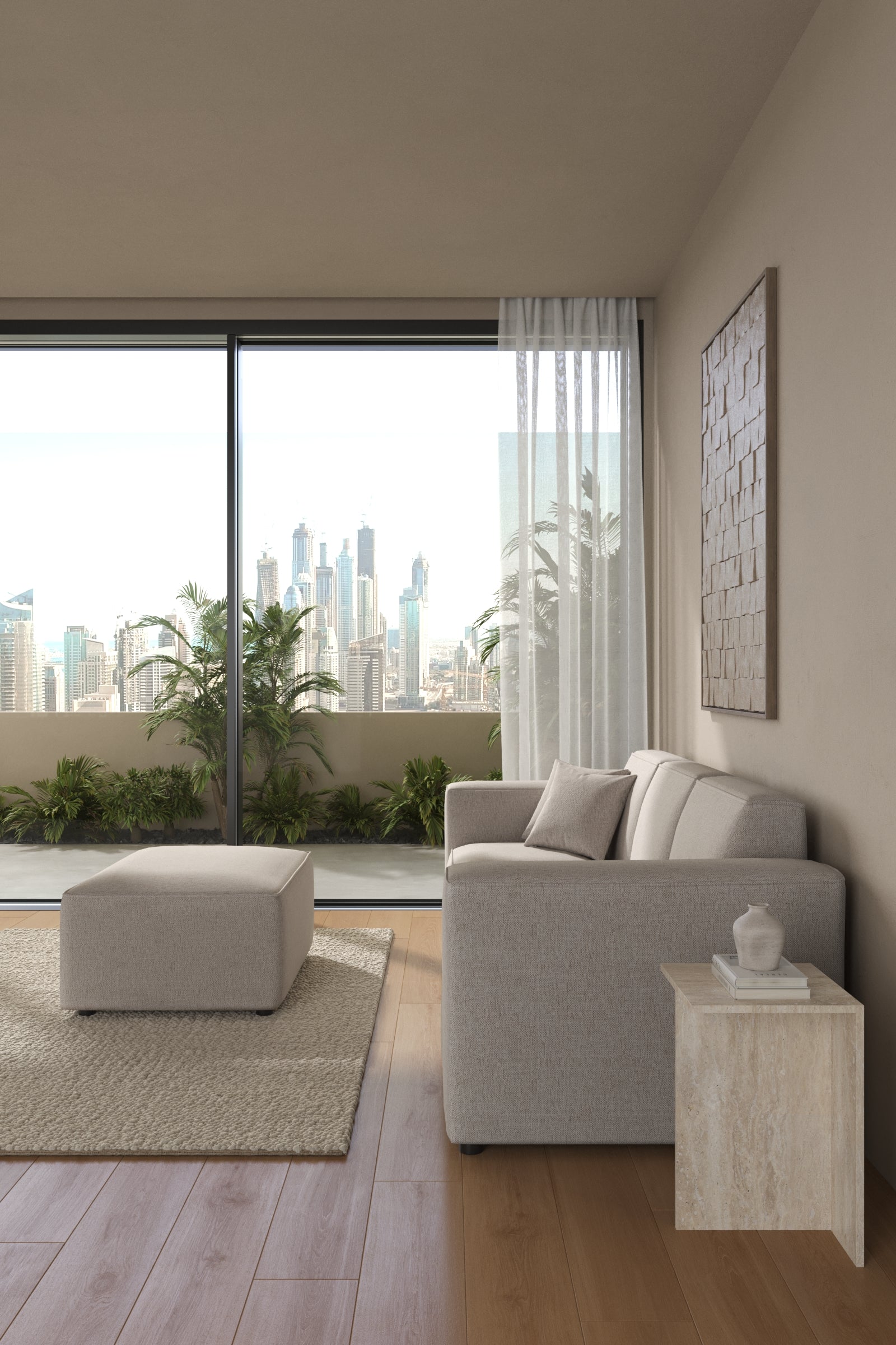 Unwind in understated luxury with repose grey tones that bring harmony to your space. The modular layout adapts to your lifestyle, while the ottoman extends comfort for lounging or entertaining with ease.
