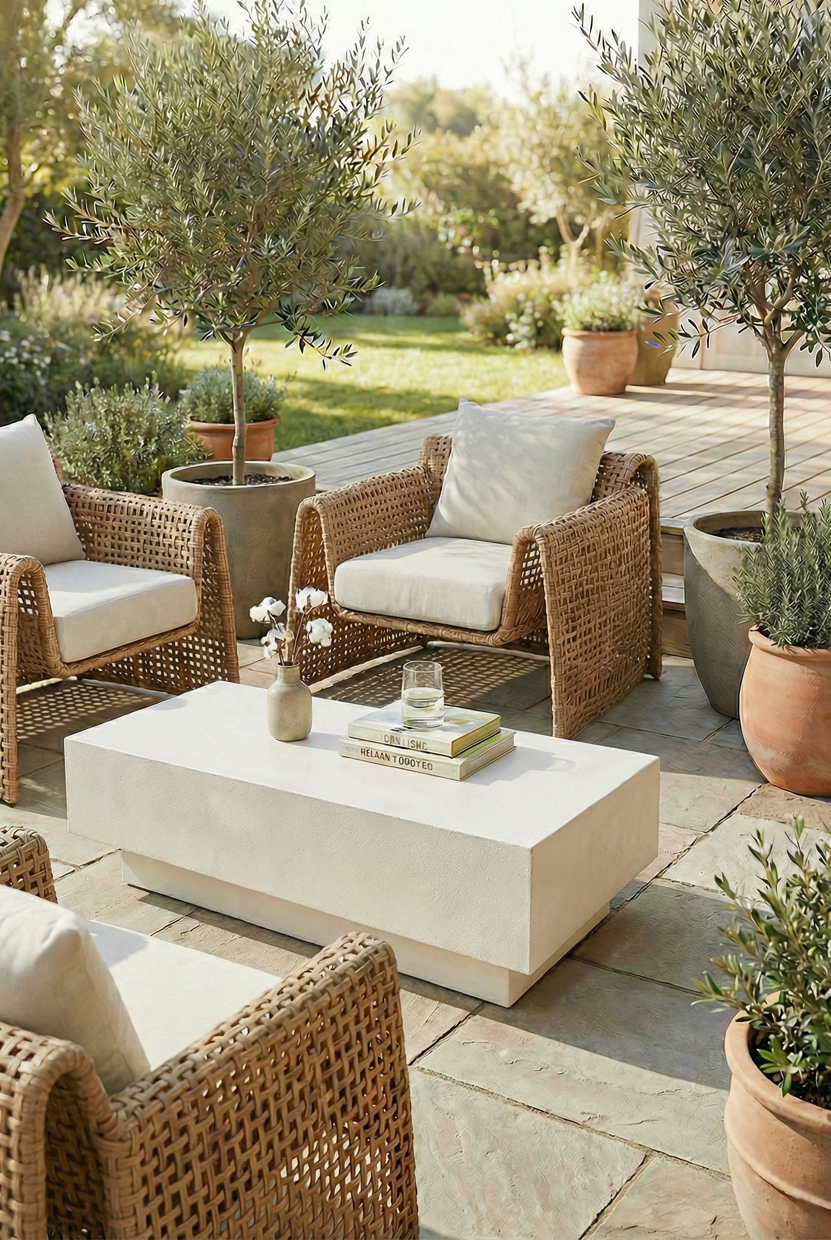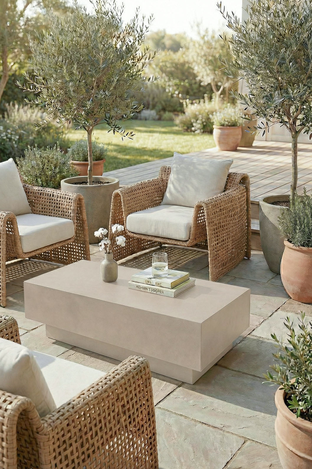 Designed for outdoor use, this minimalist microconcrete coffee table features a clean rectangular form with a low, solid profile. The smooth matte surface has a subtle texture that highlights the material’s natural finish, while the grey tone adds a calm, contemporary feel to outdoor seating areas. Its block-style construction provides a stable surface for everyday use, suitable for books, tableware, or decorative accents. Well suited for terraces, patios, and covered lounge spaces, it fits comfortably within modern and neutral outdoor environments.