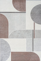 The Azaliya Geometric Rug is a striking fusion of modern artistry and cozy warmth, designed to elevate your space. Its abstract pattern of interlocking half-circles and rectangles comes to life in a refined palette of earthy terracotta, muted grey, and warm beige. The soft, inviting surface enhances comfort underfoot, while the clean lines and subtle color shifts add layered visual interest. A bold yet balanced accent for contemporary interiors.