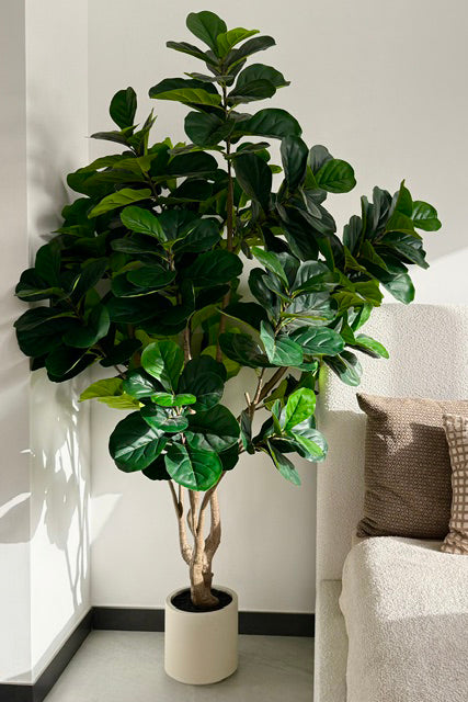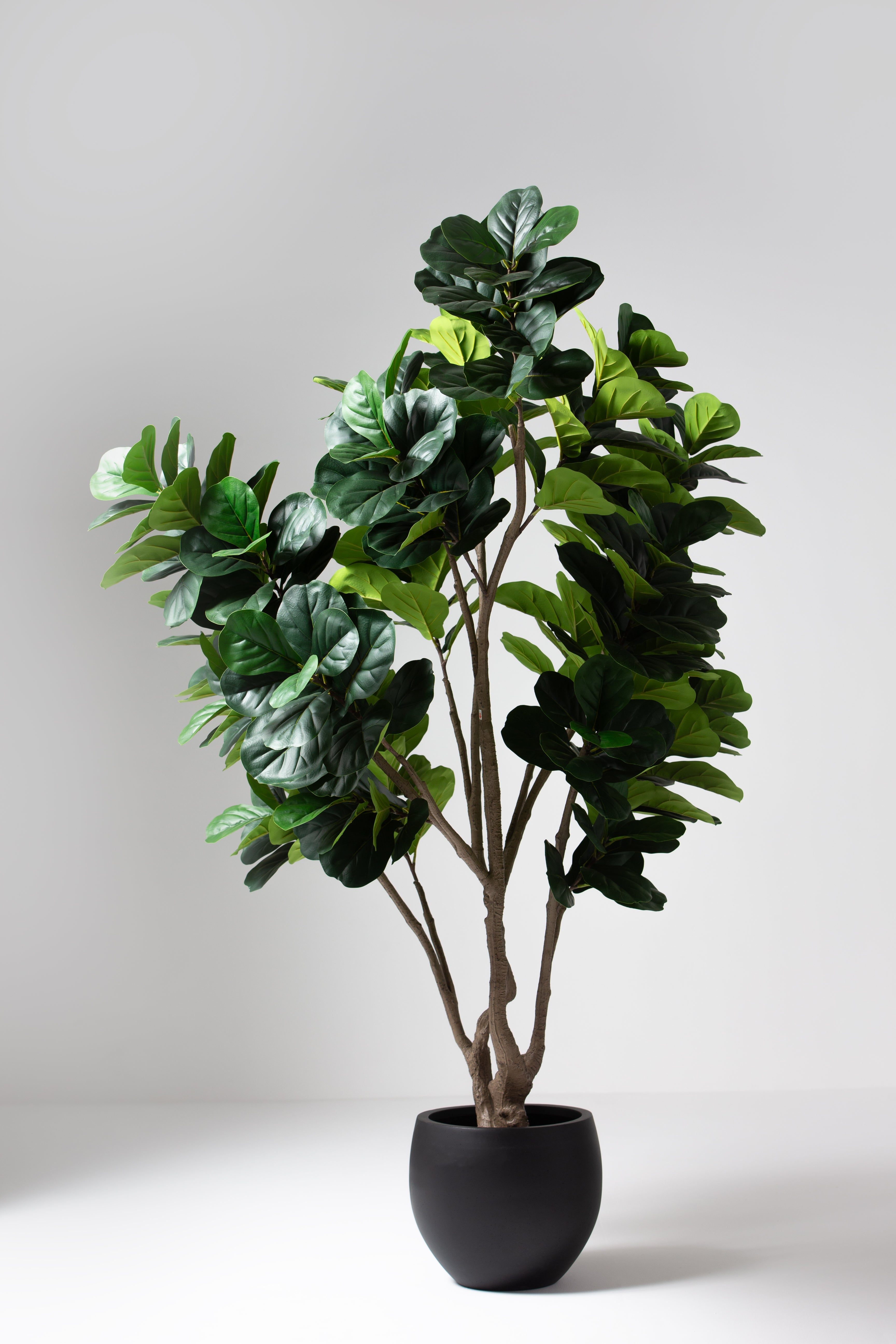 Elevate your indoor greenery with this ultra-realistic artificial fiddle leaf fig, crafted with richly textured veined leaves in lush green tones and a lifelike branching structure. The sturdy brown trunk and sculpted matte pot ground the design in natural elegance, while the detachable and interchangeable branches allow you to customize the plant’s width to suit your space. Perfect for brightening up living rooms, entryways, or offices, this maintenance-free tree offers all the charm of a real plant—without the upkeep.