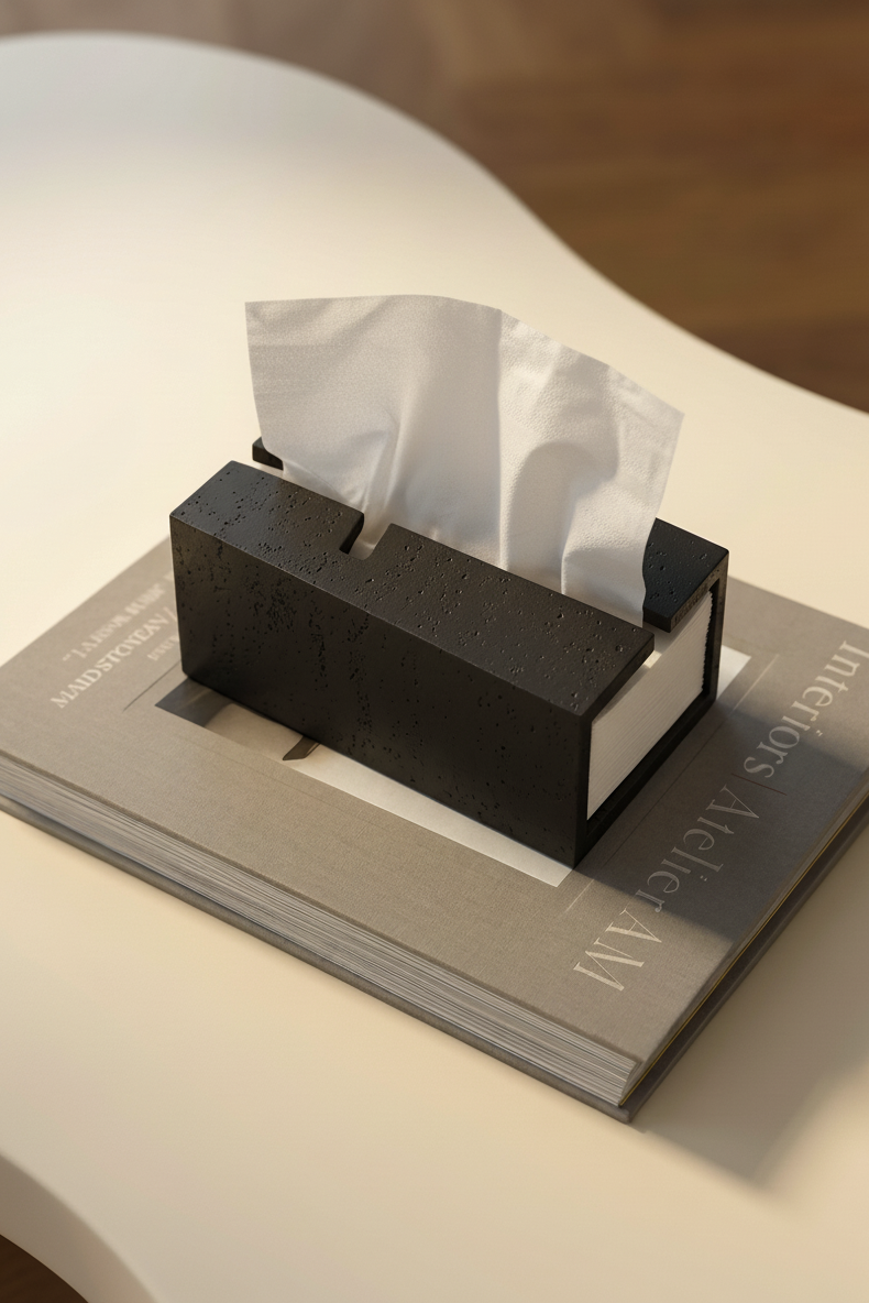 Step into a world of refined minimalism with a black textured tissue holder designed to elevate your daily routine into a modern design moment. Its crisp rectangular form draws inspiration from European architectural blocks, creating a sculptural presence that feels bold yet effortlessly sophisticated. The matte stone like finish enhances the play of shadow across its surface, offering a tactile depth that brings a sense of calm luxury to any setting. Perfect for contemporary homes, refined bathrooms, or stylish workspaces, it blends artistry and function to help you curate a space that feels intentional and beautifully composed.