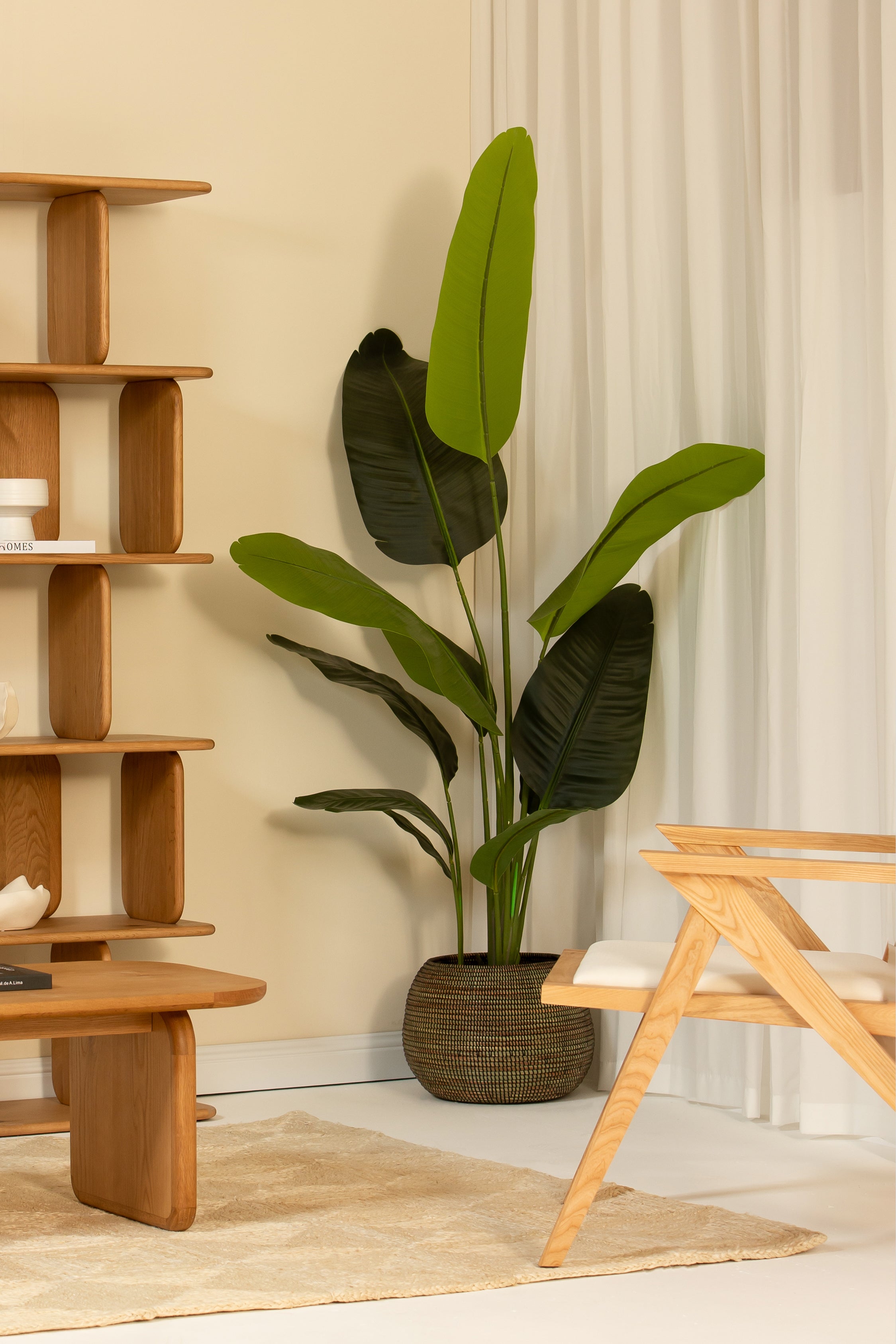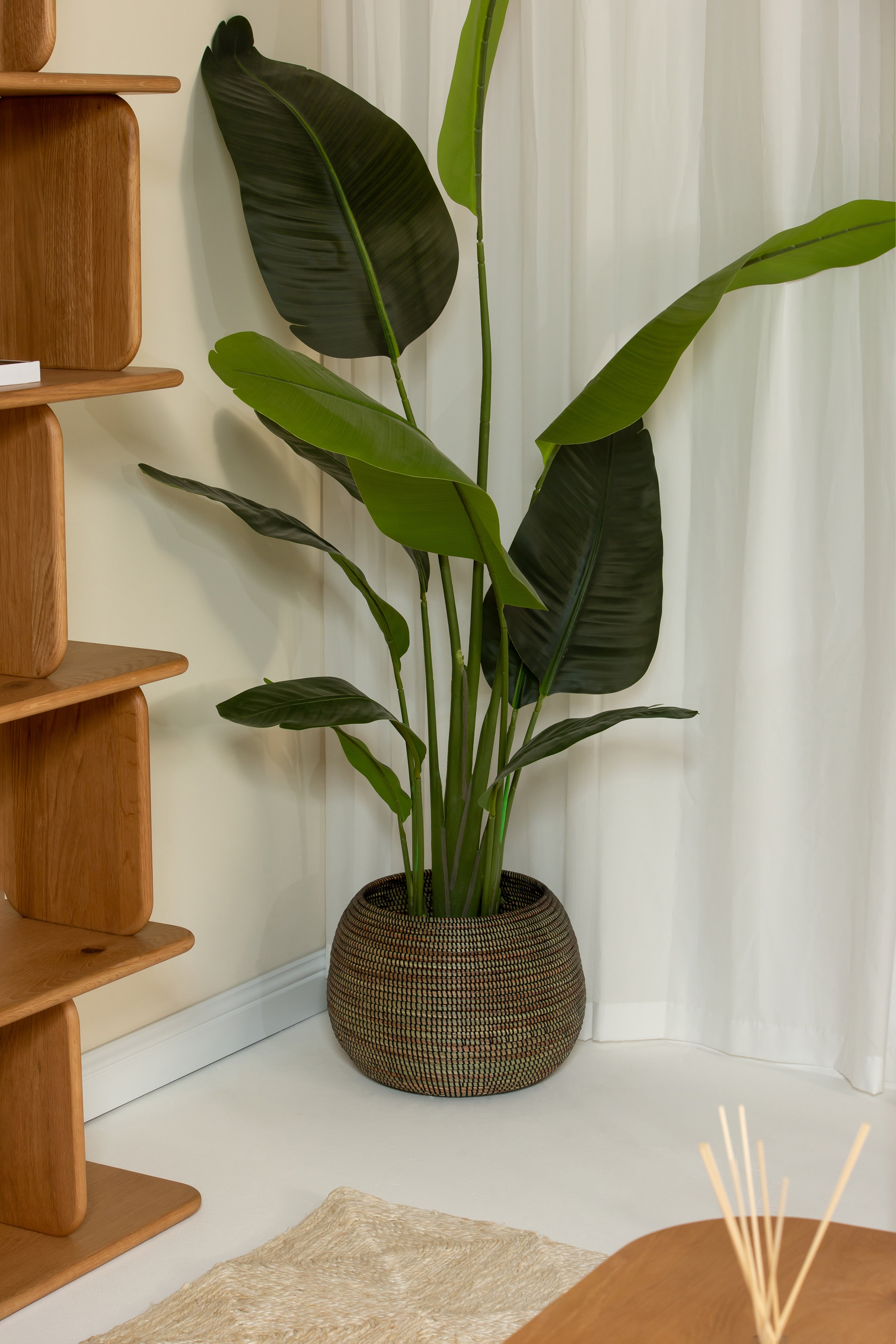 Transform your interiors with the bold presence of the Bird of Paradise plant (Strelitzia reginae). Known for its lush, paddle-shaped leaves and dramatic vertical growth, this statement plant brings a touch of tropical luxury to any modern home or workspace. Ideal for minimal and contemporary aesthetics, its striking silhouette adds height and a lush green vibe to corners, entryways, or living rooms. Designed to impress, this artificial version offers zero-maintenance greenery with maximum visual impact.