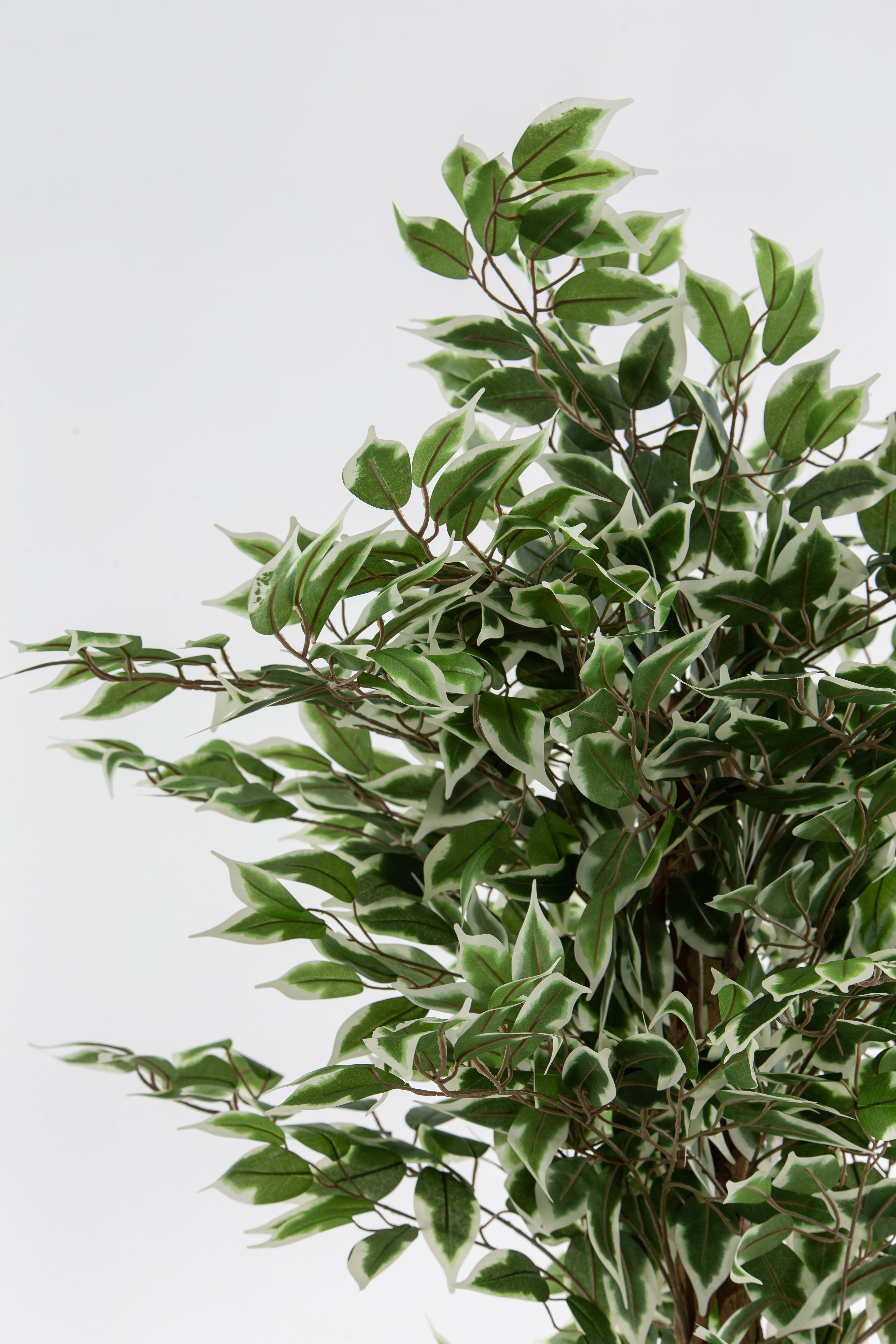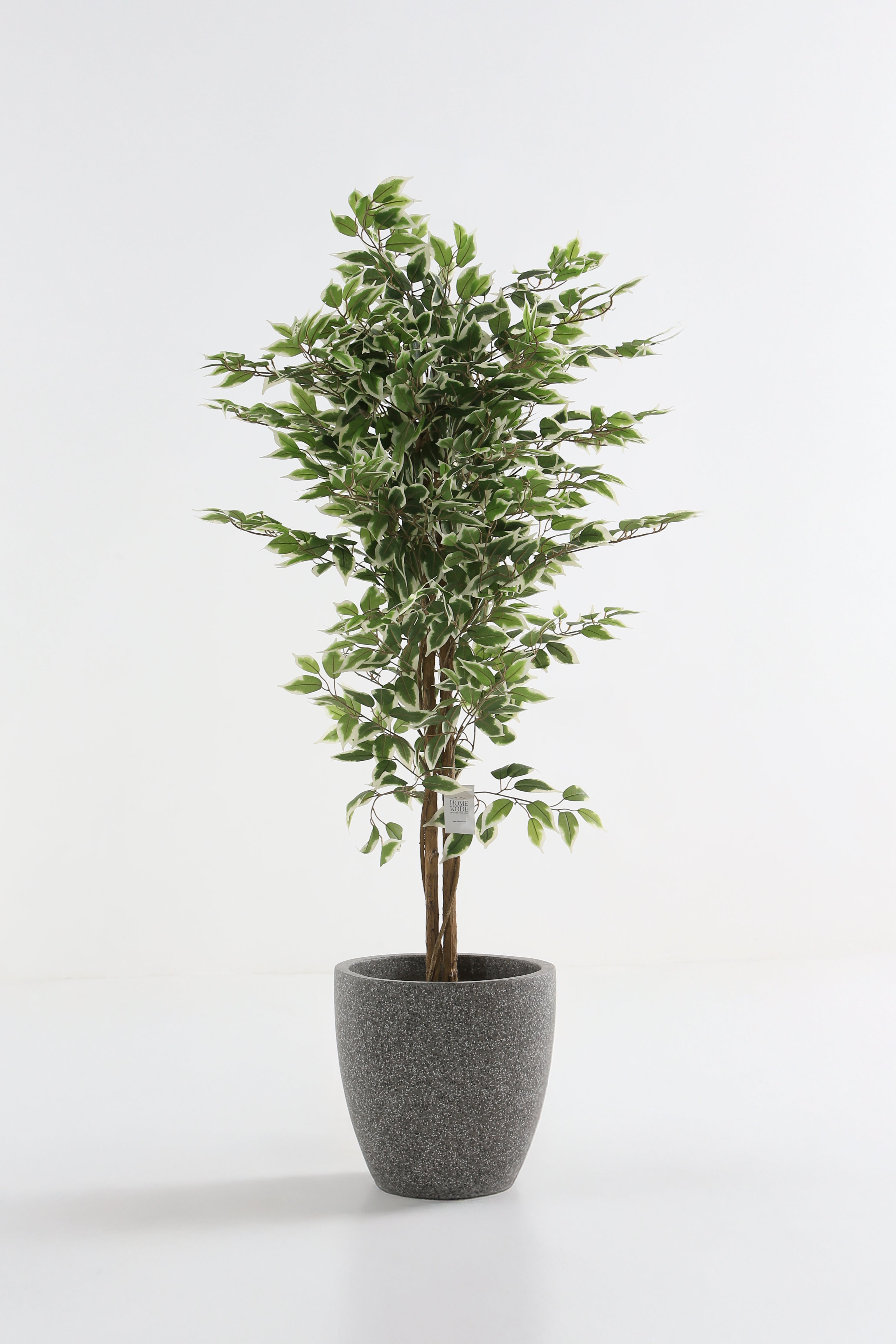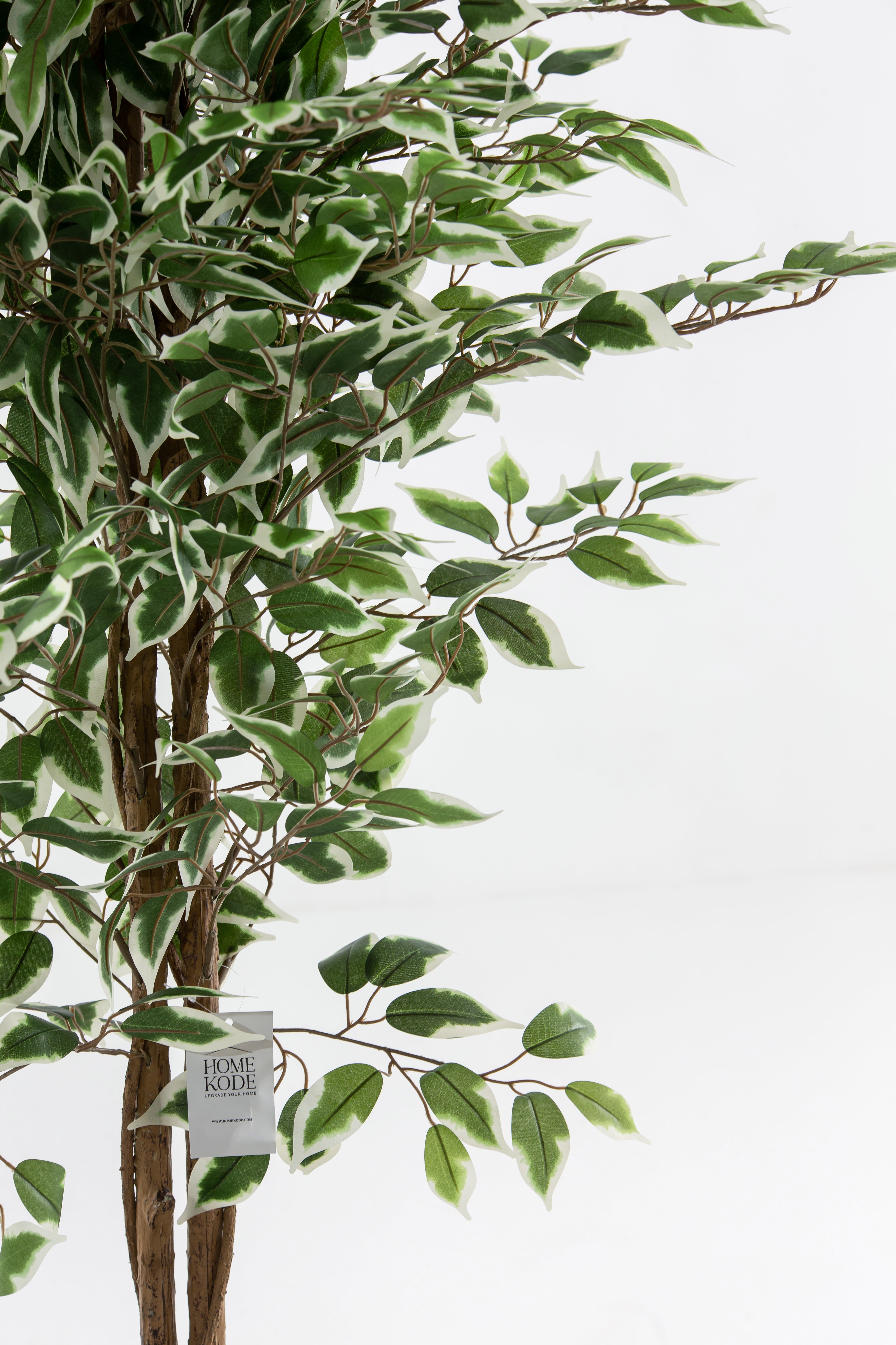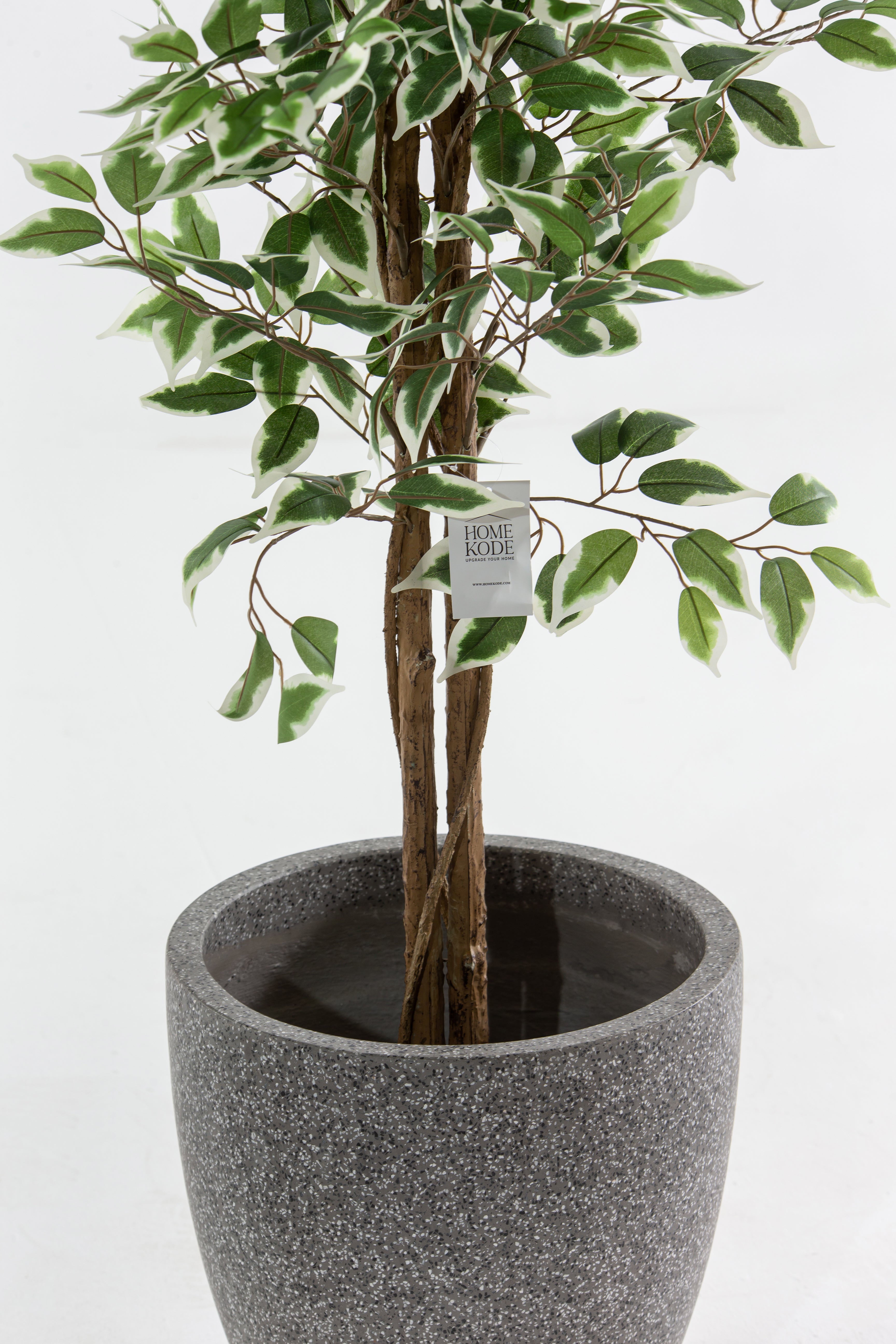 This artificial tree with lush variegated foliage brings fresh texture and lightness to modern interiors. Designed with realistic, dual-toned leaves and a natural-looking trunk, it offers a lifelike alternative to living plants without the need for sunlight or watering. The crisp green and white tones pop beautifully against the dark, speckled grey planter, creating contrast that enhances any corner, console, or workspace. A perfect fit for contemporary, Scandinavian, or neutral-toned environments, this piece adds height, movement, and greenery with minimal effort.