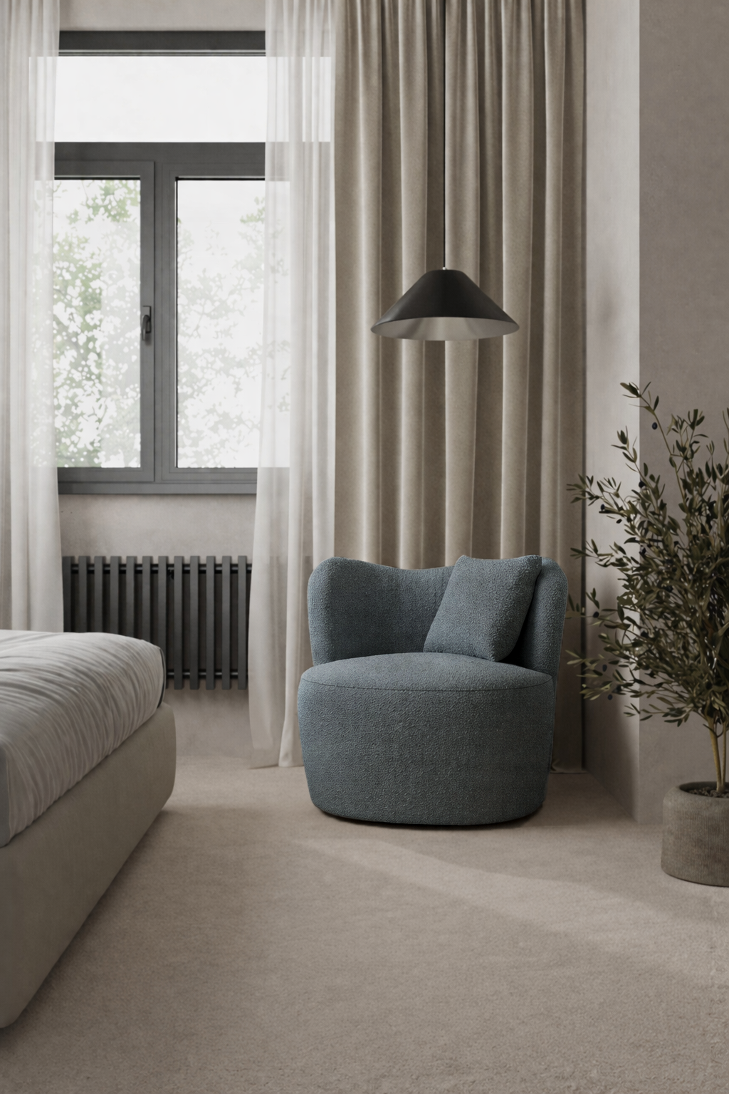 Refresh your living space with bluish grey upholstery that combines modern sophistication with calming tones. The rounded silhouette and plush cushions provide exceptional comfort, while the swivel base ensures ease of movement. Its unique color adds depth to interiors, making it a versatile piece for contemporary or transitional homes. Both stylish and functional, it transforms your space into a serene retreat.