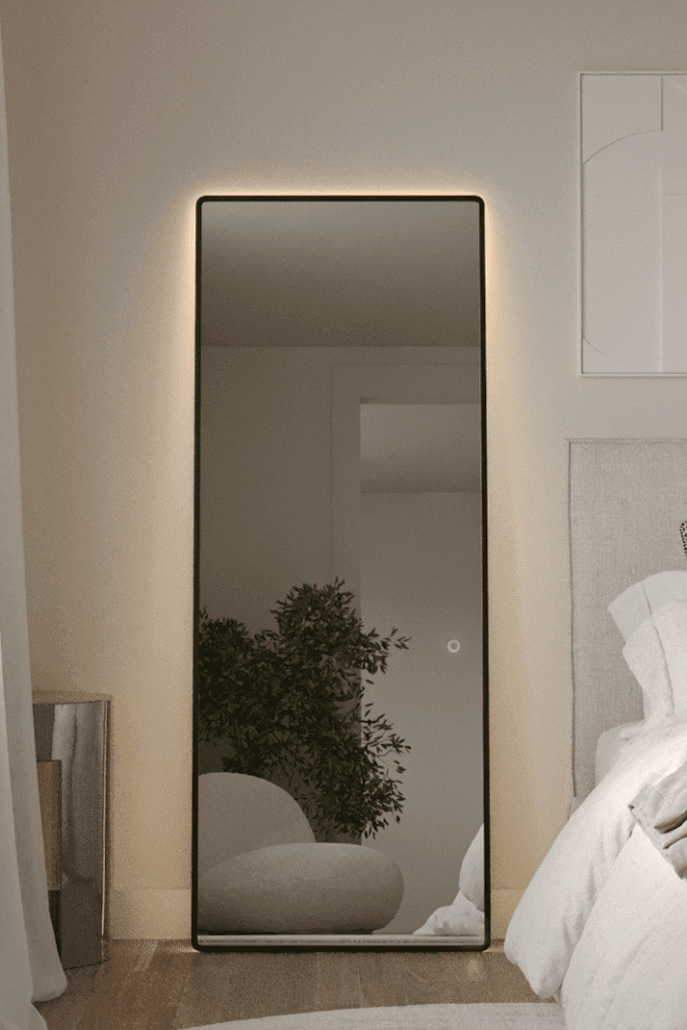 This gold aluminum framed backlit mirror radiates warmth with its rectangular design and softly rounded corners. The integrated LED emits a gentle golden hue that enriches reflections and adds depth to the surrounding space. Clear mirror glass offers crisp clarity while the slim metallic frame introduces a refined contrast against neutral walls. Ideal for bedrooms, dressing rooms, or entryways where subtle illumination enhances everyday routines.