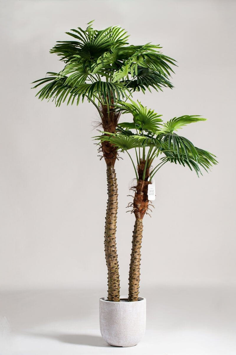 Step into Luxury with the Artificial Double Headed Palm Tree. Elevate your spaces with the unmatched beauty of our Artificial Double Headed Palm Tree. Perfectly mirroring the dual-crowned splendor of its natural inspiration, this tree adds a touch of resort-style luxury without any upkeep.