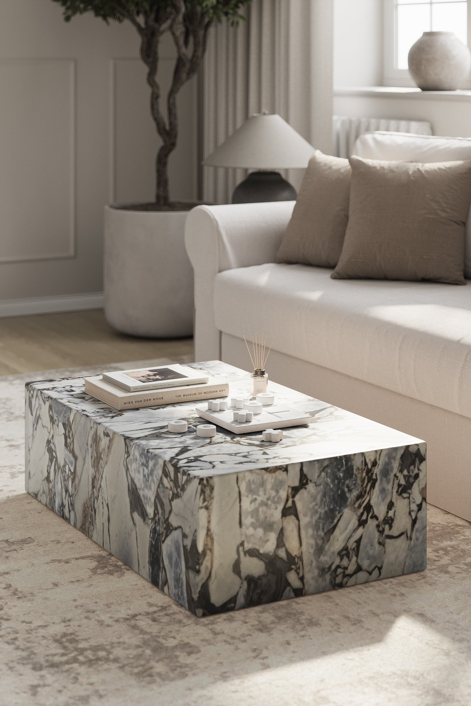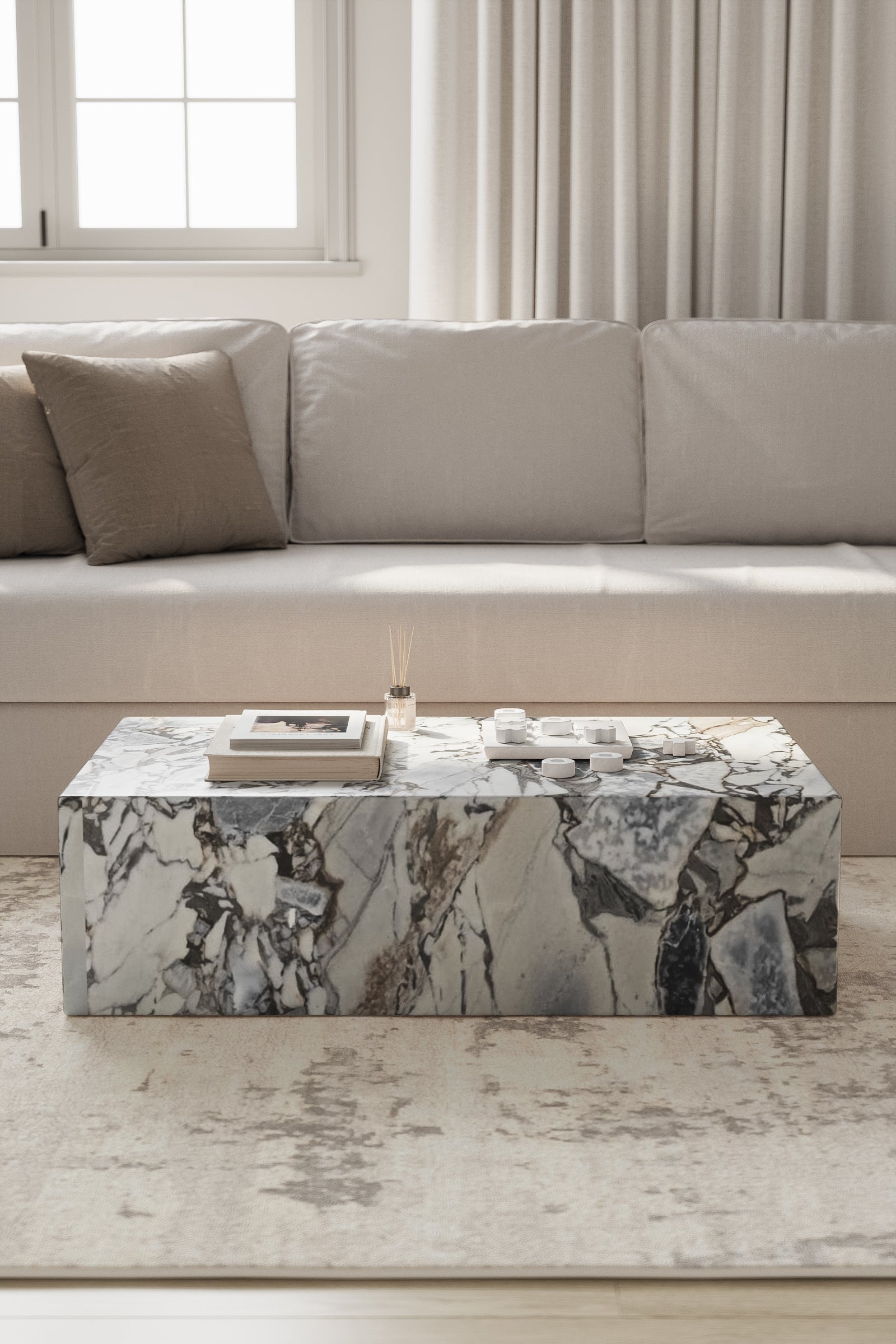 This sophisticated coffee table brings luminous elegance to your home through a sculptural cube silhouette crafted from stunning White Beauty marble. Its polished surface reveals flowing patterns, soft color variations, and natural stone artistry that create a serene yet commanding presence in any room. Designed to complement both contemporary and classic interiors, it offers a balanced blend of refinement and everyday function, providing a versatile surface for decor accents, books, and quiet moments of relaxation. With its solid craftsmanship and timeless appeal, it introduces an elevated sense of harmony, beauty, and enduring style to your living space.