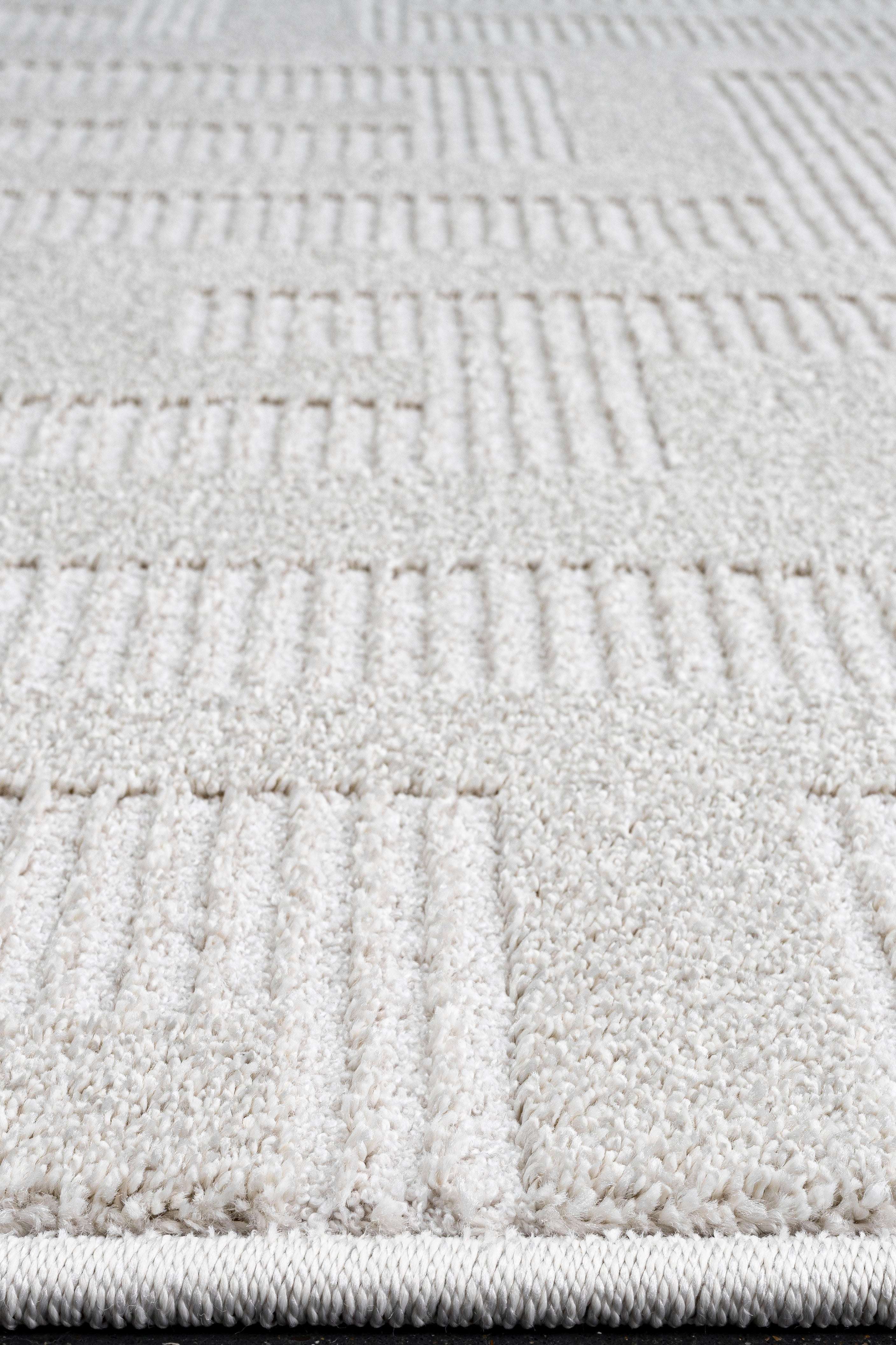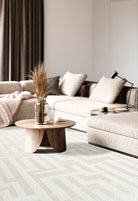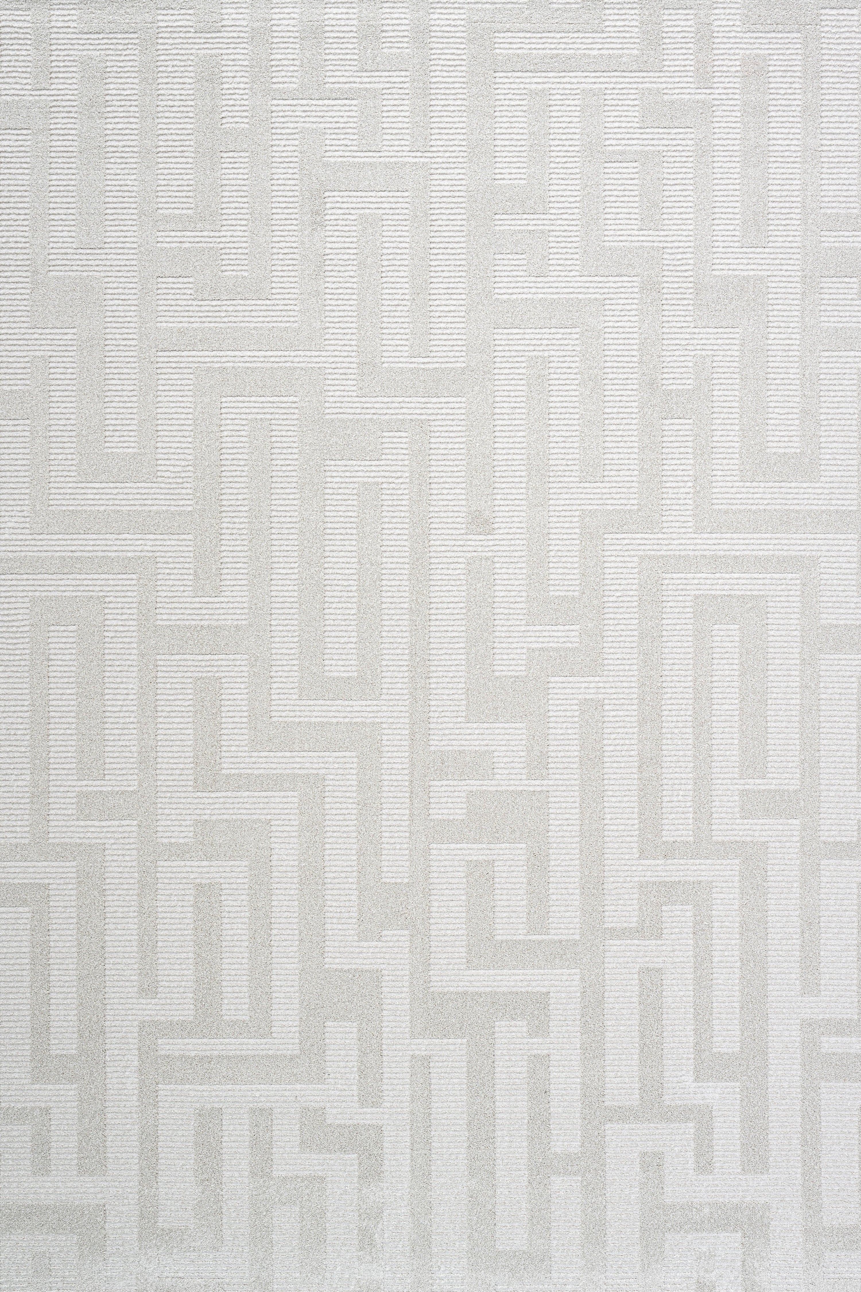 The Gerta Geometric Rug brings a bold yet refined touch to any modern space with its maze-inspired pattern in soft off-white and delicate beige tones. Its low-profile surface creates a sleek, contemporary feel—perfect for busy areas—while maintaining a gentle softness underfoot. The rectangular form and intricate labyrinth design transform any setting into a statement of elegance, whether placed in a stylish living room, refined dining space, or modern bedroom.