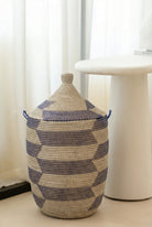 Maisha Blue & White Spiral Patterned Handmade Basket