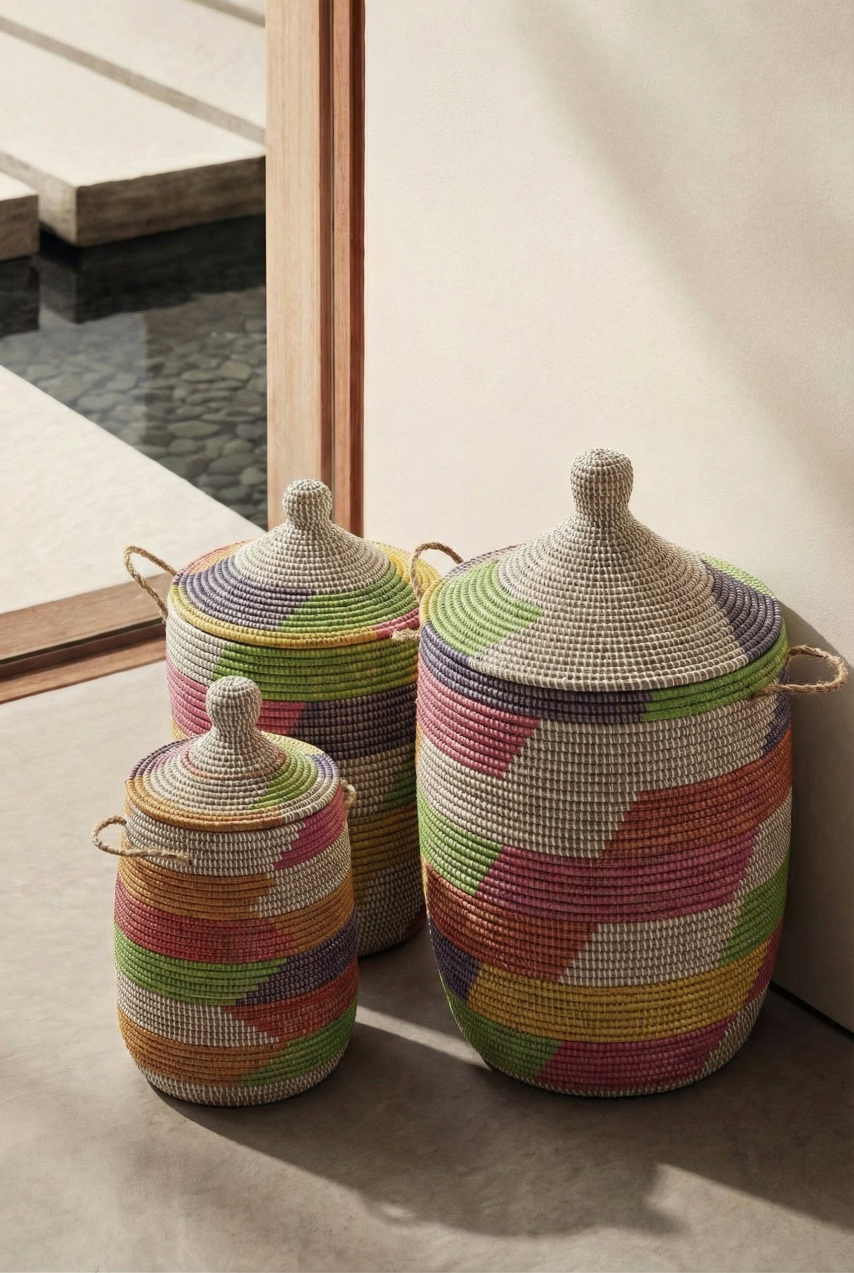 These baskets are handwoven by a group of women living in villages in Senegal. Made out of dried local grass and eco friendly PP plastic.