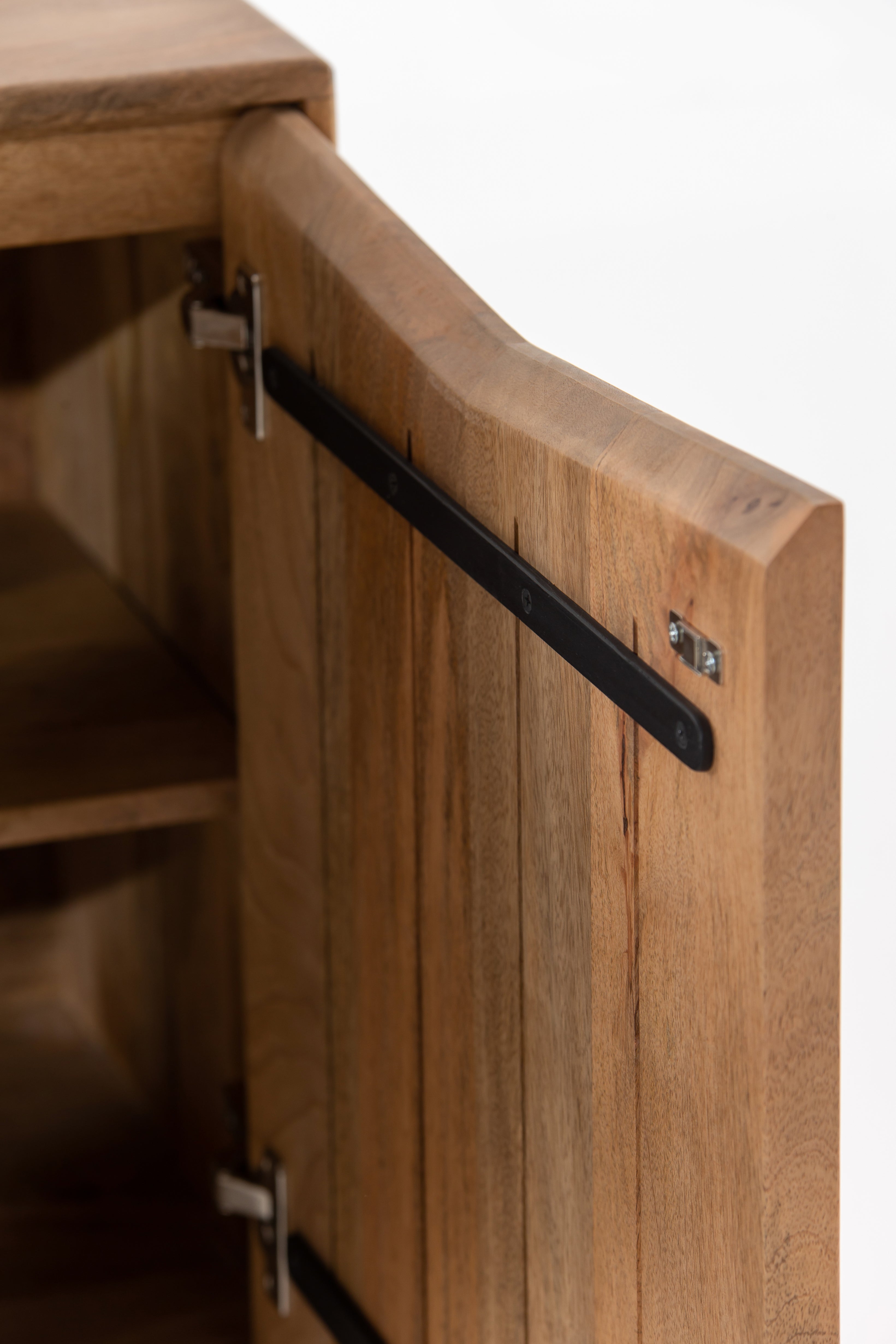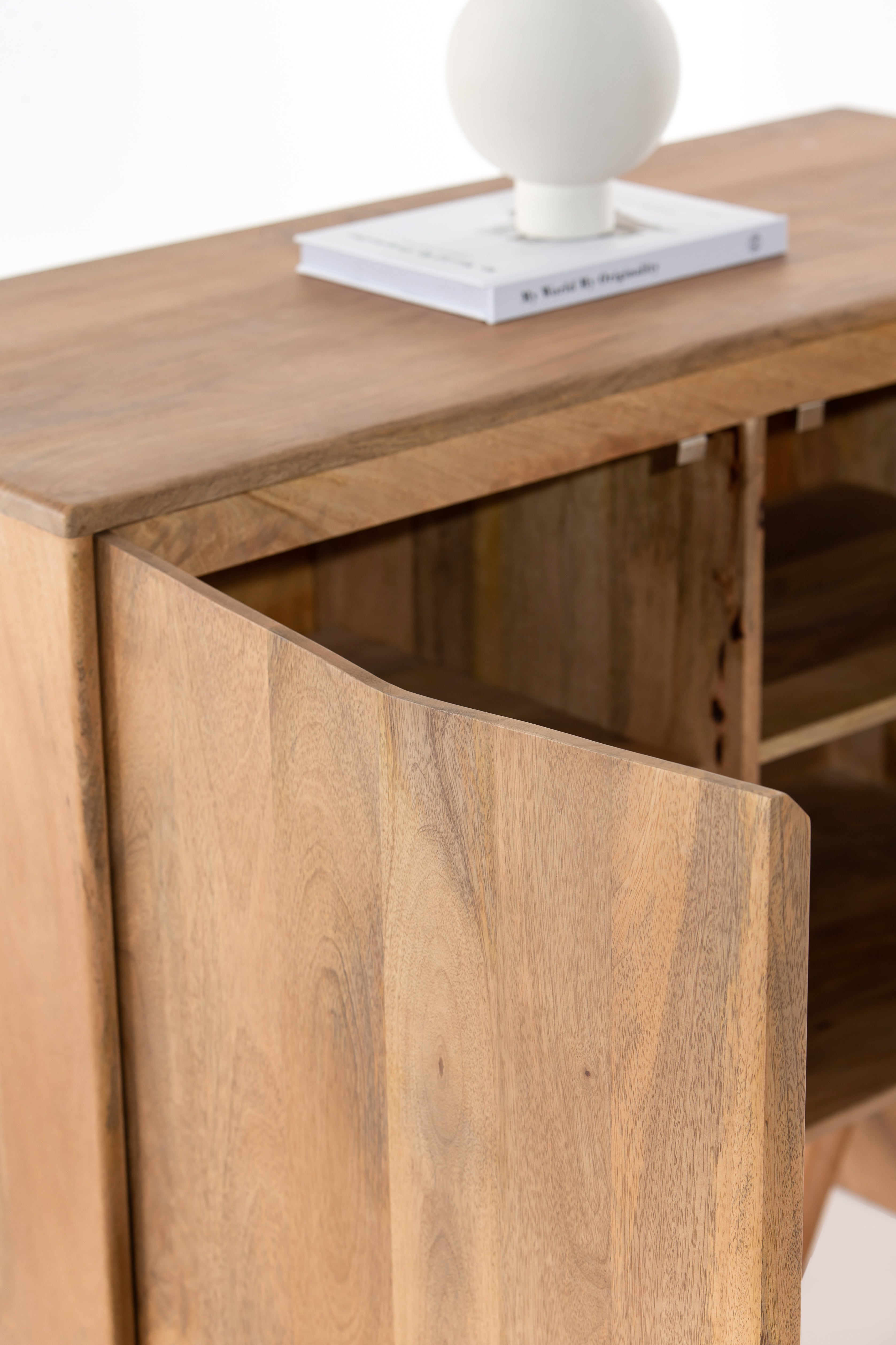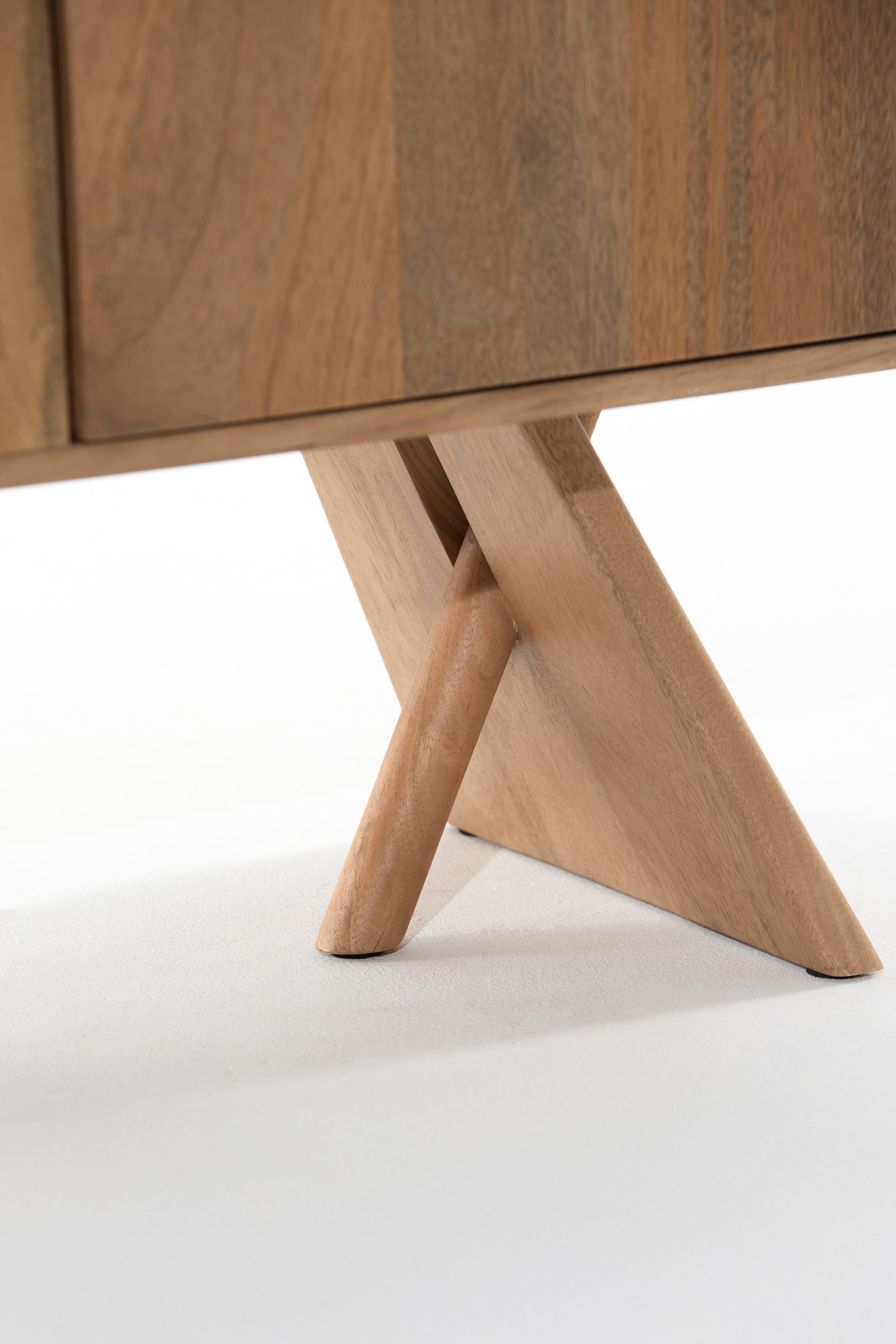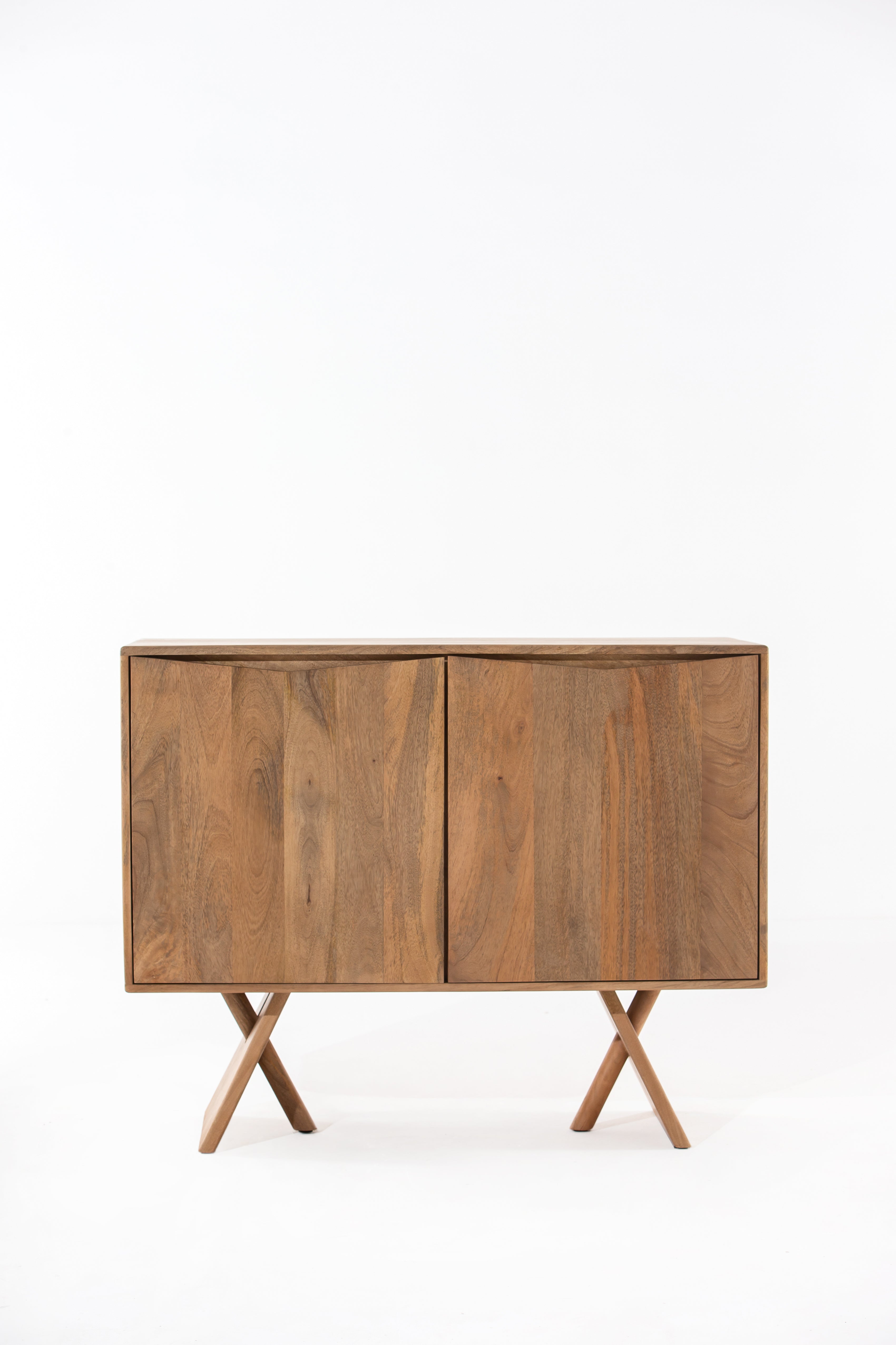 Bring effortless elegance to your interior with this 2-Door Wooden Sideboard, crafted from high-quality solid Mindi wood. Its natural grain finish highlights the organic beauty of the wood, while the minimalist design ensures it integrates seamlessly into contemporary or Scandinavian-inspired interiors. Resting on bold X-style sculptural legs, this compact storage unit offers two doors that open to reveal internal shelving—perfect for stashing away essentials in living rooms, entryways, or dining spaces. Thoughtfully sized for versatility, this piece is as functional as it is visually striking.