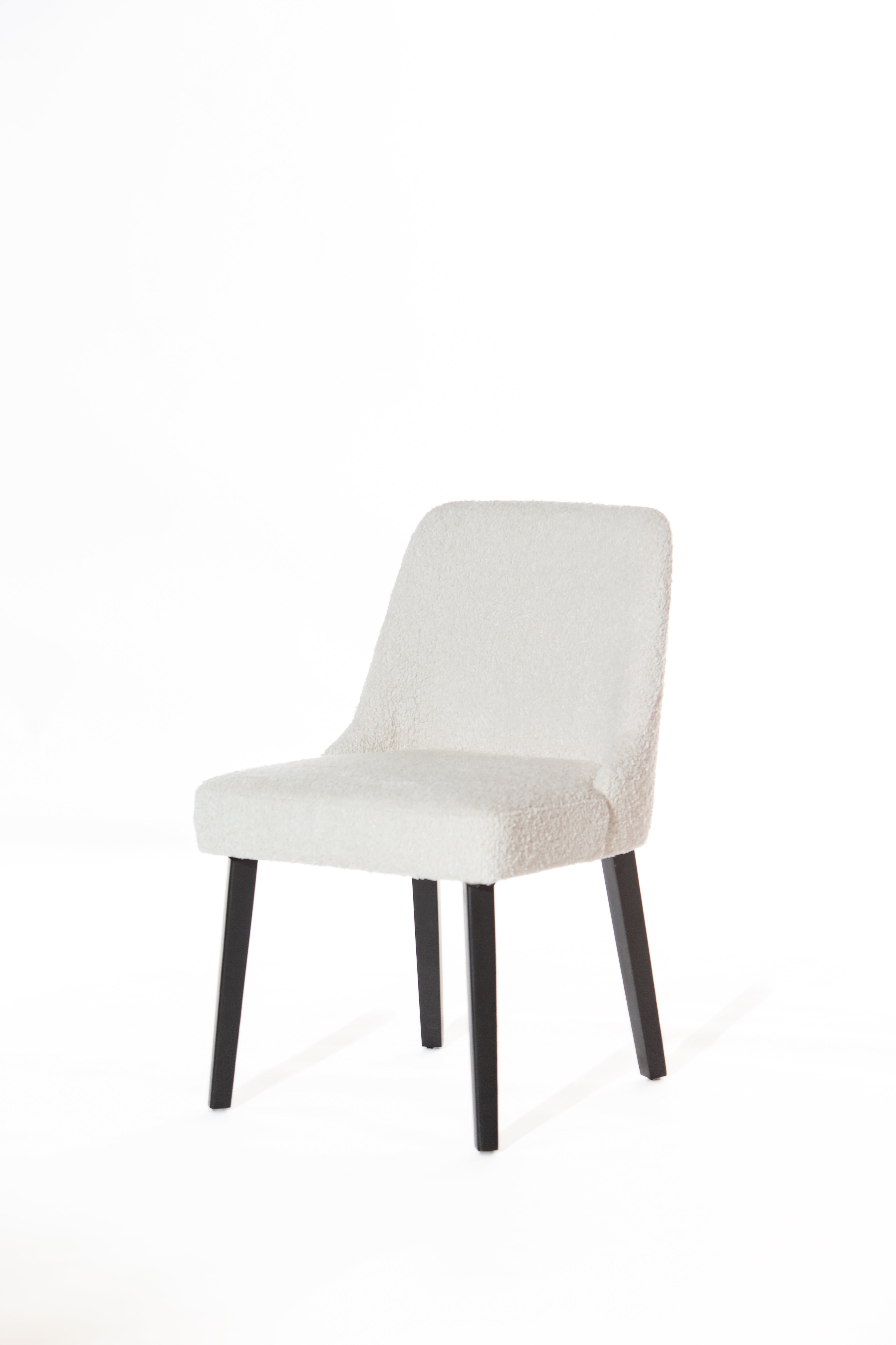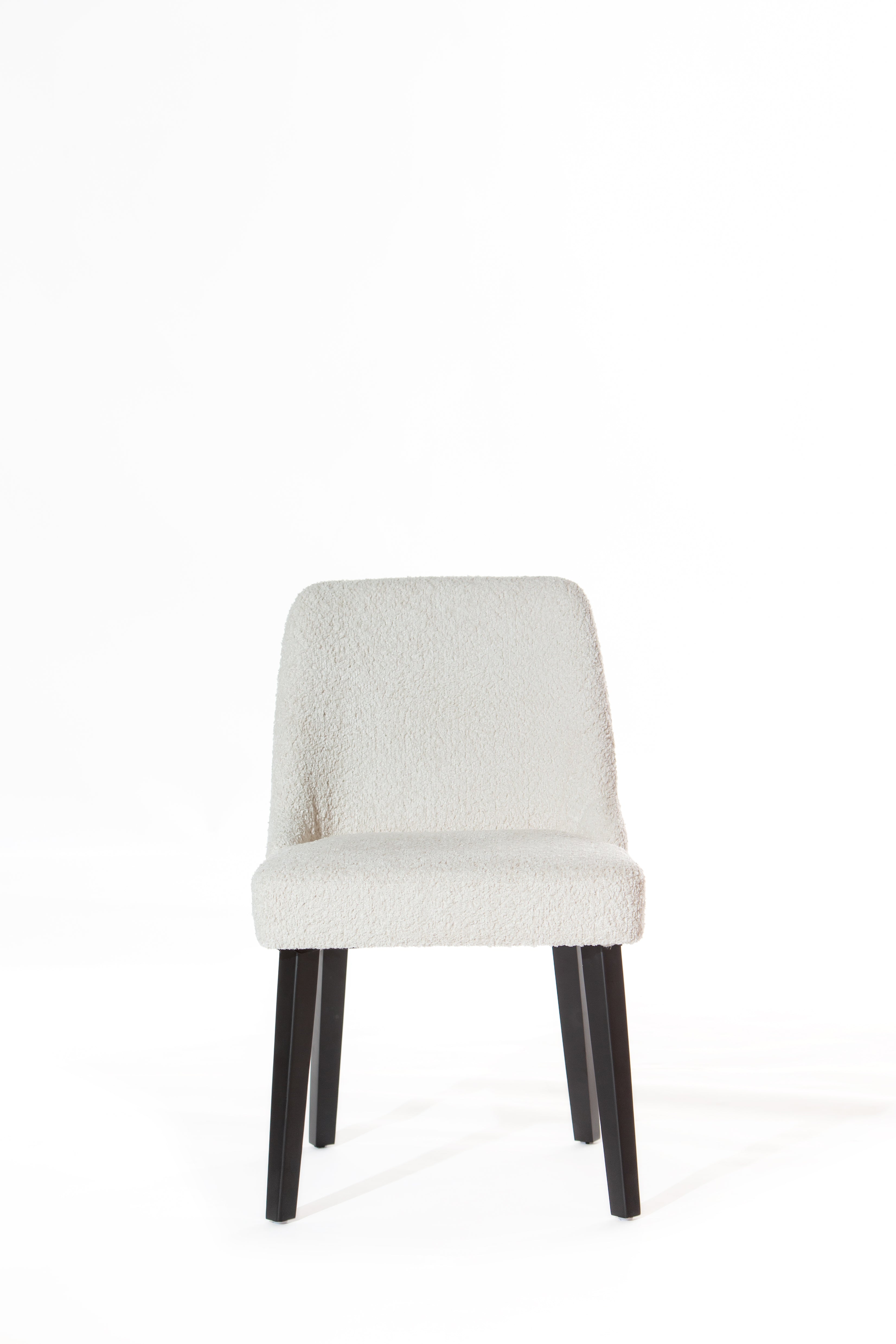 Sleek, modern, and effortlessly elegant, this dining chair brings refined minimalism to your table setting. Its sculpted backrest and clean silhouette offer both comfort and contemporary charm, making it a seamless addition to both casual breakfast nooks and formal dining rooms. The softly textured upholstery contrasts beautifully with the sturdy dark-toned legs, creating visual depth while maintaining a lightweight presence in the room. Ideal for those who appreciate subtle sophistication, it blends seamlessly into various interior styles, from Scandinavian simplicity to modern luxe.