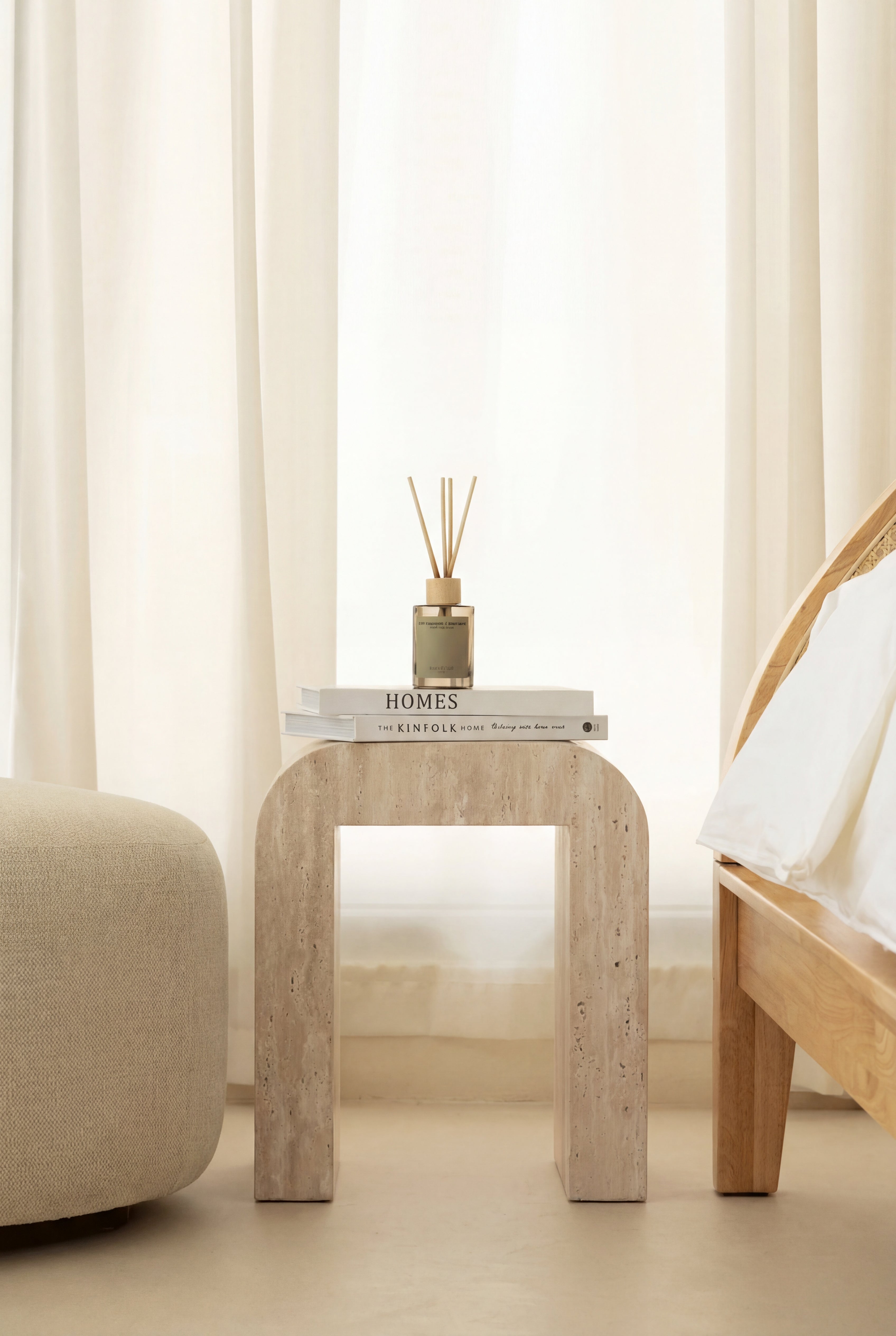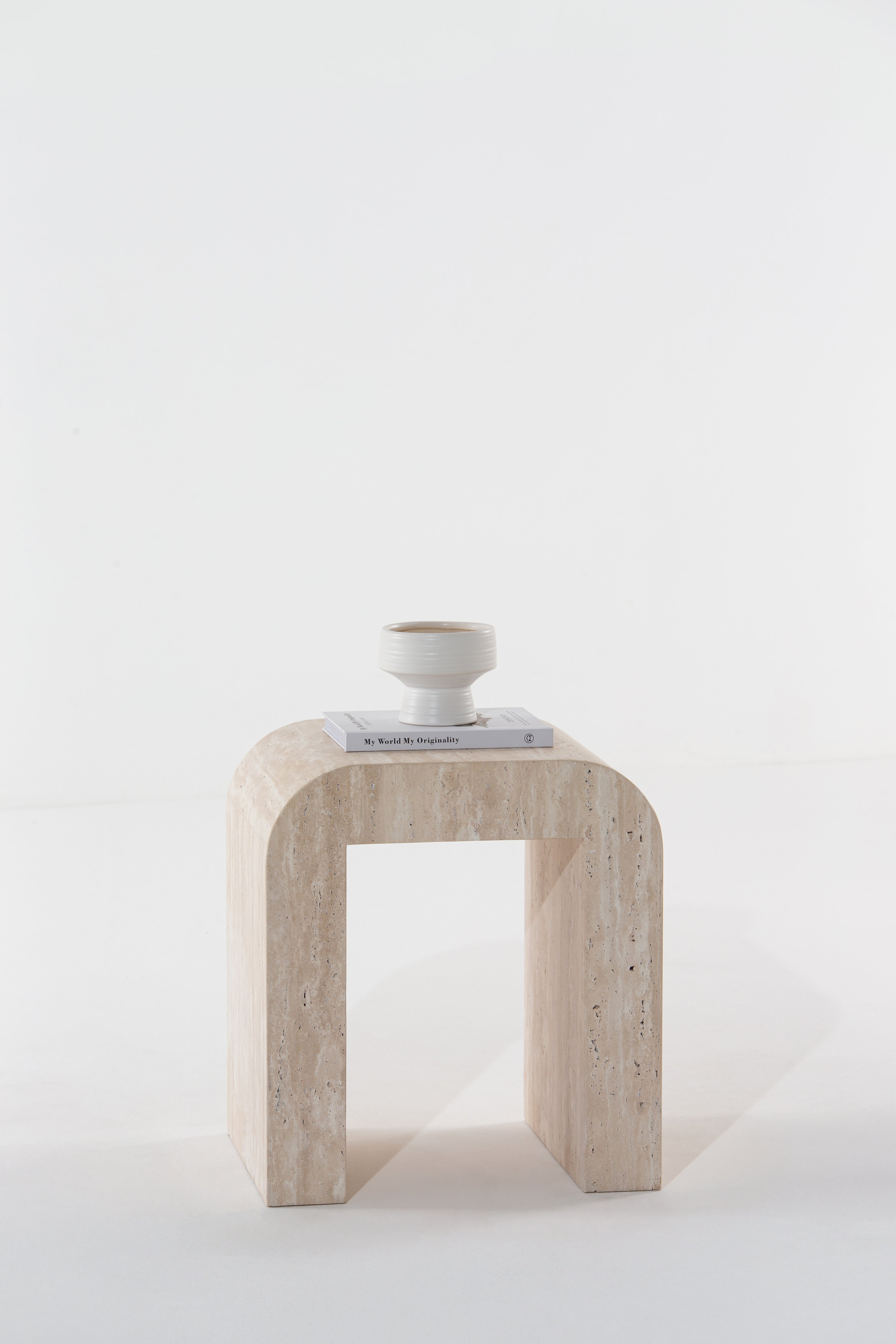 Gracefully sculpted from natural stone, the Beige Travertine Marble Side Table is a refined blend of organic texture and architectural form. Its signature arch design features softened edges and a clean rectangular profile, making it both a sculptural statement and a functional accent piece. Perfect as a side table, stool, or decorative pedestal, this versatile piece enhances any setting with its minimalist presence and natural material depth. The warm tones and unique veining of the travertine marble ensure that no two tables are alike—each one a distinct expression of timeless elegance.
