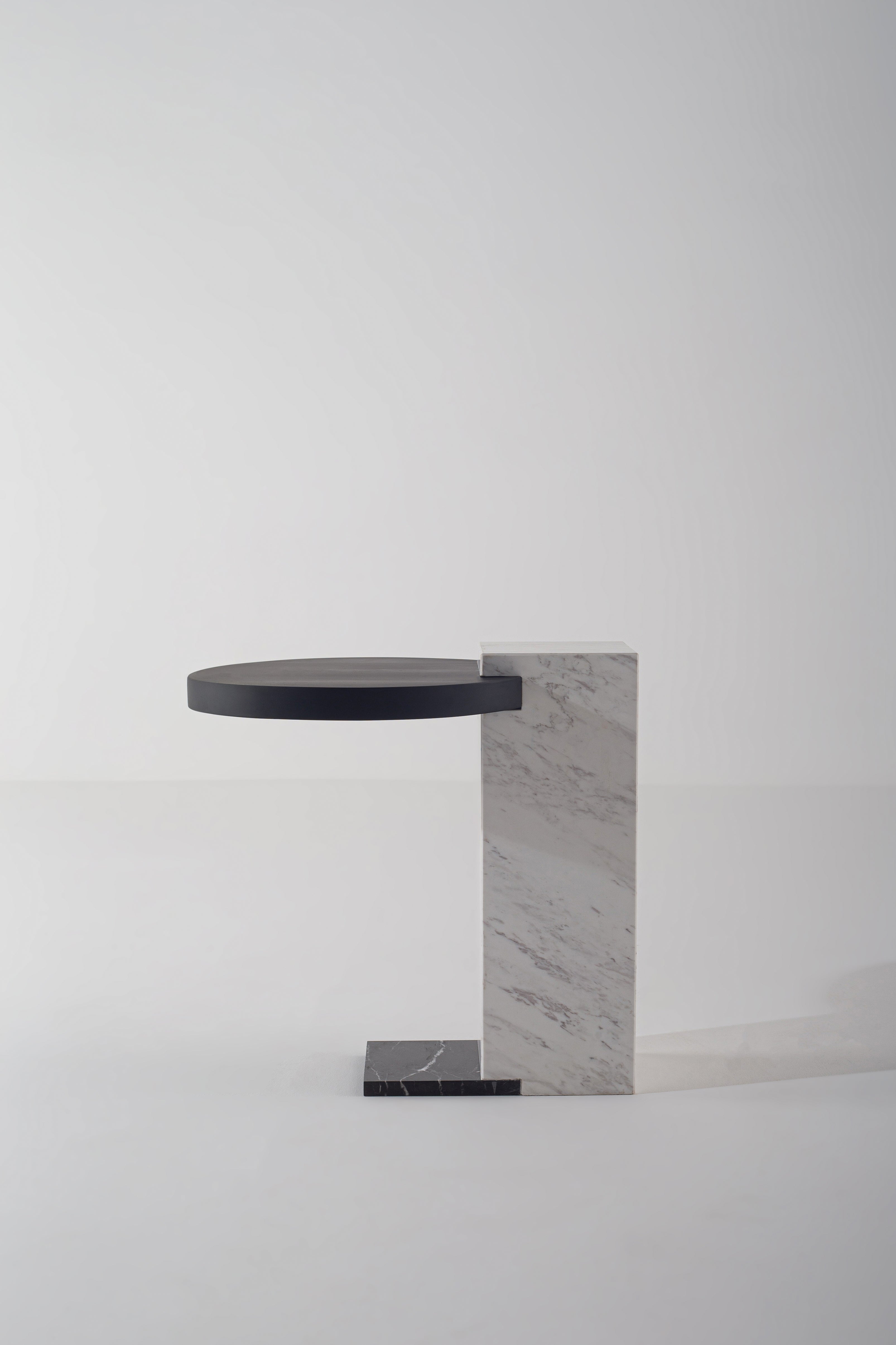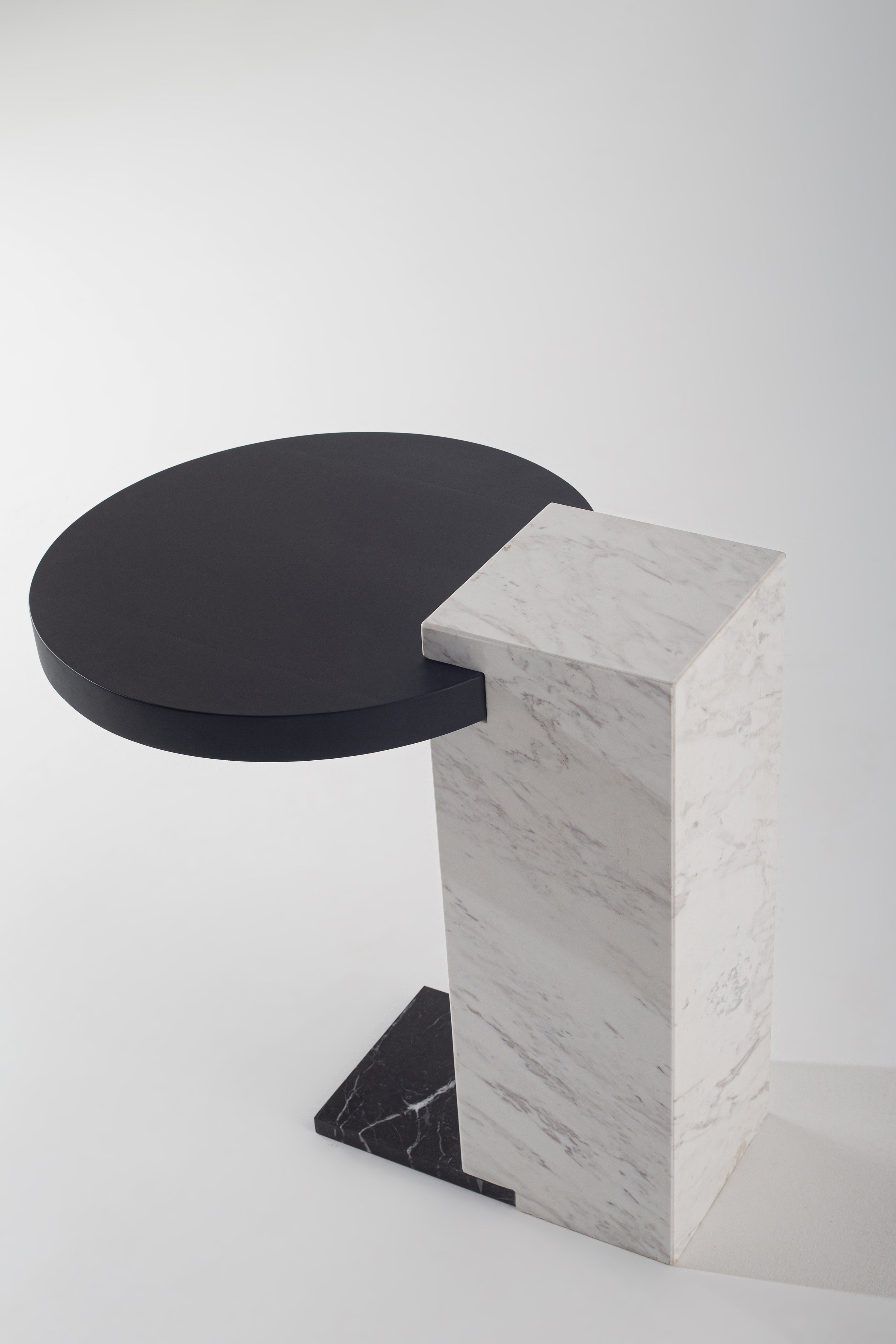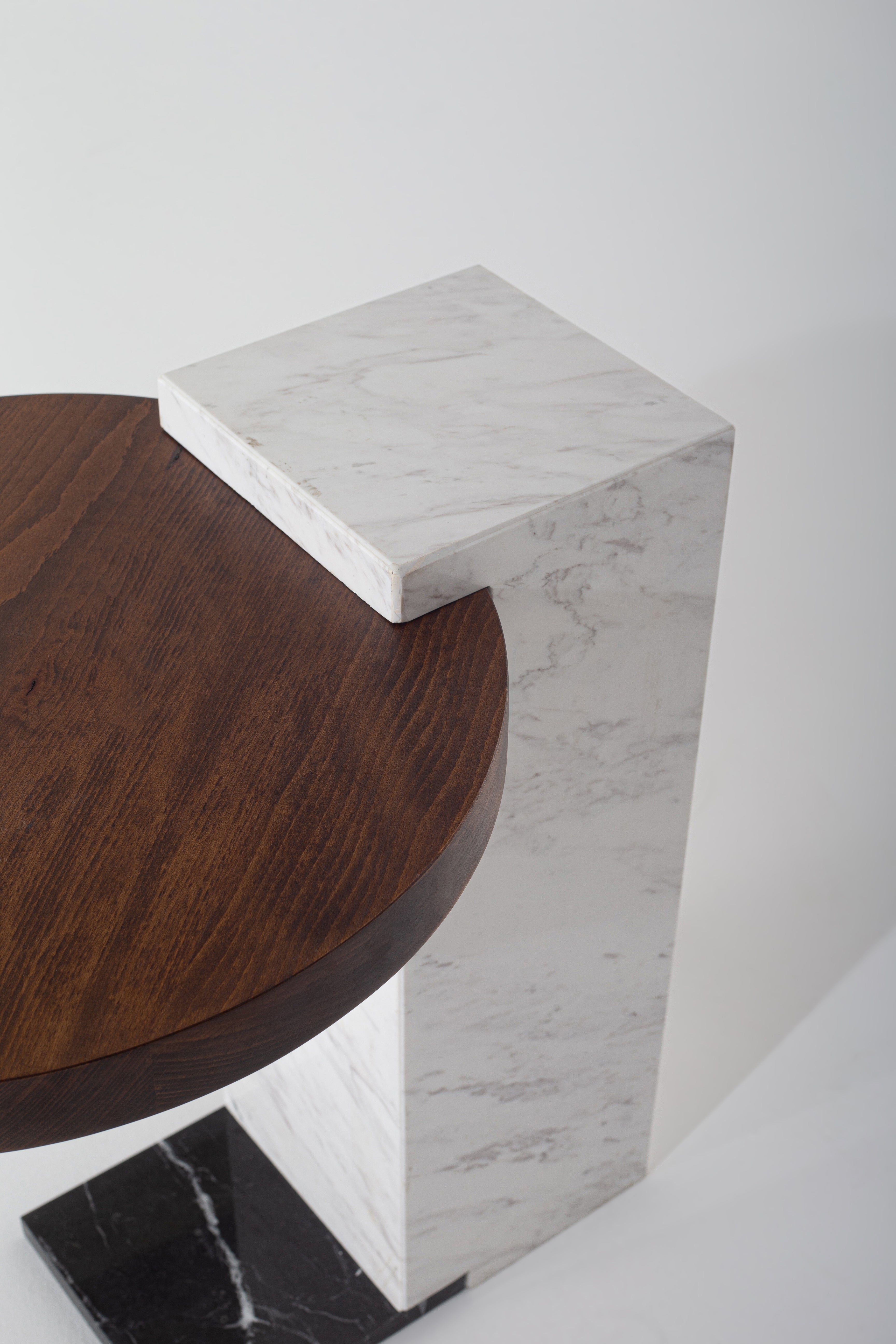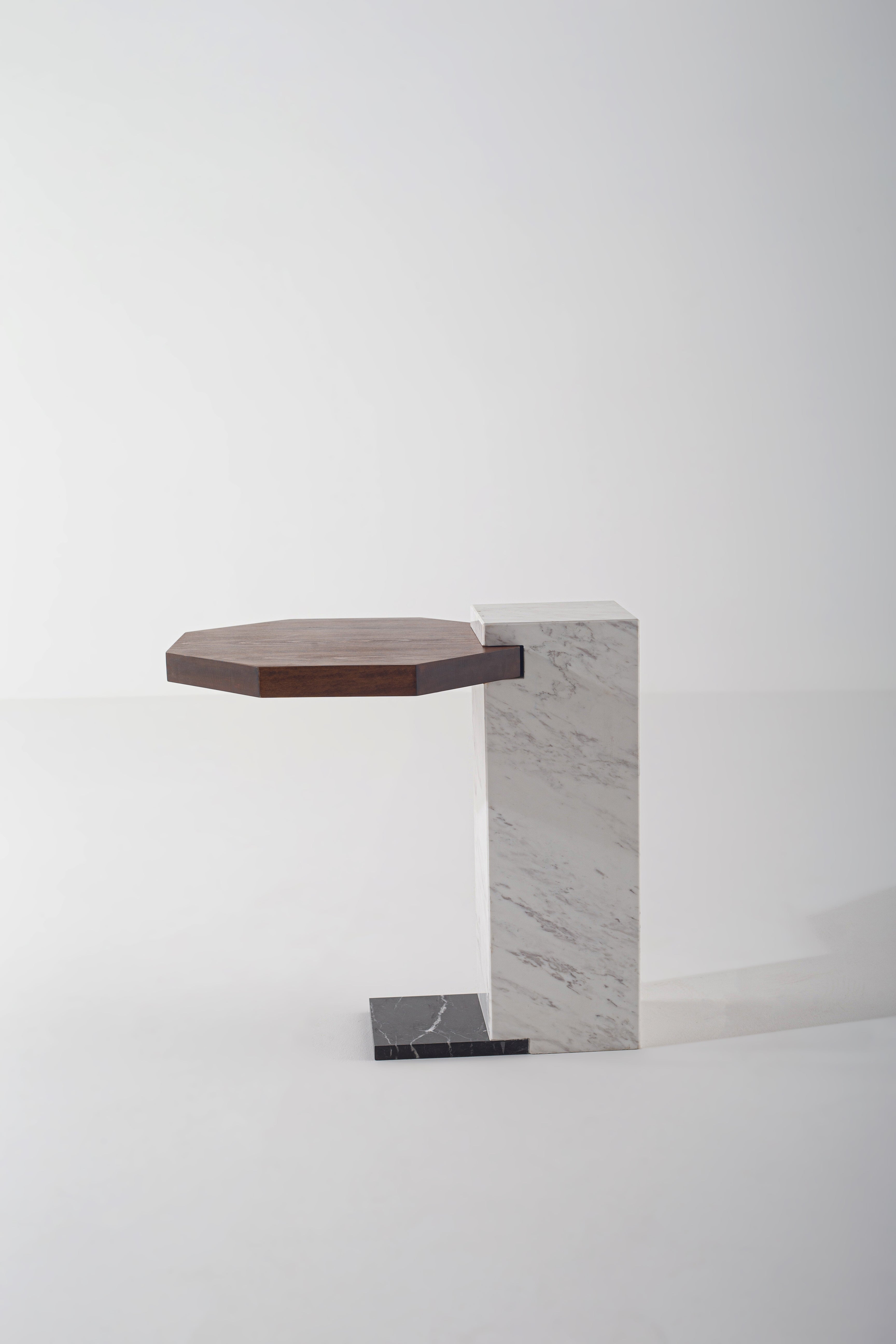 A sculptural masterpiece designed for modern interiors, this Marble Side Table blends elegance with architectural form. The solid marble base in crisp white with natural veining is anchored by a black marble platform, offering both stability and striking contrast. Its cantilevered design supports a floating tabletop, available in rich walnut wood or sleek black, allowing you to choose the perfect match for your space. Whether beside your sofa or as a statement accent, this side table exudes contemporary luxury with its geometric balance and refined materials.