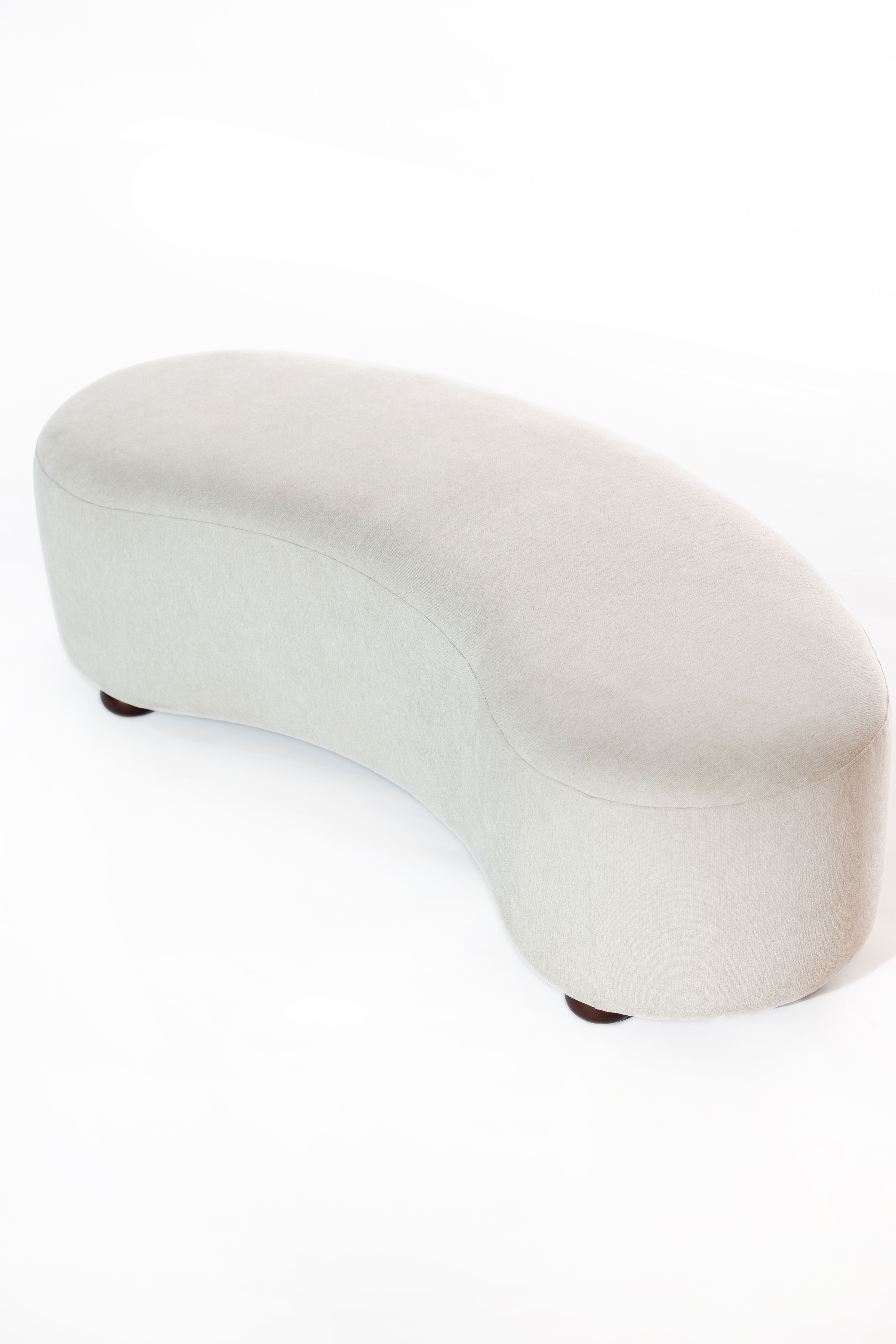 Sculpted in an elegant crescent form, this modern bench adds an artistic statement to any room. Its smooth, fluid silhouette invites relaxation while doubling as a chic accent piece in both residential and commercial spaces. Perfect for entryways, living rooms, or boutique lobbies, the organic curve softens the space and encourages conversation or quiet reflection. Designed to complement minimalist, contemporary, or even eclectic interiors, this versatile bench combines style and function with timeless appeal.