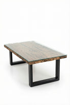 Meadow Railway Glass Top Wooden Coffee Table with U Shape Metal Base
