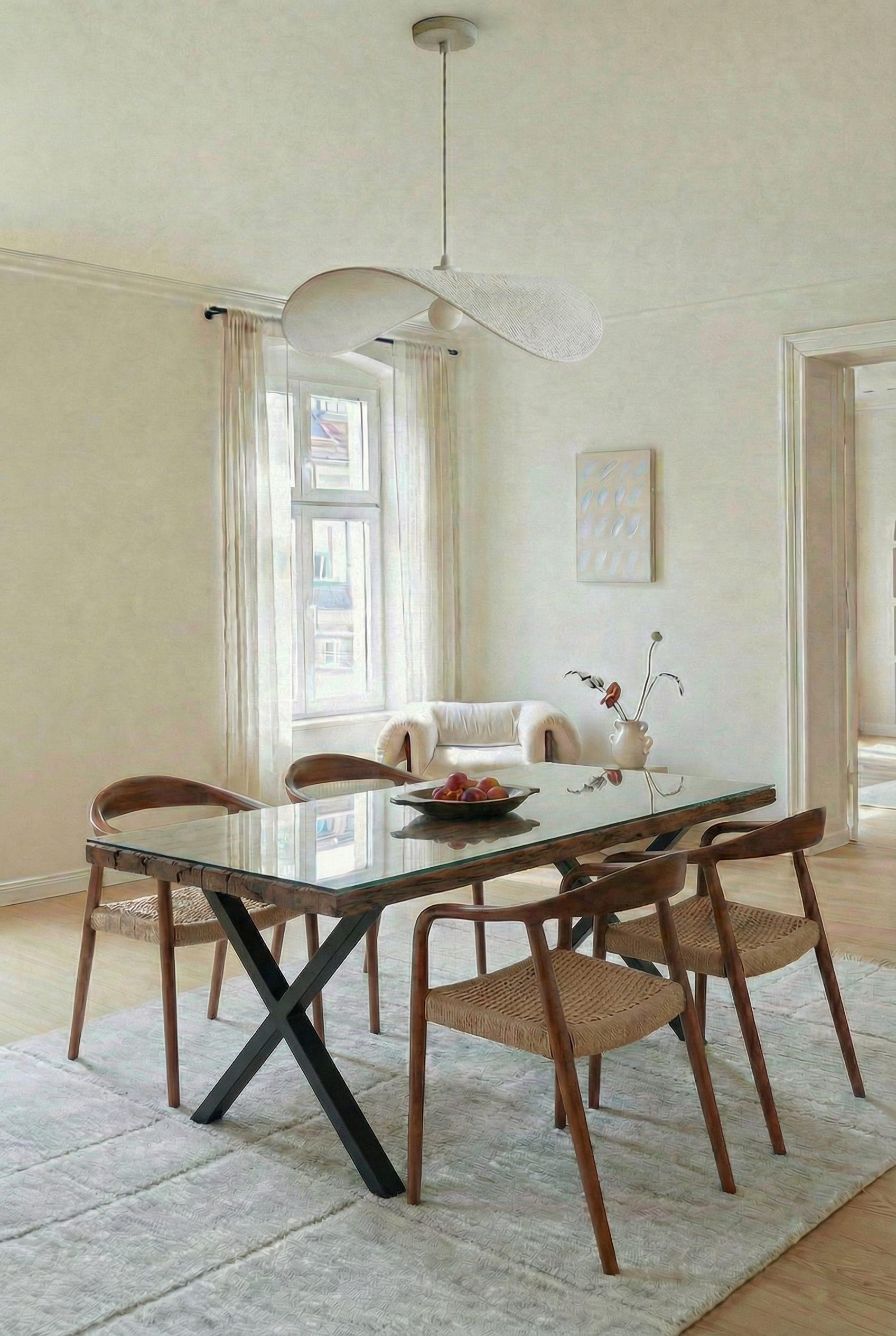 Designed with reclaimed railway wood showcasing deep natural textures and authentic character, this dining table stands on a striking X shaped metal base that adds sculptural impact to your interior. The intersecting steel form enhances stability and visual interest, allowing you to elevate your dining space with a refined industrial mood that feels bold, balanced, and effortlessly modern.