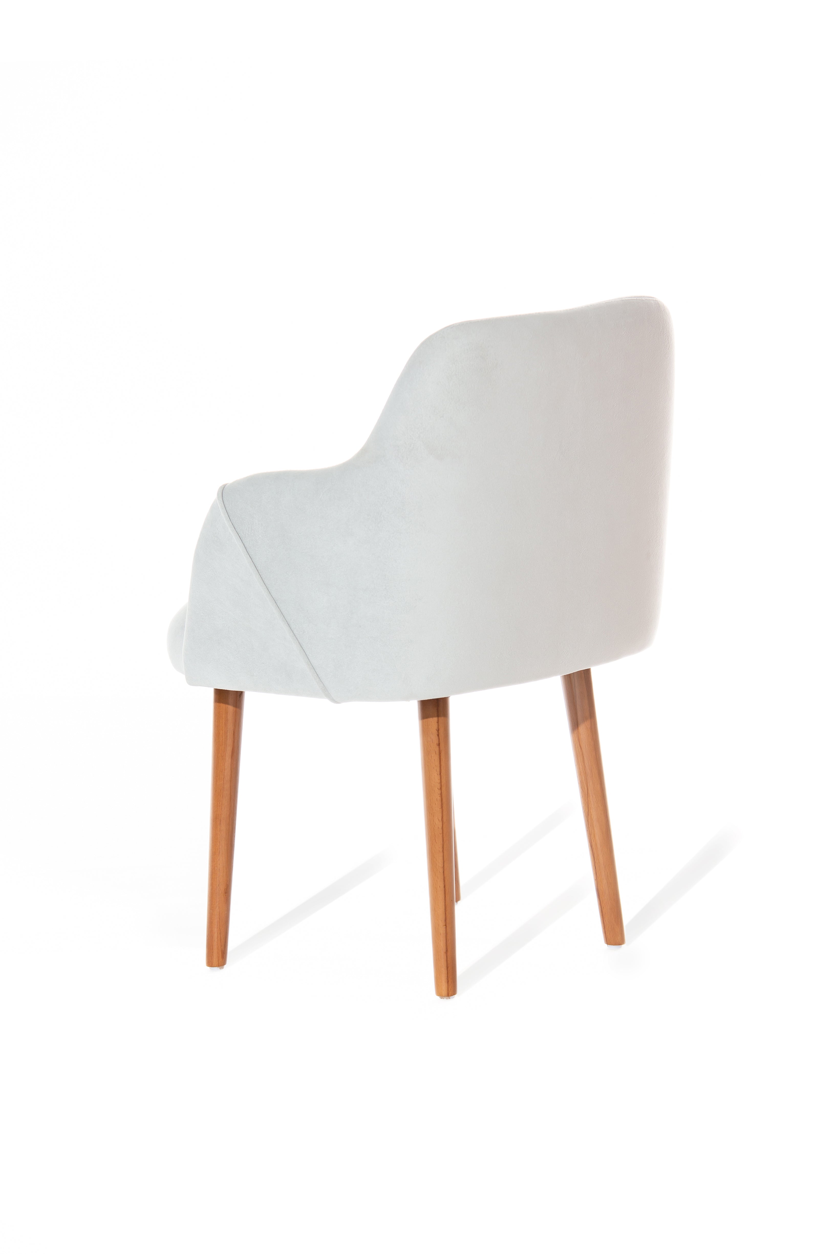 Settle into refined comfort with this softly sculpted dining chair, upholstered in a smooth light-grey suede-look fabric that brings elegance and warmth to your space. The curved backrest and integrated arm support cradle you effortlessly, while the natural wood-toned legs add a warm, grounded touch. Designed for both style and support, this piece blends contemporary comfort with timeless charm—perfect for long dinners, relaxed conversations, and everyday dining with a touch of luxury.