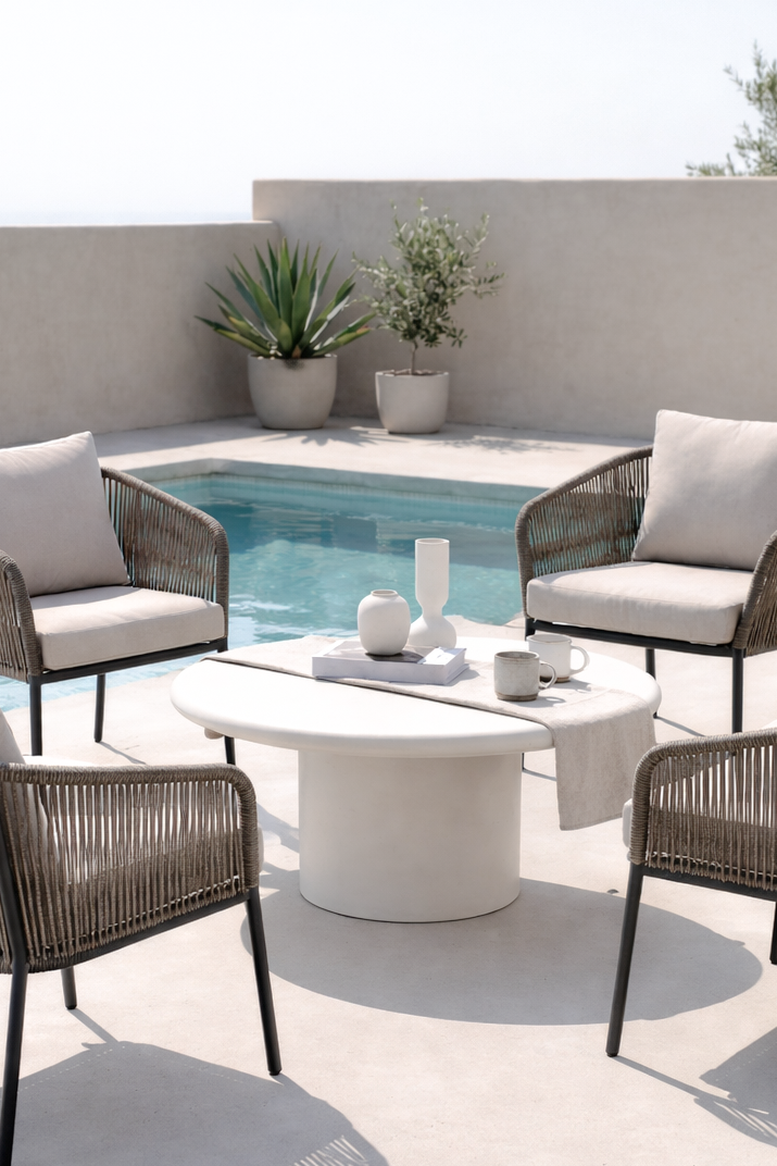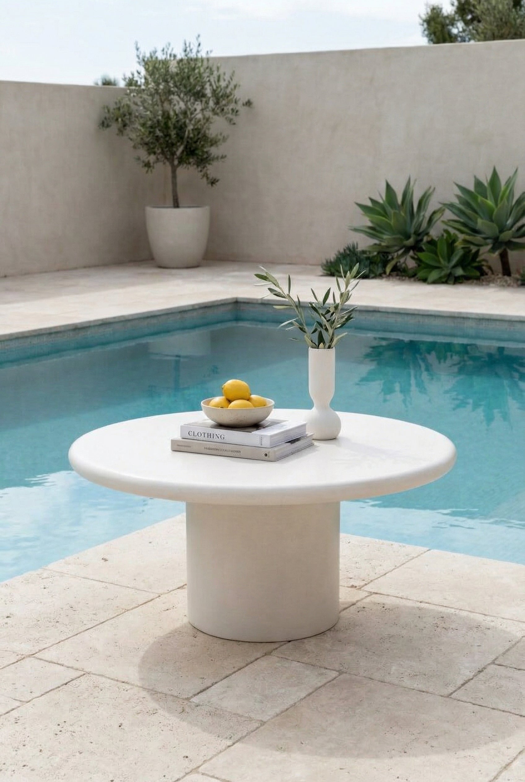 Transform your outdoor living space with a sculptural coffee table finished in off white microconcrete, bringing a sleek and contemporary presence to open-air settings. The minimalist design features a smooth round surface paired with a solid cylindrical base, creating a balanced and architectural form that feels refined yet relaxed. Its matte mineral texture adds depth while remaining durable and easy to maintain outdoors, making it ideal for patios, terraces, and outdoor lounges. Styled as a functional centerpiece or layered with décor, it enhances your exterior space with understated elegance and modern simplicity.