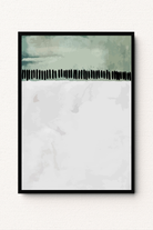 Invite calm and clarity into your home with a minimalist abstract print that lets you shape serene, modern interiors. Soft sage-gray watercolor washes flow into a crisp white lower half, while bold vertical black strokes define the horizon with contrast and balance. The matte finish enhances texture, and the muted color palette makes this piece versatile for Scandinavian, modern, or boho-inspired décor. Perfect for your living room, bedroom, or office, this abstract wall art evokes the stillness of misty mornings and timeless elegance.