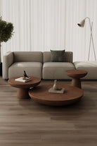 Transform your living space into a gallery of modern minimalism with this striking round coffee table set in rich mocha brown. Designed with sculptural silhouettes and a bold micro-concrete finish, each table—ranging from low and wide to compact and elevated—adds warmth, depth, and contrast to your interior. The refined surface brings a tactile, earthy elegance that complements the set’s artistic form. As the centerpiece of your living room, you’ll love how these statement pieces blend effortlessly with contemporary, industrial, or Japandi aesthetics, inviting conversation and admiration with every glance.