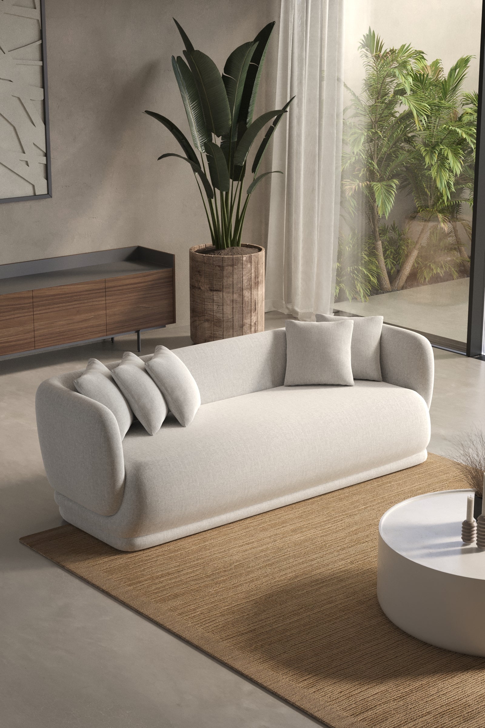 Elevate your living space with the Off-White Bouclé Sofa, A sculptural masterpiece where comfort meets contemporary design. Imagine yourself unwinding into the bouclé fabric, its textured weave offering a tactile embrace as you sink into the generously padded, curved silhouette. Whether in a cozy apartment or an airy open-plan lounge, this modern off-white sofa transforms you into the curator of a refined, serene sanctuary.