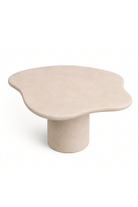 A light beige microconcrete surface brings soft warmth and sculptural elegance to your dining space, creating a calm sunlit mood that feels refined and inviting. The irregular organic form adds an artful presence while remaining effortless, complemented by a solid pedestal base that grounds the interior with modern balance. A smooth matte texture and gentle neutral tone allow you to style the space with warm woods, crisp linens, and tonal ceramics for a layered interior look. Designed to enhance everyday dining and intimate hosting, it elevates each gathering with understated luxury and timeless indoor appeal.