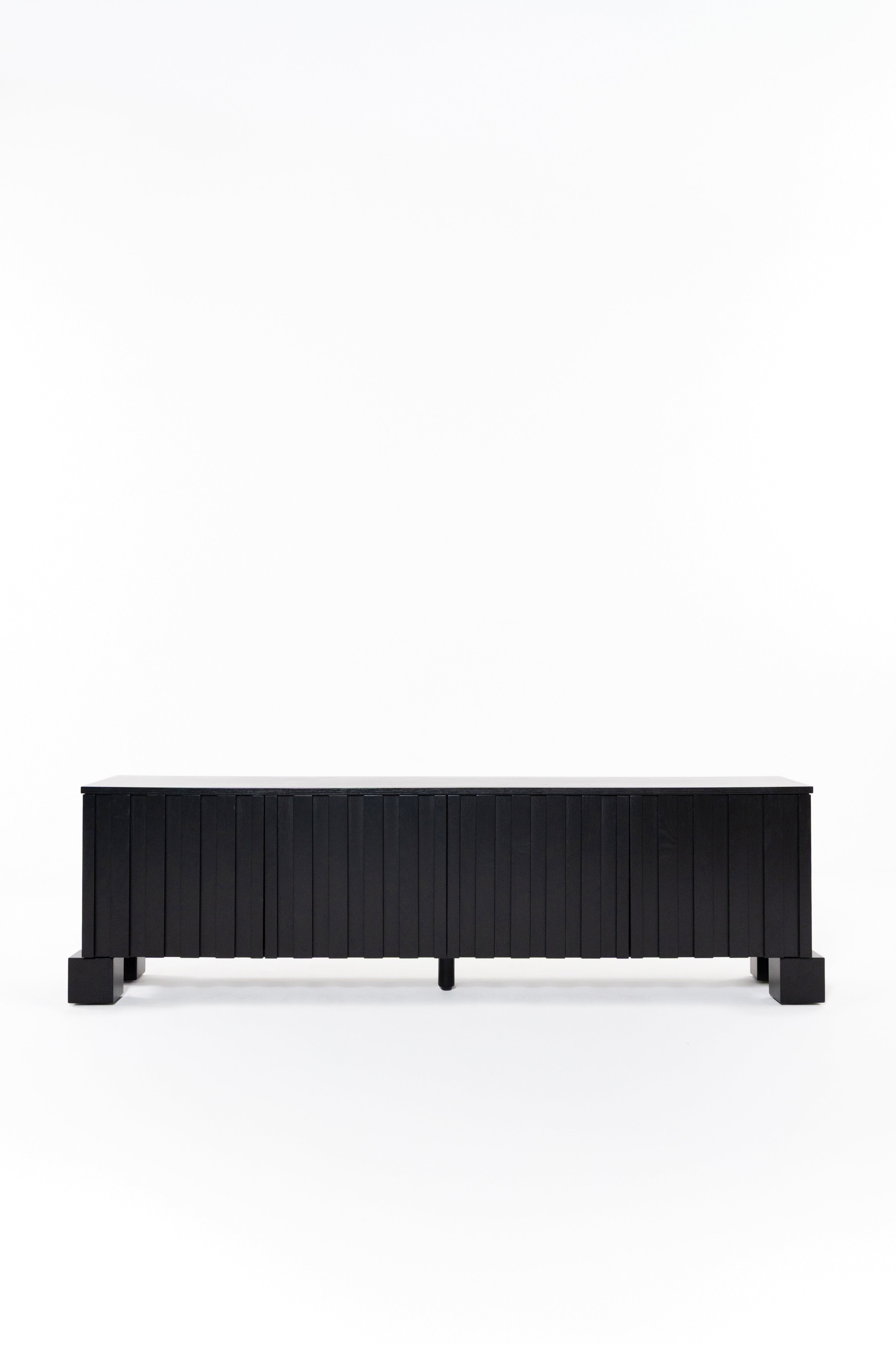 Transform your living space with the warm elegance of this dark wooden tv unit, crafted from rich oakwood. The sleek, slatted design creates a refined visual texture, while its deep brown finish enhances the natural grain of the wood. Spacious hidden storage behind soft-close doors keeps your essentials neatly tucked away, making it a functional yet stylish addition to any modern or classic interior. Resting on sturdy block legs, this piece brings timeless charm and practicality to your home, effortlessly blending with contemporary, mid-century, and rustic décor styles.