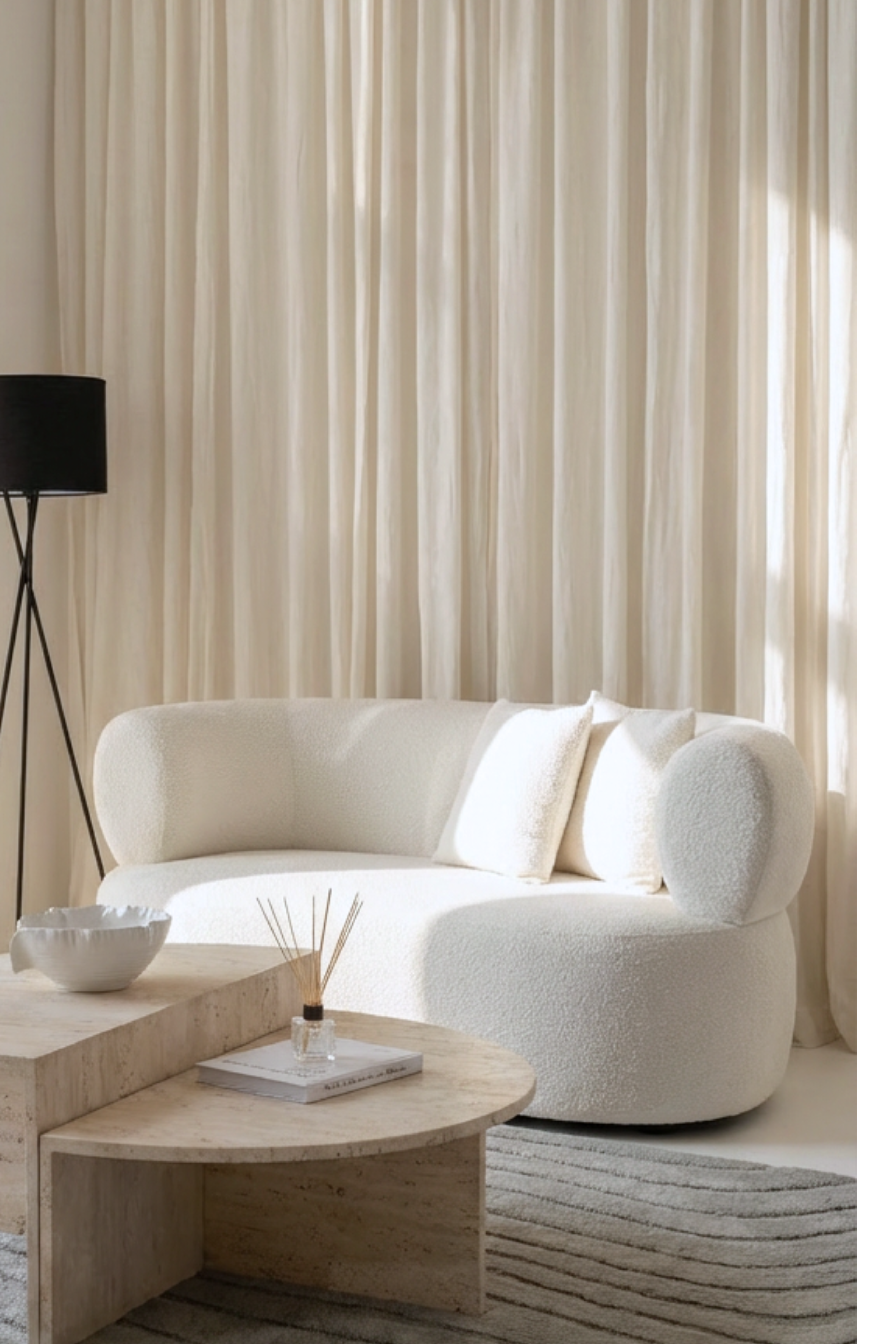 Designed with a sculptural silhouette, this chair brings a refined yet inviting presence to any space. Its curved backrest and plush cushioning offer both style and support, creating a cozy retreat for relaxation. Upholstered in a soft, textured fabric, it seamlessly blends contemporary elegance with everyday comfort. Perfect for living rooms, reading nooks, or statement seating, this piece effortlessly enhances any interior.