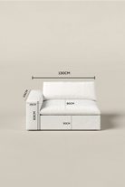 Crafted as the finishing touch that completes and enhances your sofa configuration. Defined by its precise lines, wide armrest, and low-profile proportions, this piece adds balance and structure while maintaining a clean, modern aesthetic. The off-white finish brings light and sophistication, allowing it to blend seamlessly with both minimalist and classic interiors. As part of a versatile modular system inspired by European design, the end section provides flexibility—whether styled as a standalone accent seat or integrated to expand your sofa into a striking statement piece.