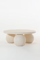 Bold yet playful in form, this off-white concrete coffee table blends artistic character with grounded design. Featuring a smooth round top supported by four sculptural, bulb-like legs, it introduces a unique visual rhythm while maintaining a soft and minimalist presence. The solid concrete construction adds durability, while the rounded geometry and matte finish make it a perfect match for interiors inspired by organic modernism, sculptural minimalism, or contemporary luxe. Ideal for anchoring a lounge or open-plan space, this piece offers functionality with an art-forward silhouette that feels both modern and timeless.