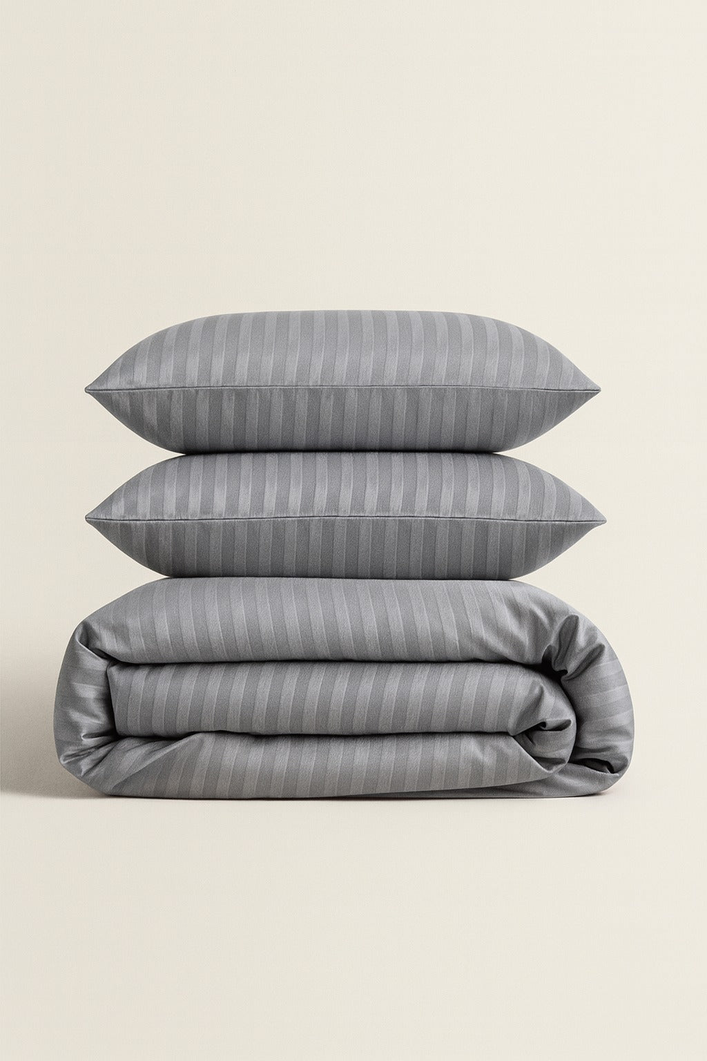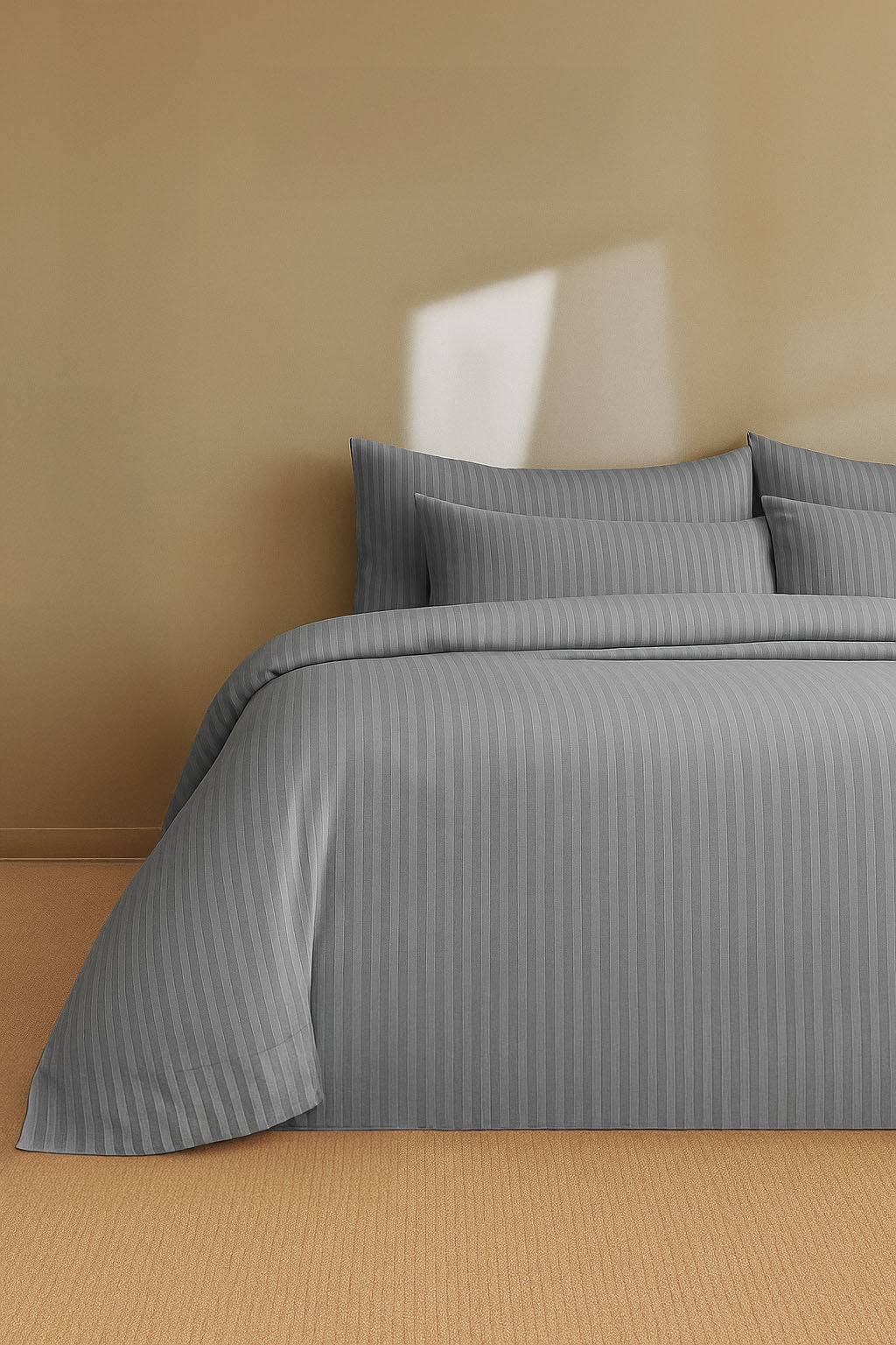 Premium Gray Striped Bed Sheet, Duvet Cover & Pillowcase Set (6 Pieces)