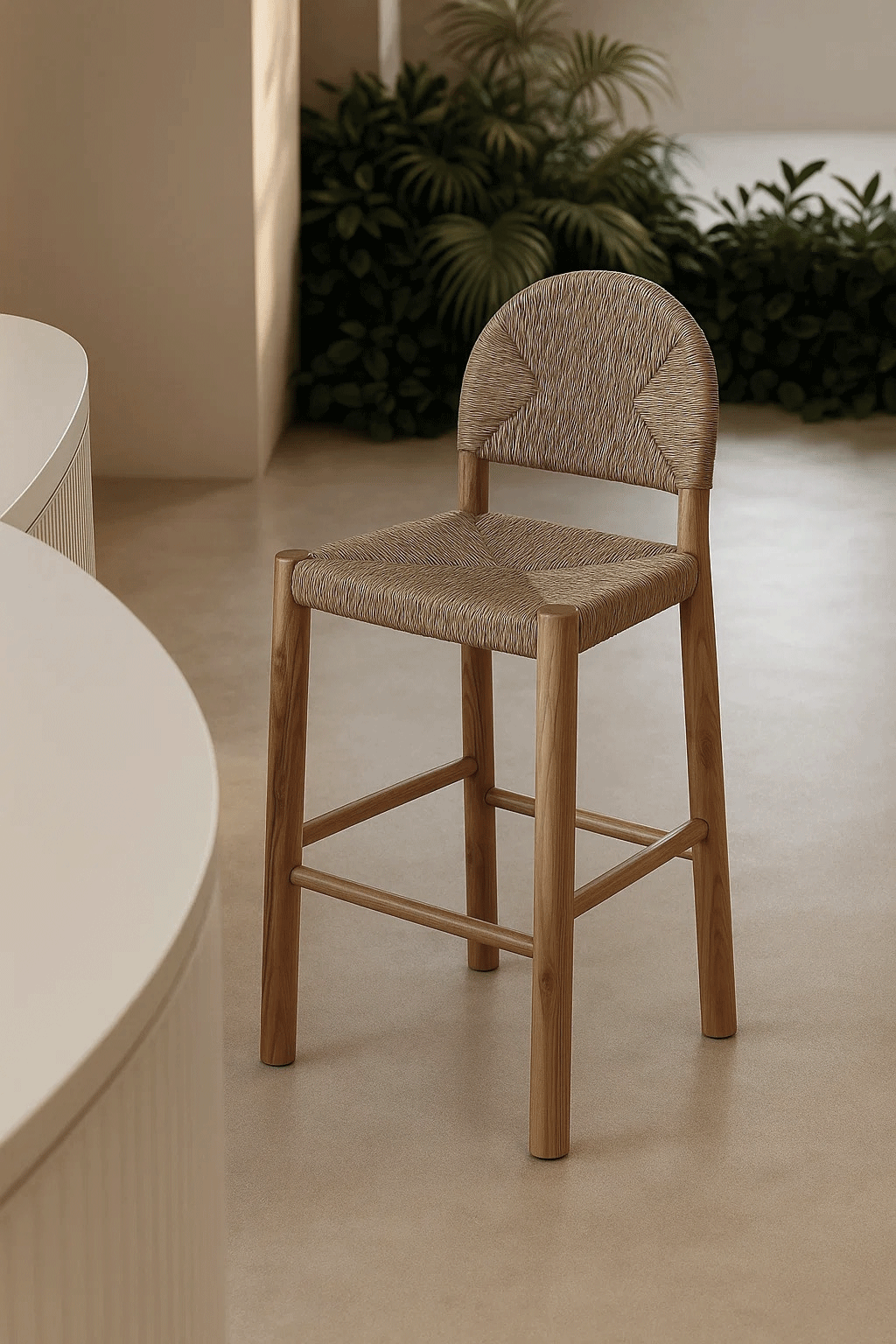 Beautifully crafted with a natural wood frame and a handwoven seat, this stool brings organic warmth and artisanal texture to any setting. Its rounded legs and clean silhouette offer a balanced blend of simplicity and craftsmanship, making it a versatile piece for kitchens, dining areas, vanities, or cozy corners. The woven seat adds comfort and visual interest, while the sturdy wooden construction ensures long-lasting support. With its relaxed Scandinavian-inspired aesthetic, this stool enhances both casual and contemporary interiors with timeless charm and natural elegance.