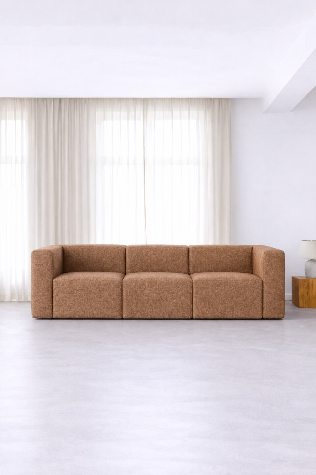 Create a warm, inviting living space with this brown modular sofa designed with a clean, sculptural silhouette and a relaxed low profile. The soft textured upholstery adds depth and a cozy feel, while the generous three seater design offers comfortable lounging for everyday moments and effortless hosting. Its rich caramel tone pairs beautifully with neutrals, wood accents, and modern décor, making it an easy statement piece that elevates your home with timeless style.