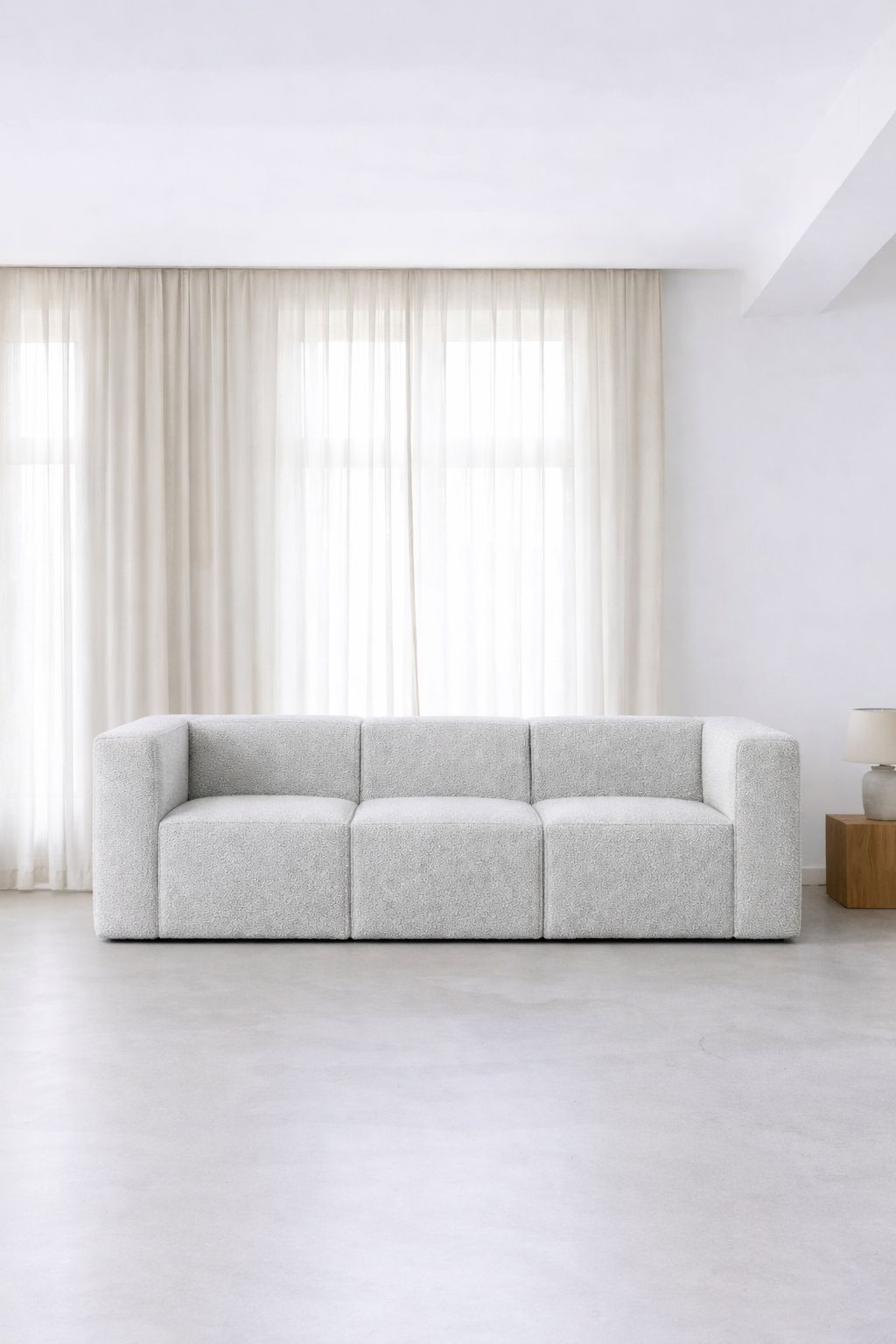 Create a calm, modern living space with this light grey modular sofa designed for a clean, sculptural look and effortless comfort. The low profile silhouette feels refined and grounded, while the soft textured upholstery adds depth and a cozy, elevated finish. Perfect for everyday lounging and stylish hosting, it blends beautifully with neutral palettes, natural wood accents, and contemporary interiors for a timeless, light filled atmosphere.